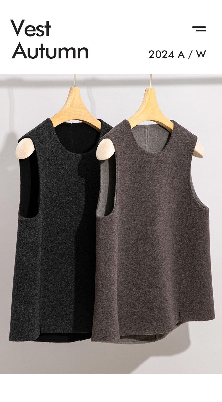 Chaleco de lana pura para mujer, cuello redondo, holgado, de alta gama, otoño 2024, nueva ropa para mujer