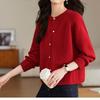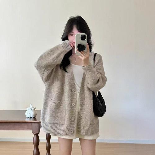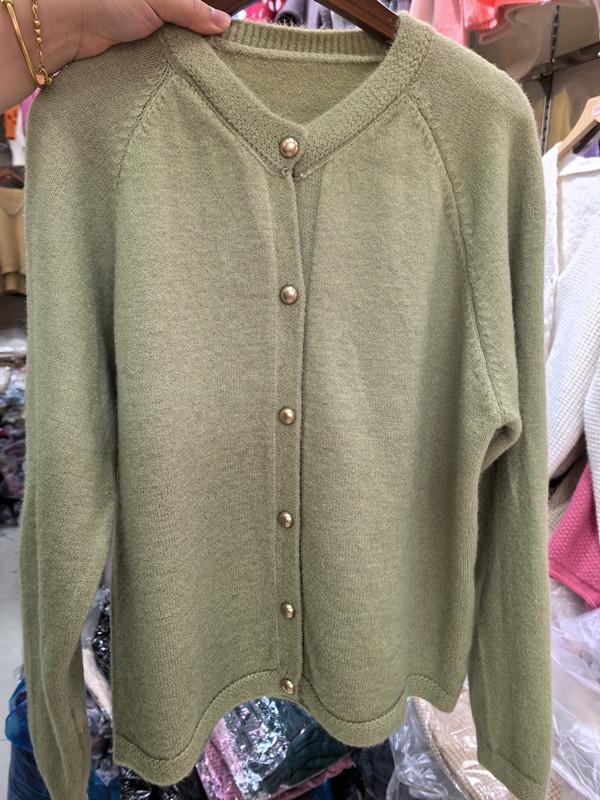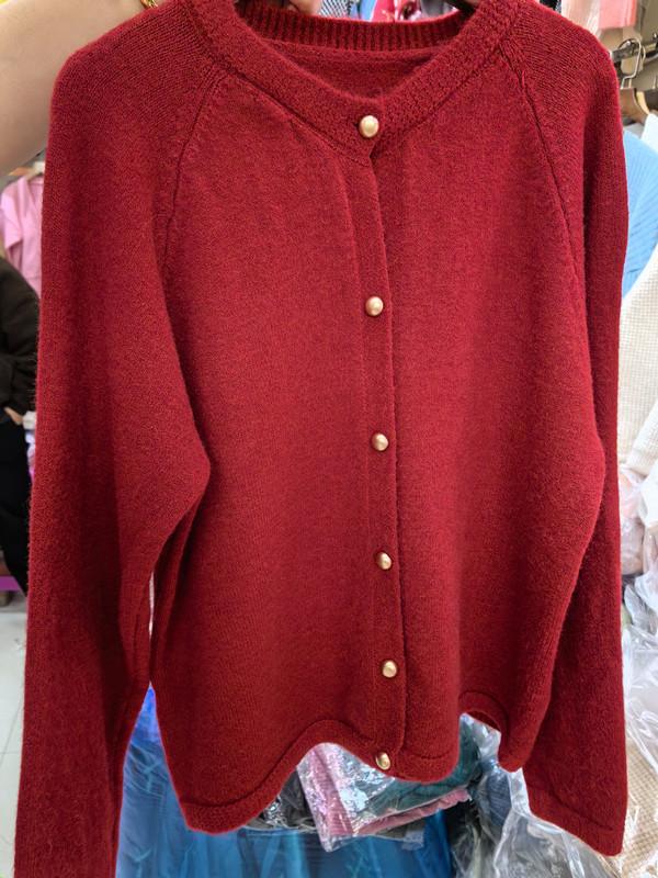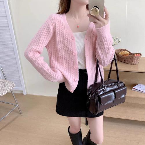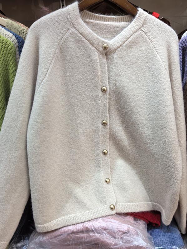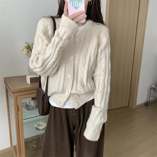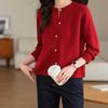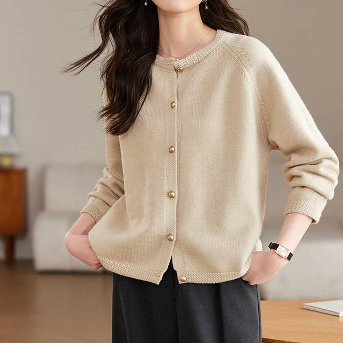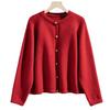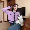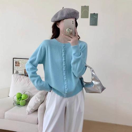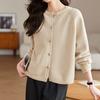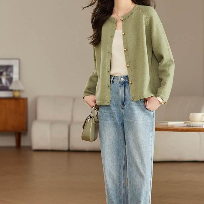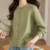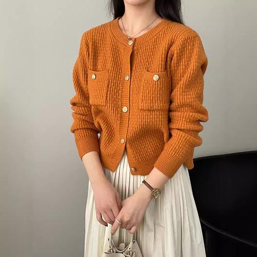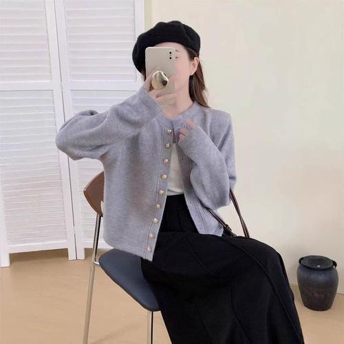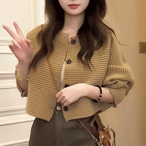 2025 Nuevo Cárdigan Tejido de Cuello Redondo Color Sólido Más Fácil de Combinar Moda Femenina Casual Temperamento Corto Estilo Pequeño Fragancia Suéter Top