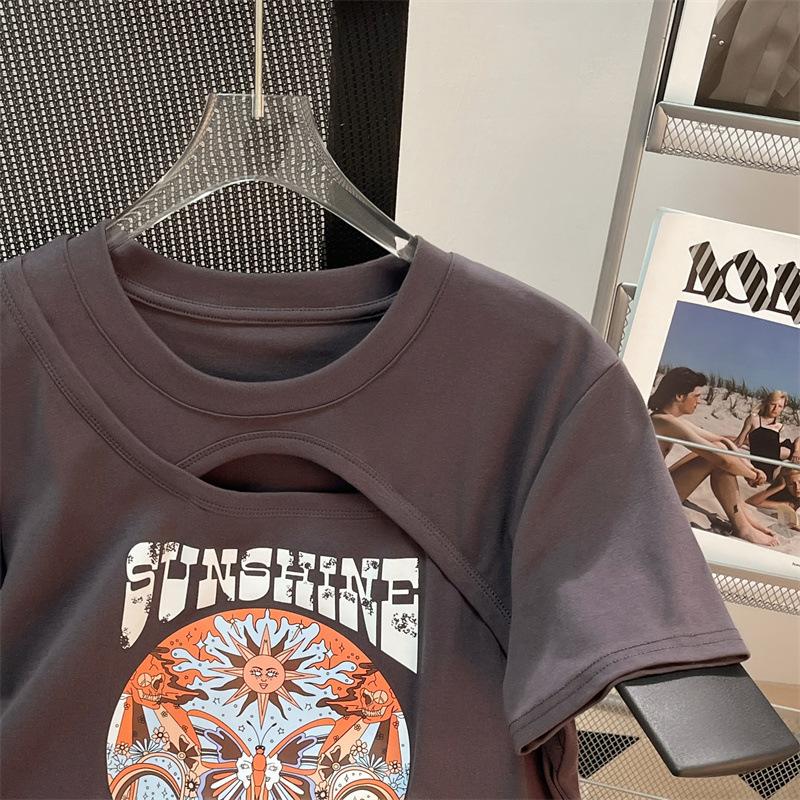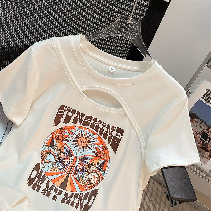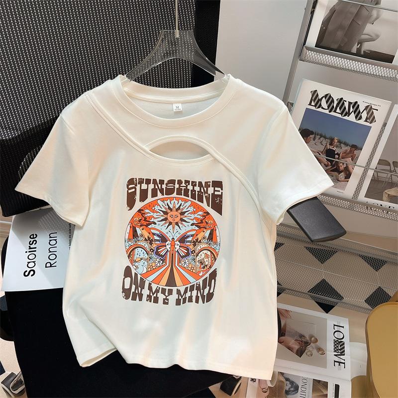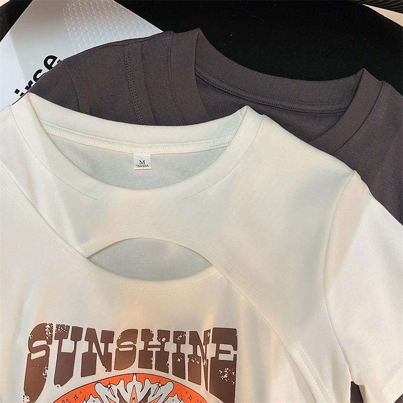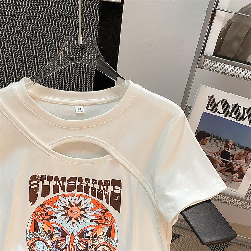 Algodón Calado Sexy Hombro Camiseta Manga Corta 2024 Nuevo Verano Sentido del Diseño Nicho Look Delgado Chic Top Ins