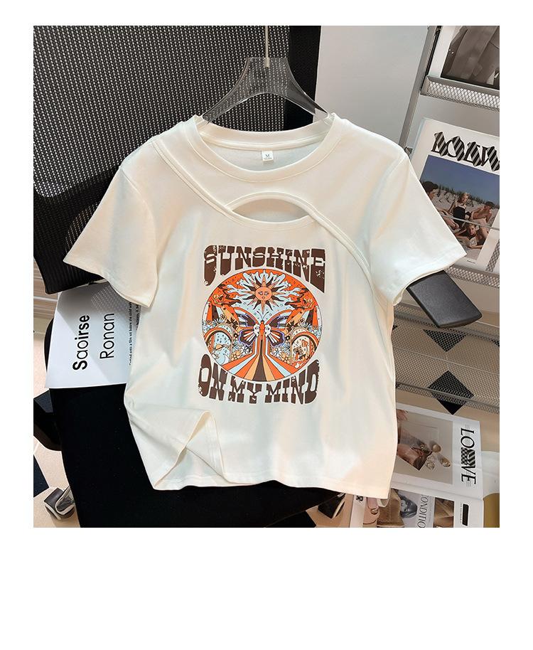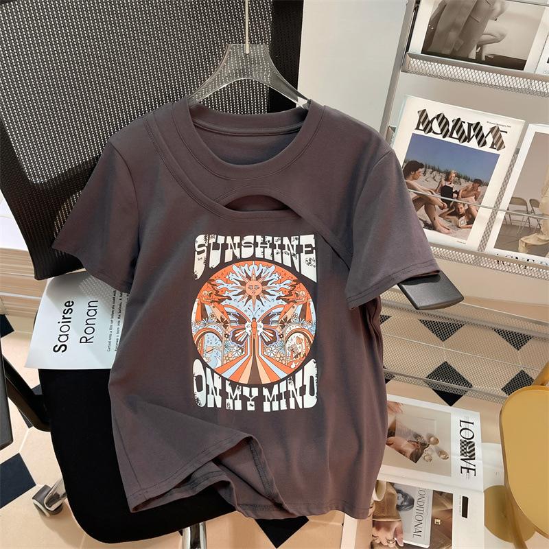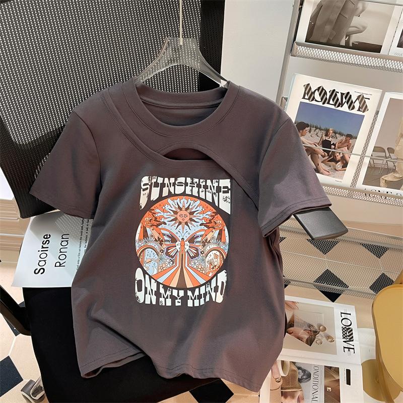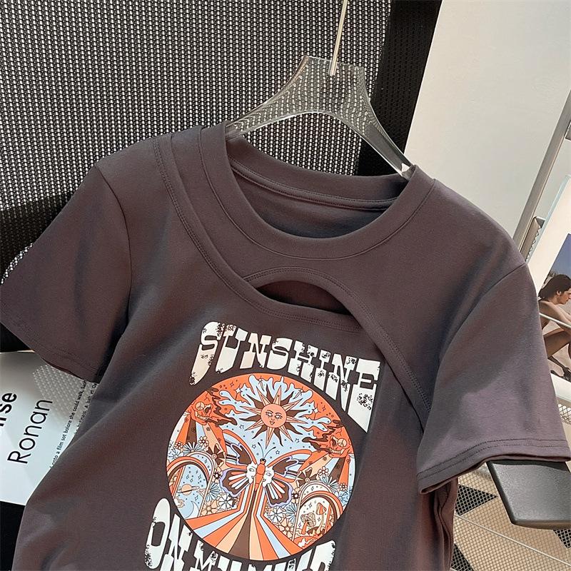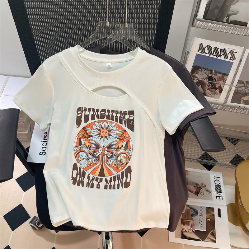 Algodón Calado Sexy Hombro Camiseta Manga Corta 2024 Nuevo Verano Sentido del Diseño Nicho Look Delgado Chic Top Ins