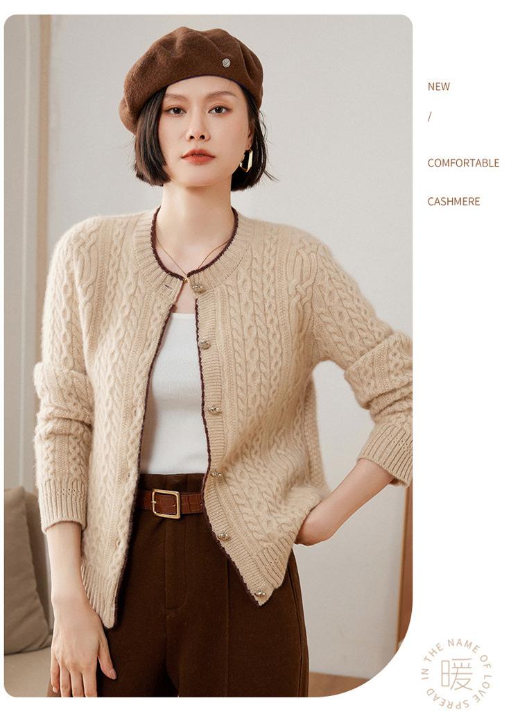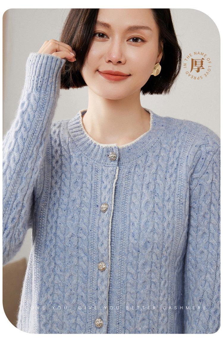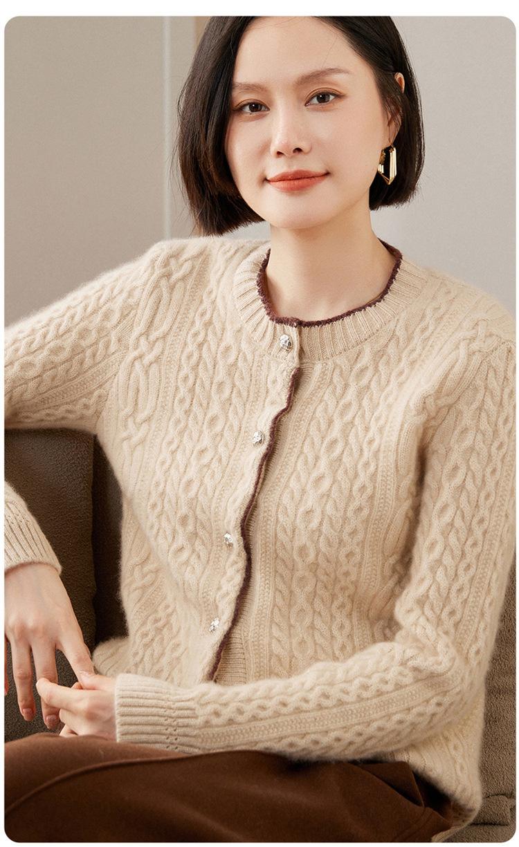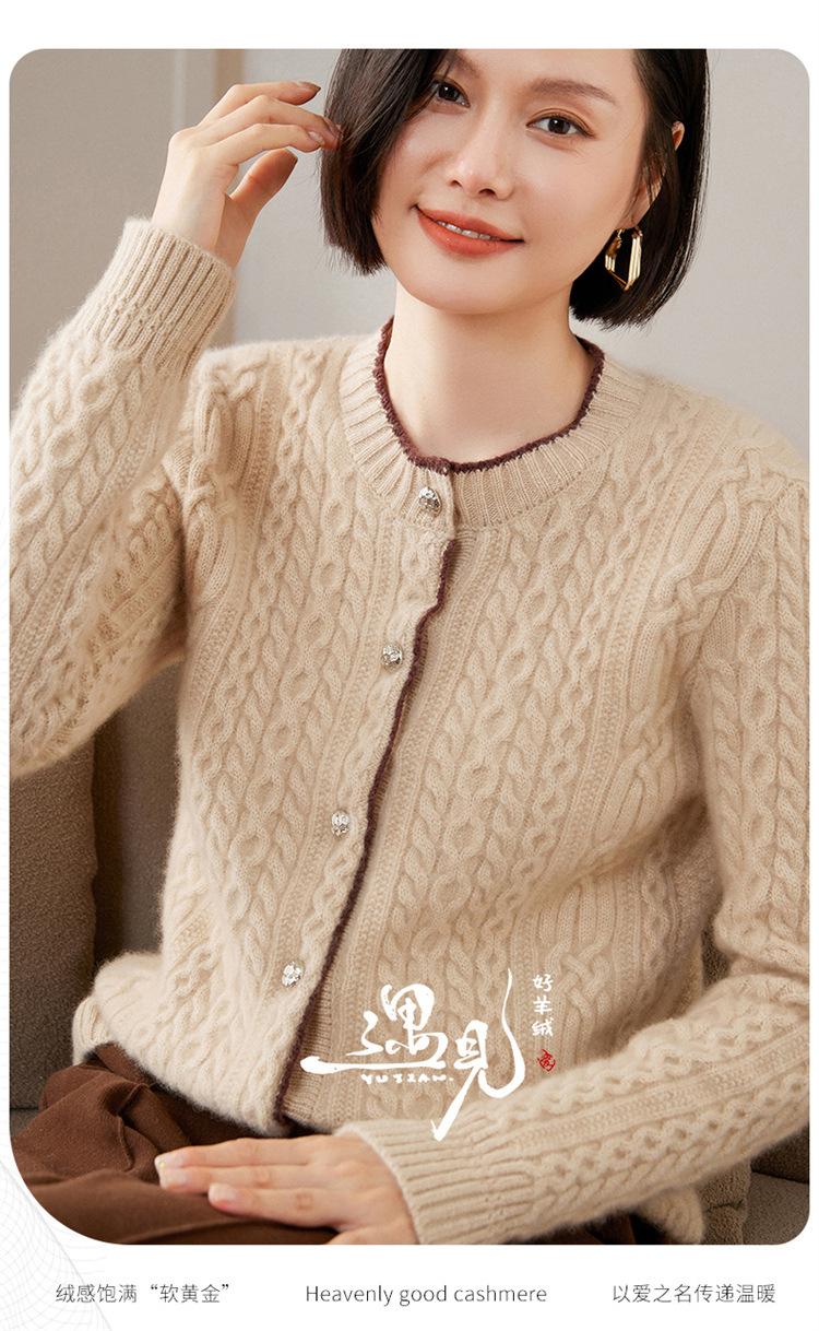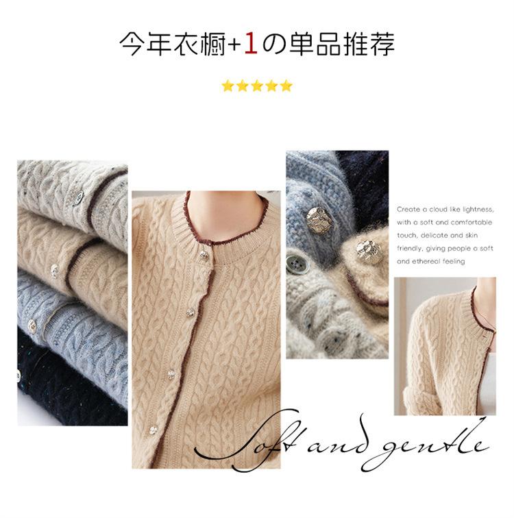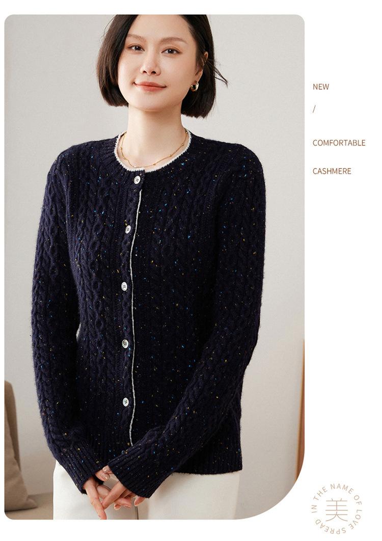 Cárdigan de Punto de Cachemira para Otoño/Invierno para Mujer, Suéter de Cuello Redondo Combinable, Estilo Relajado, Suéter de Lana, Chaqueta Gruesa
