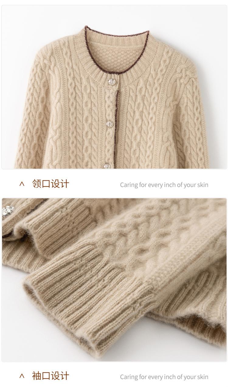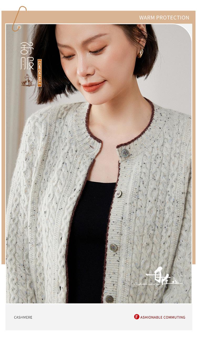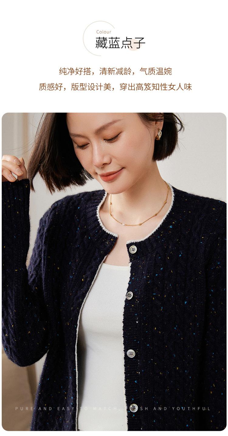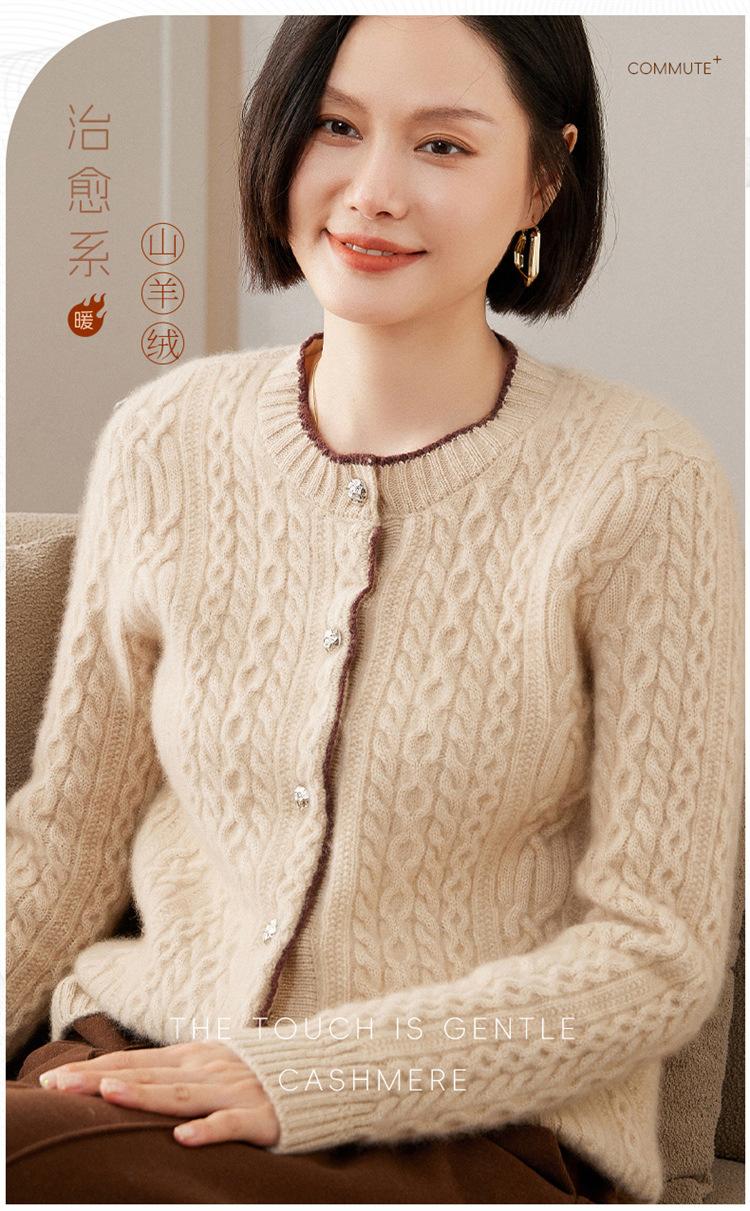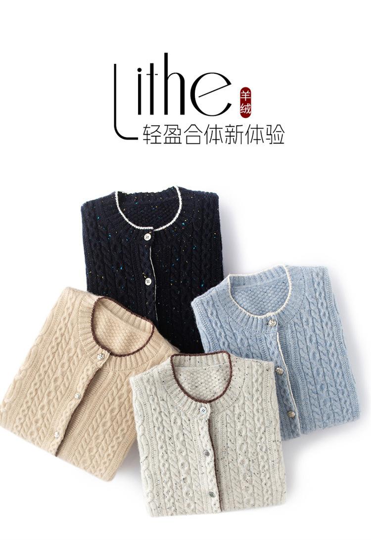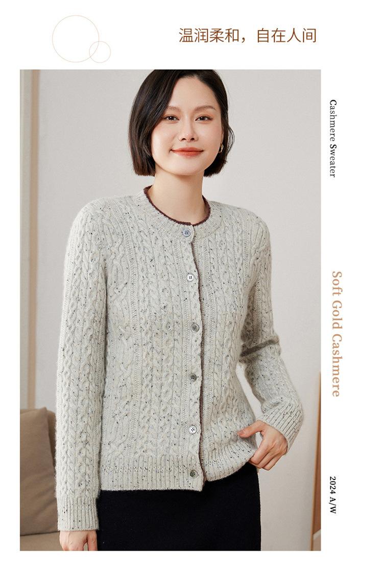 Cárdigan de Punto de Cachemira para Otoño/Invierno para Mujer, Suéter de Cuello Redondo Combinable, Estilo Relajado, Suéter de Lana, Chaqueta Gruesa