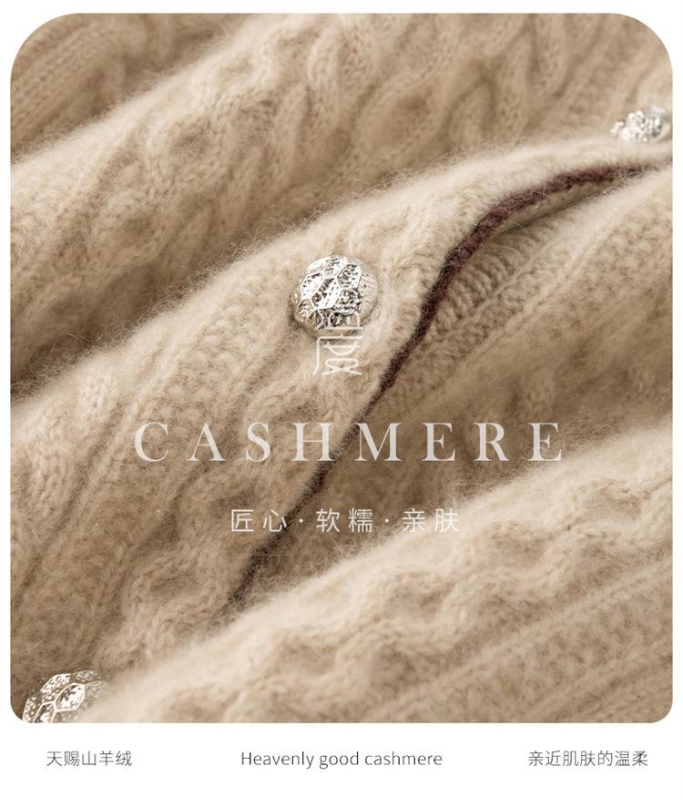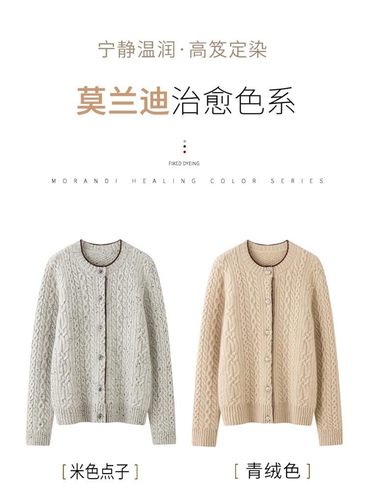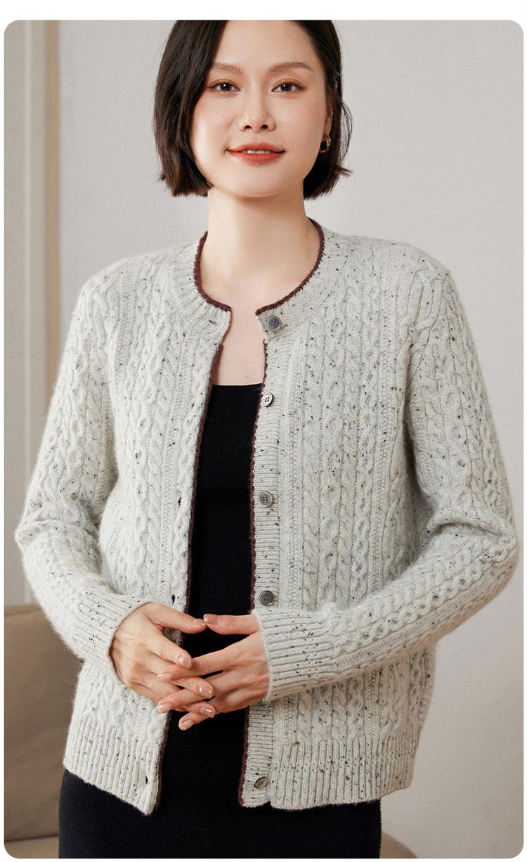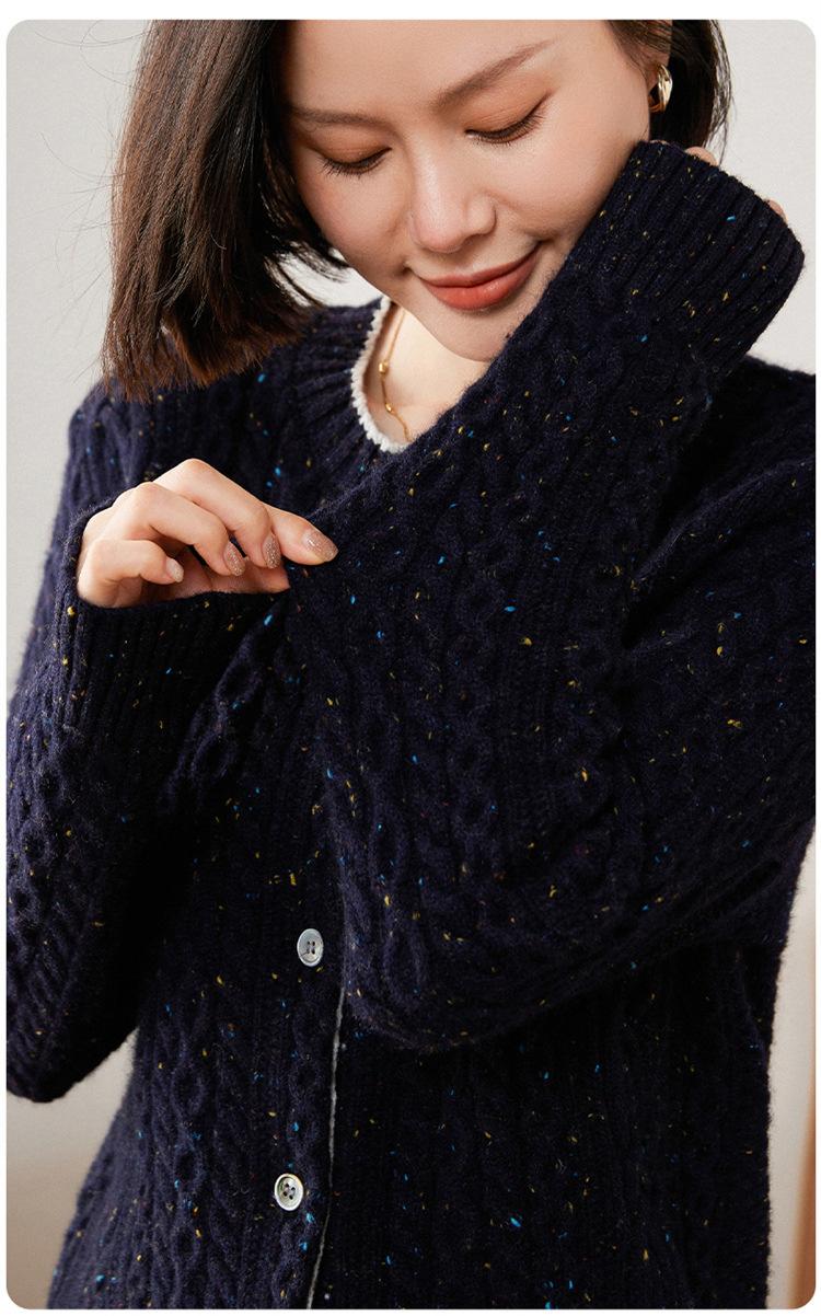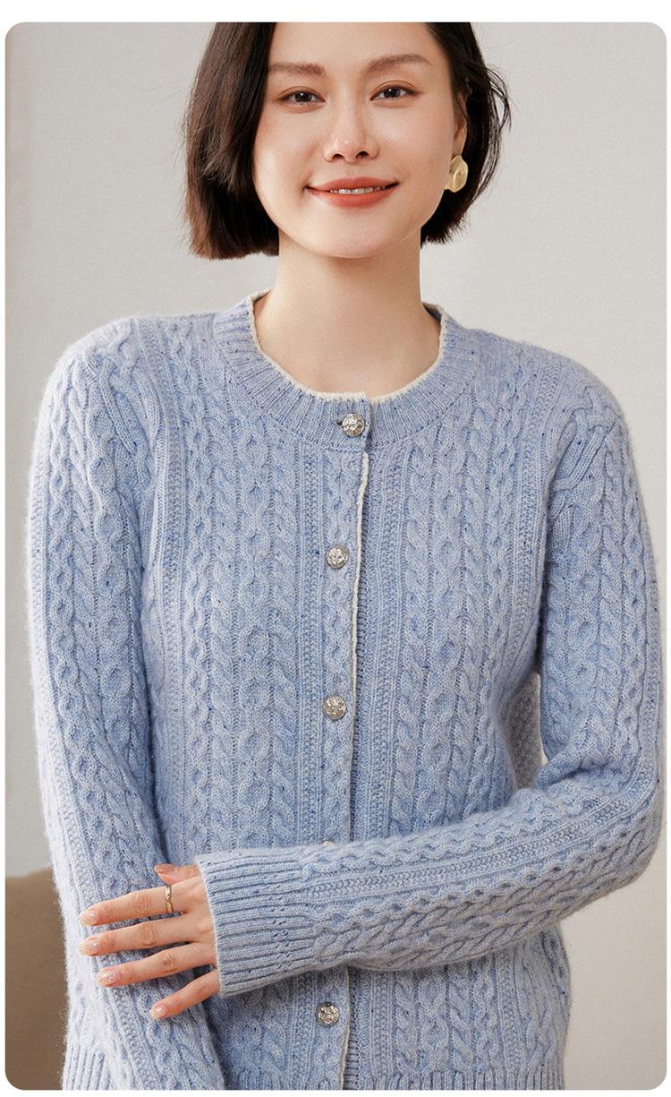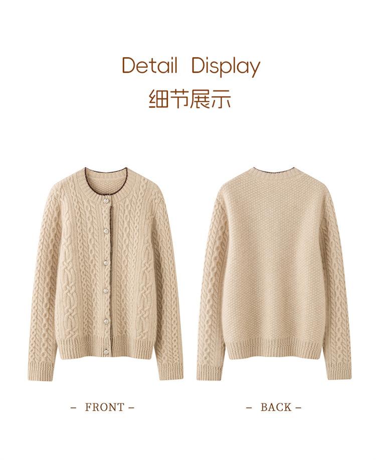 Cárdigan de Punto de Cachemira para Otoño/Invierno para Mujer, Suéter de Cuello Redondo Combinable, Estilo Relajado, Suéter de Lana, Chaqueta Gruesa