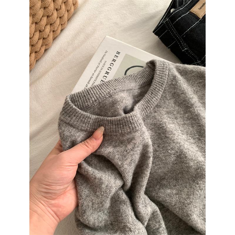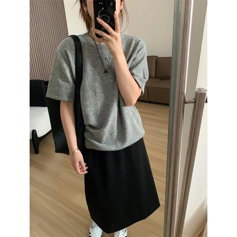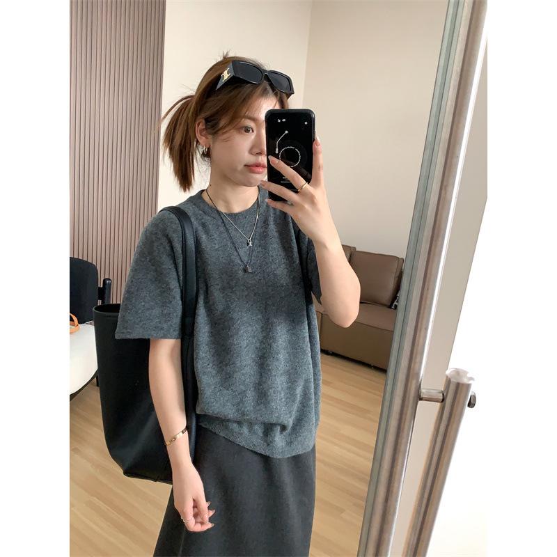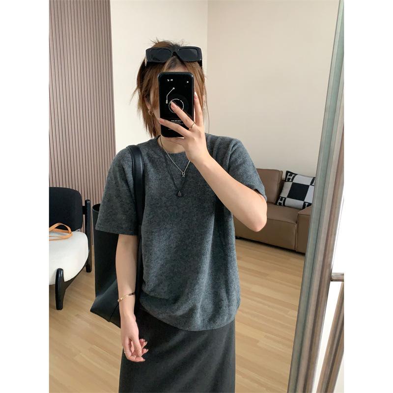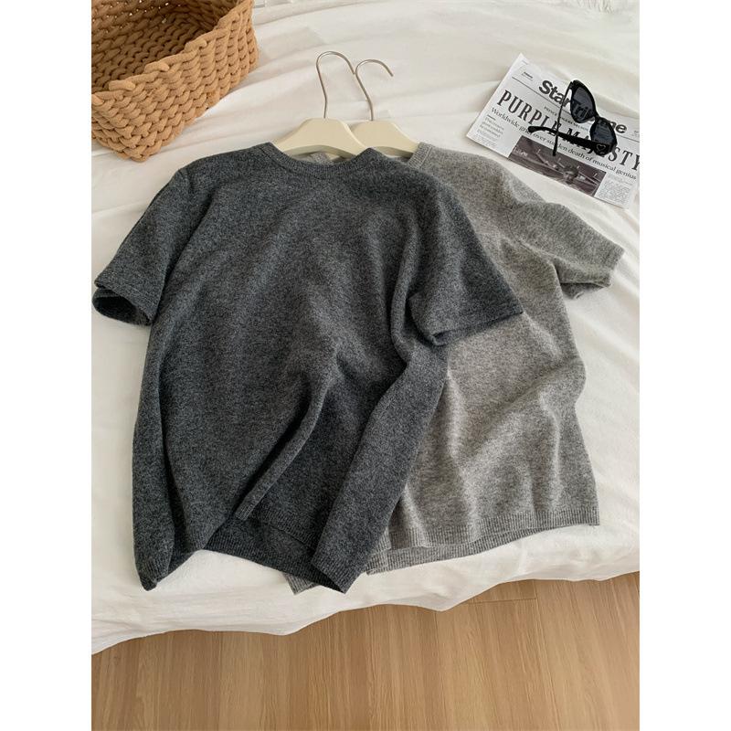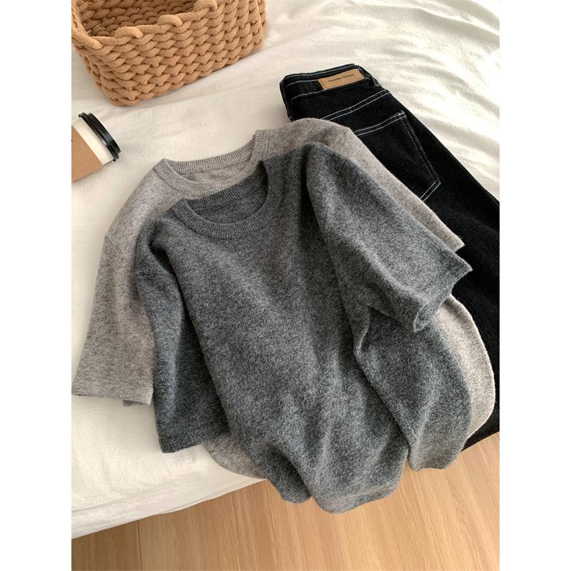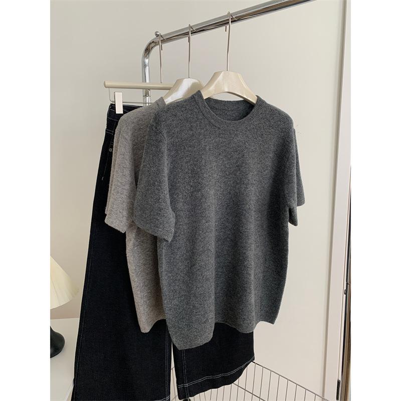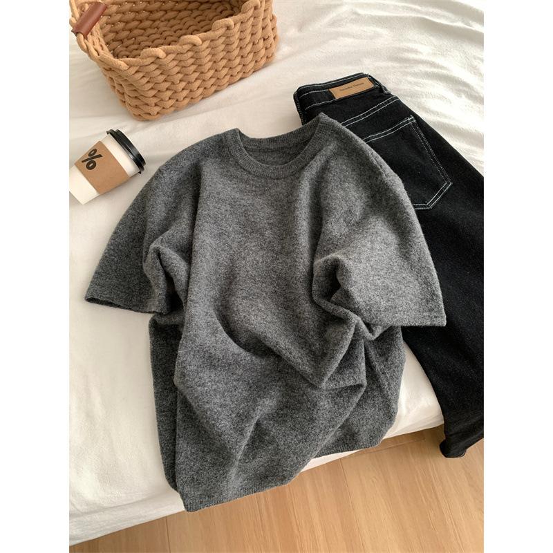 Suéter de punto suave y encerado para mujer, de alta gama, adelgazante, combinable, de lana suelta, de manga corta, para primavera y otoño.