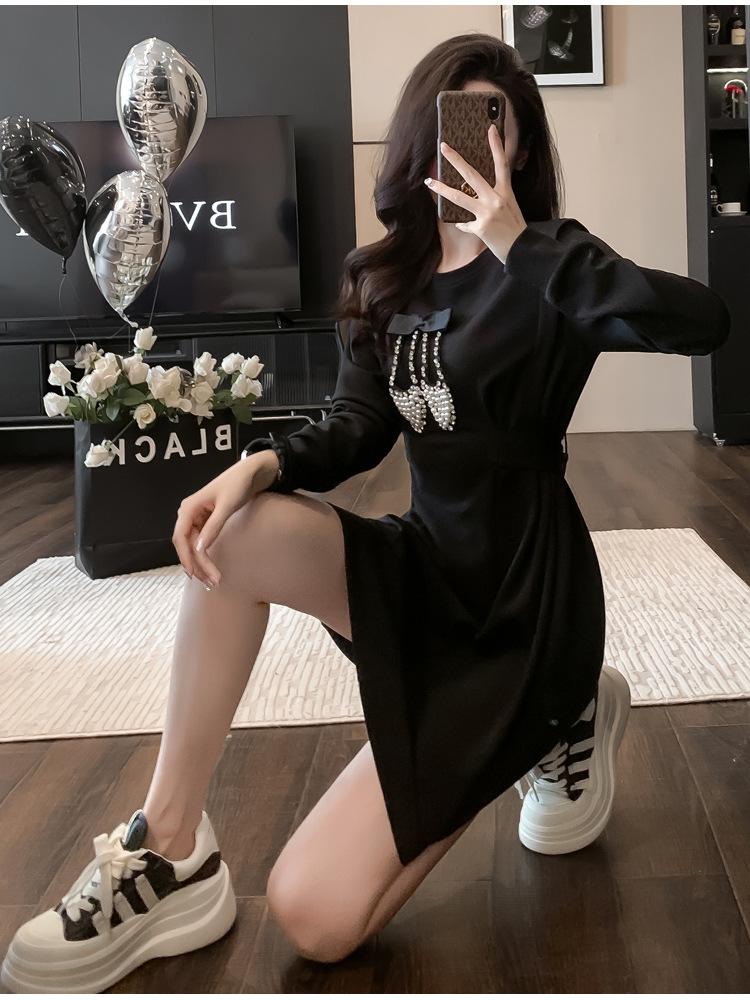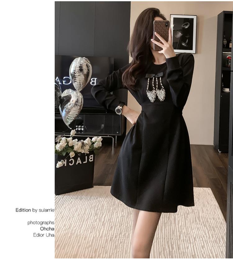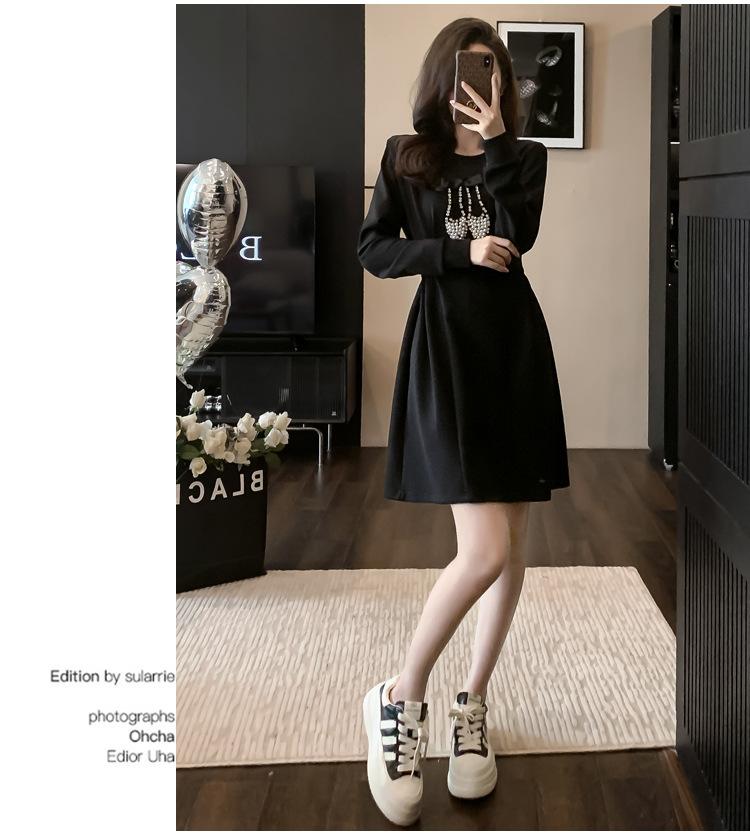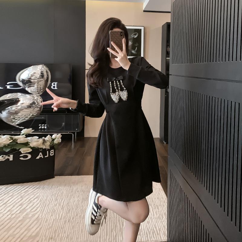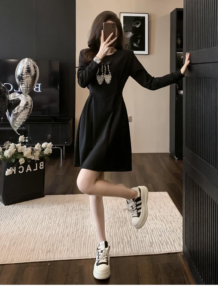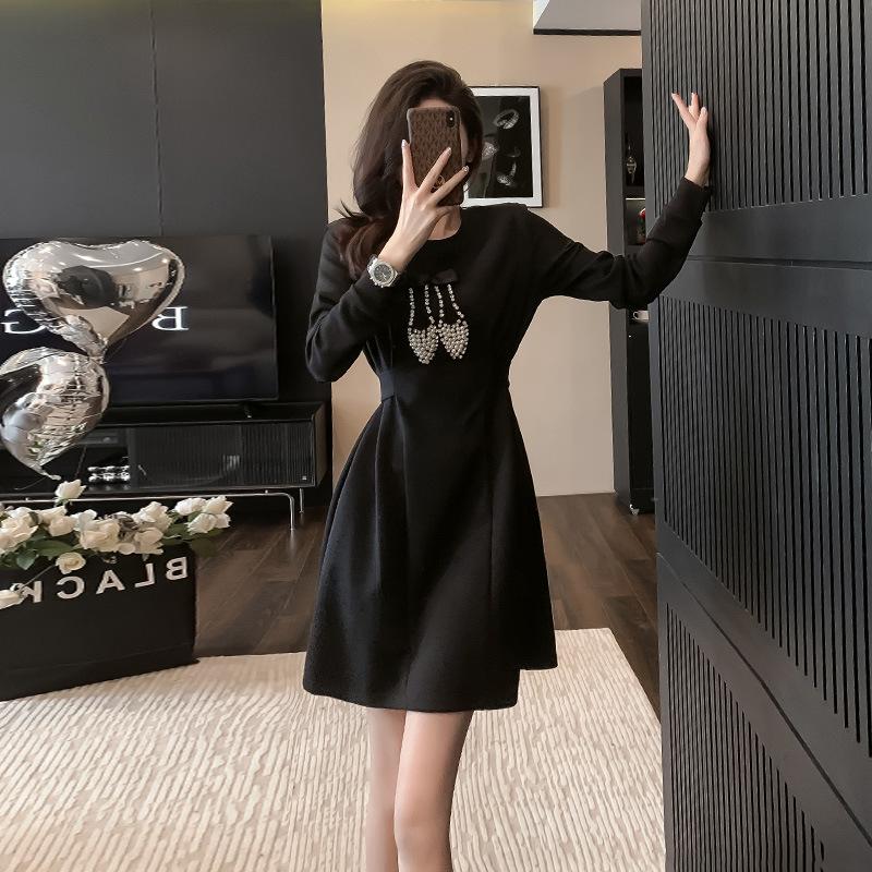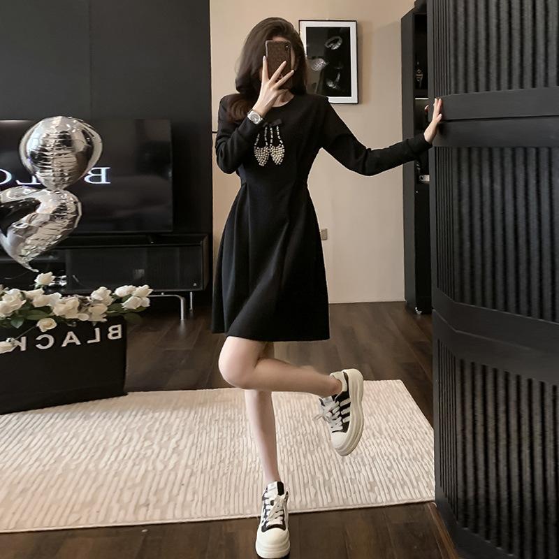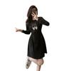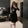 Vestido negro elegante estilo francés Hepburn para mujer, otoño 2024, cintura adelgazante, vestido de chándal de alta gama