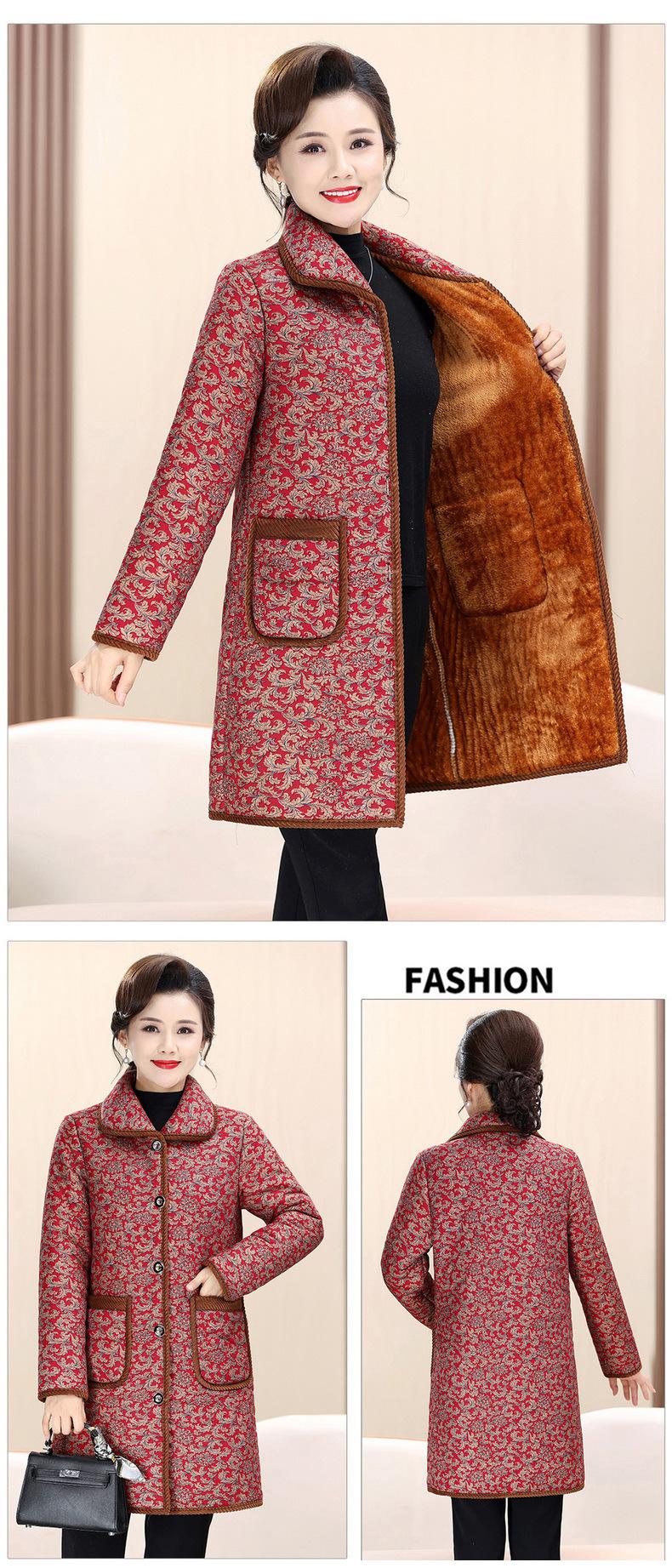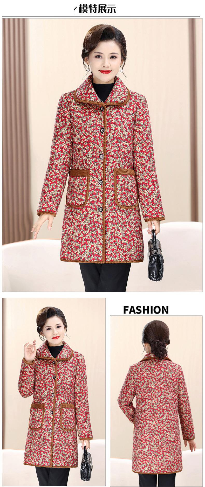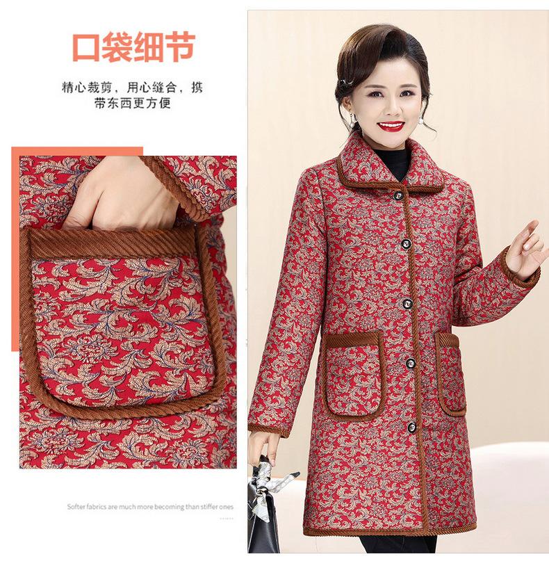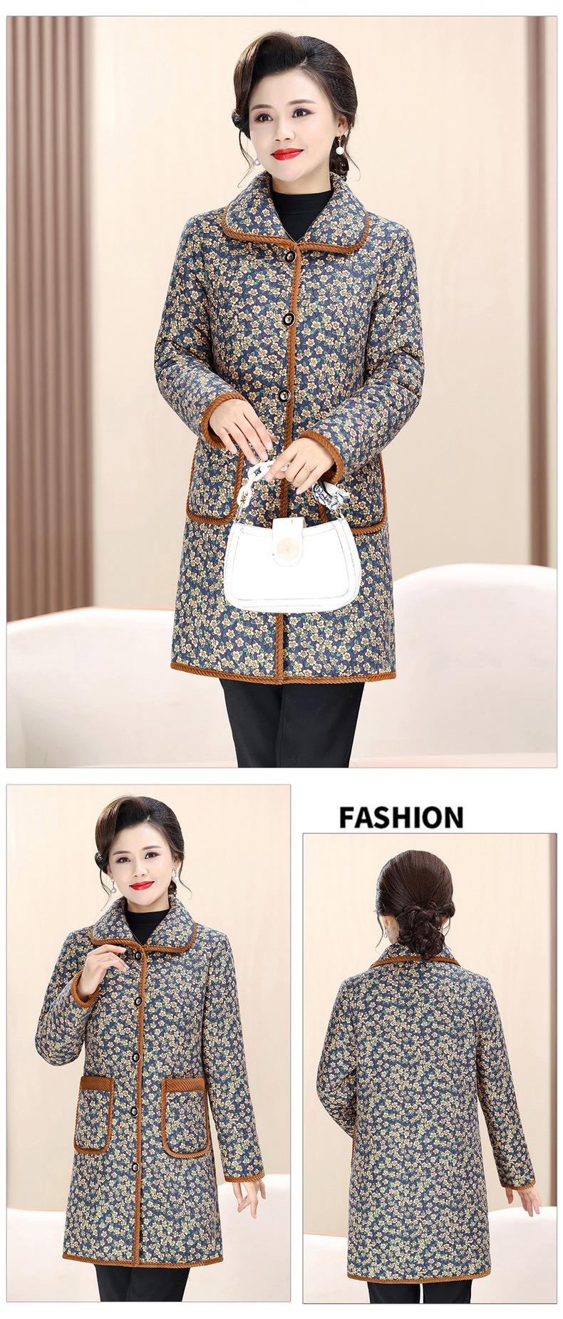 Ropa de invierno para mujeres de mediana edad y ancianas de 50 años, chaqueta acolchada de algodón con forro polar engrosado con flores, chaqueta acolchada de algodón suave diaria para madres de 60 años no es fría