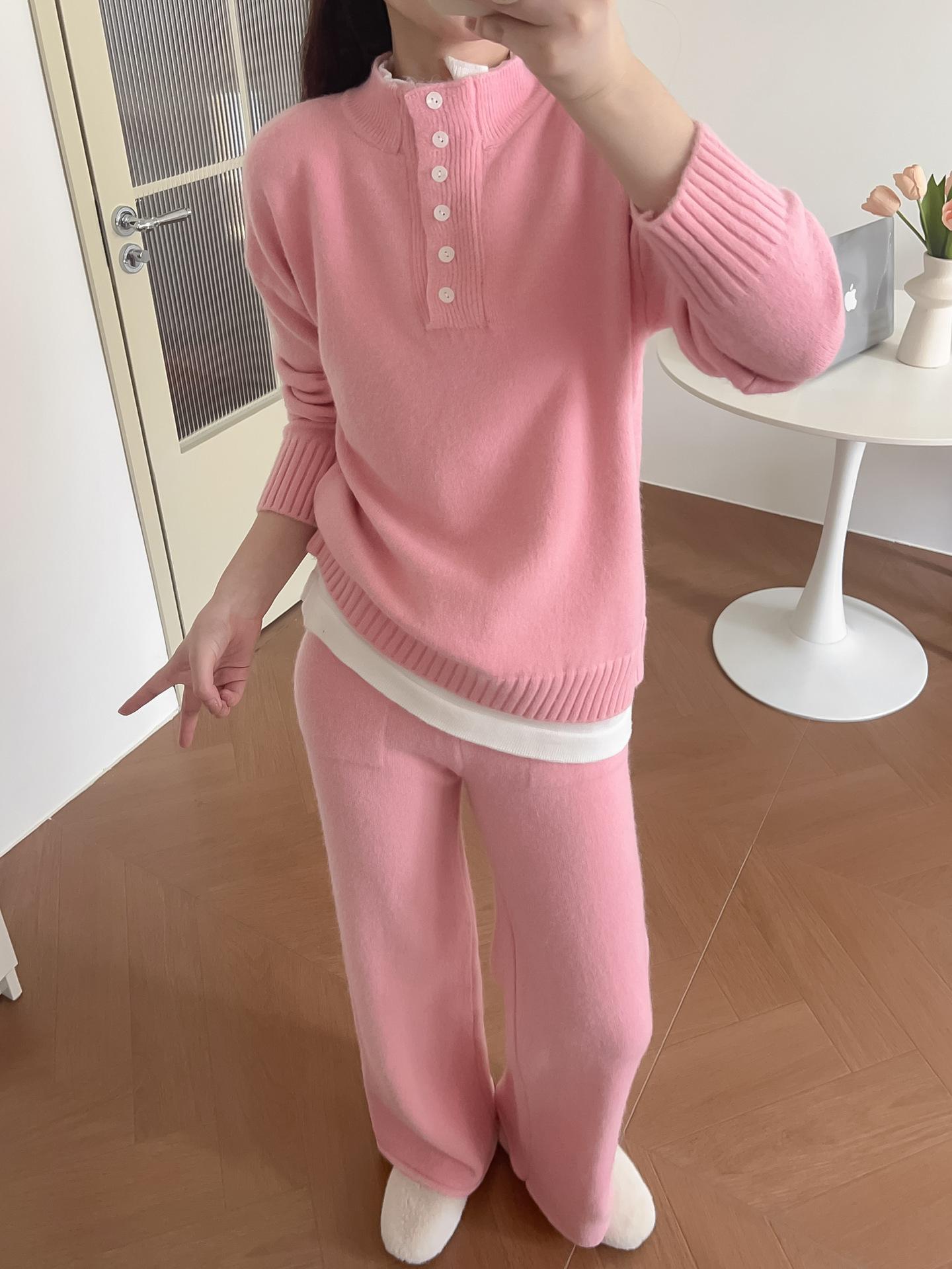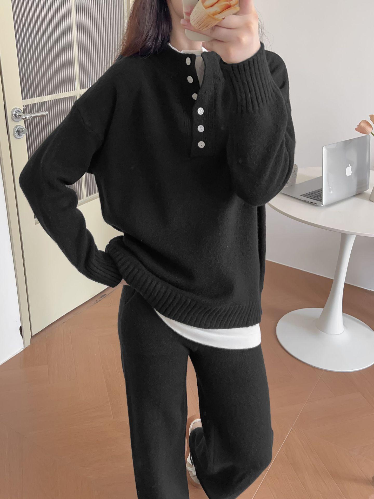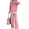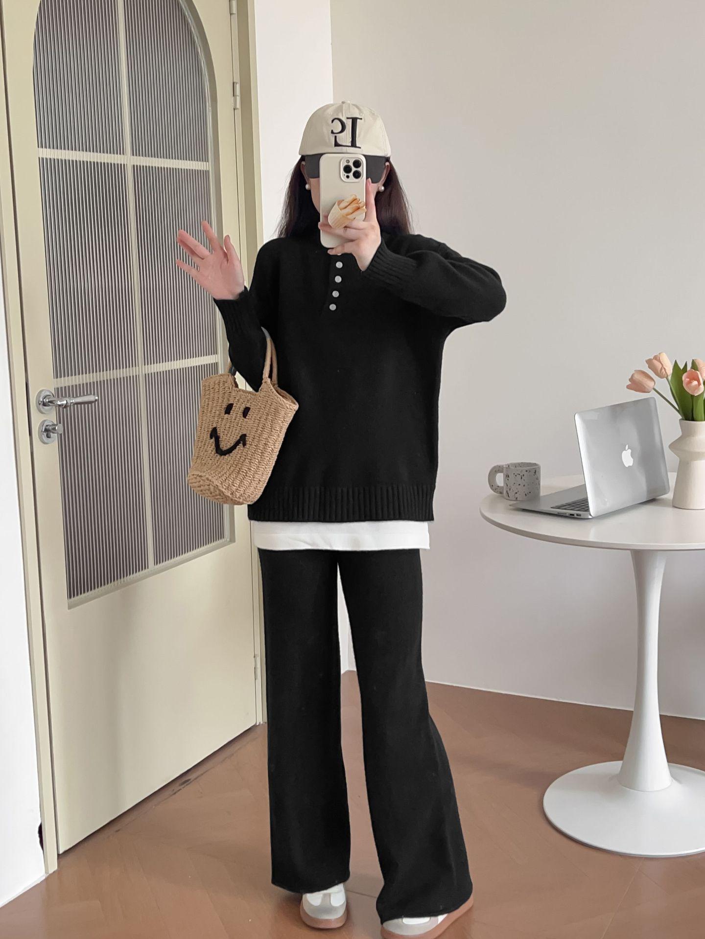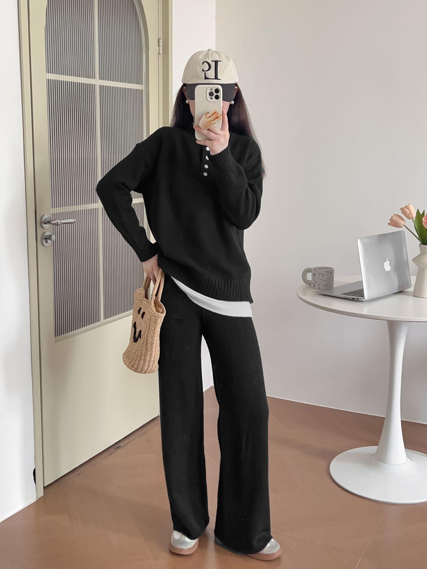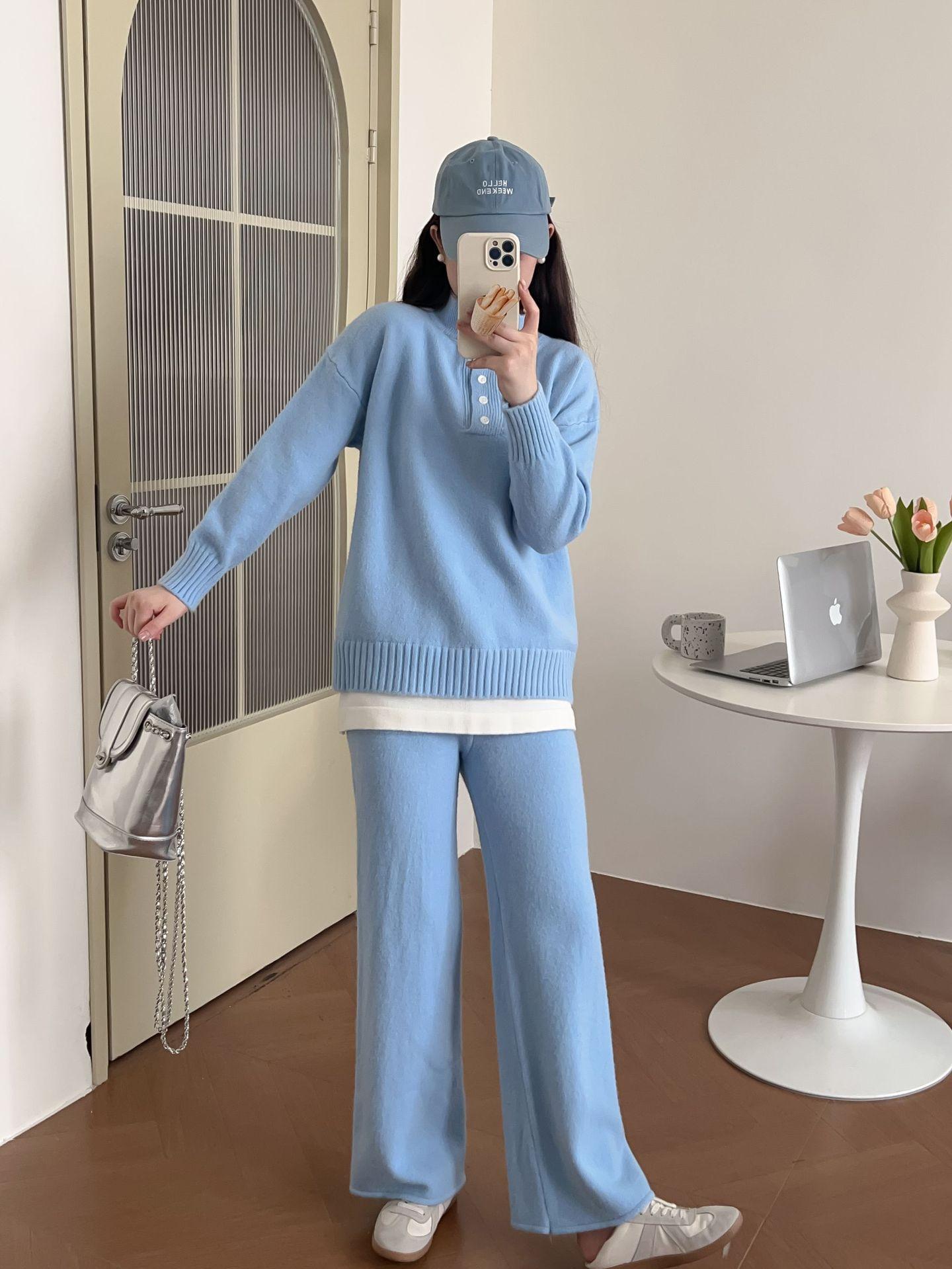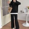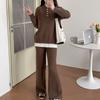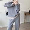 Moda de Estación Europea Traje Deportivo Casual para Mujer Otoño e Invierno Nuevo Suelto Falso de Dos Piezas Tejido de Pierna Ancha Suéter de Dos Piezas