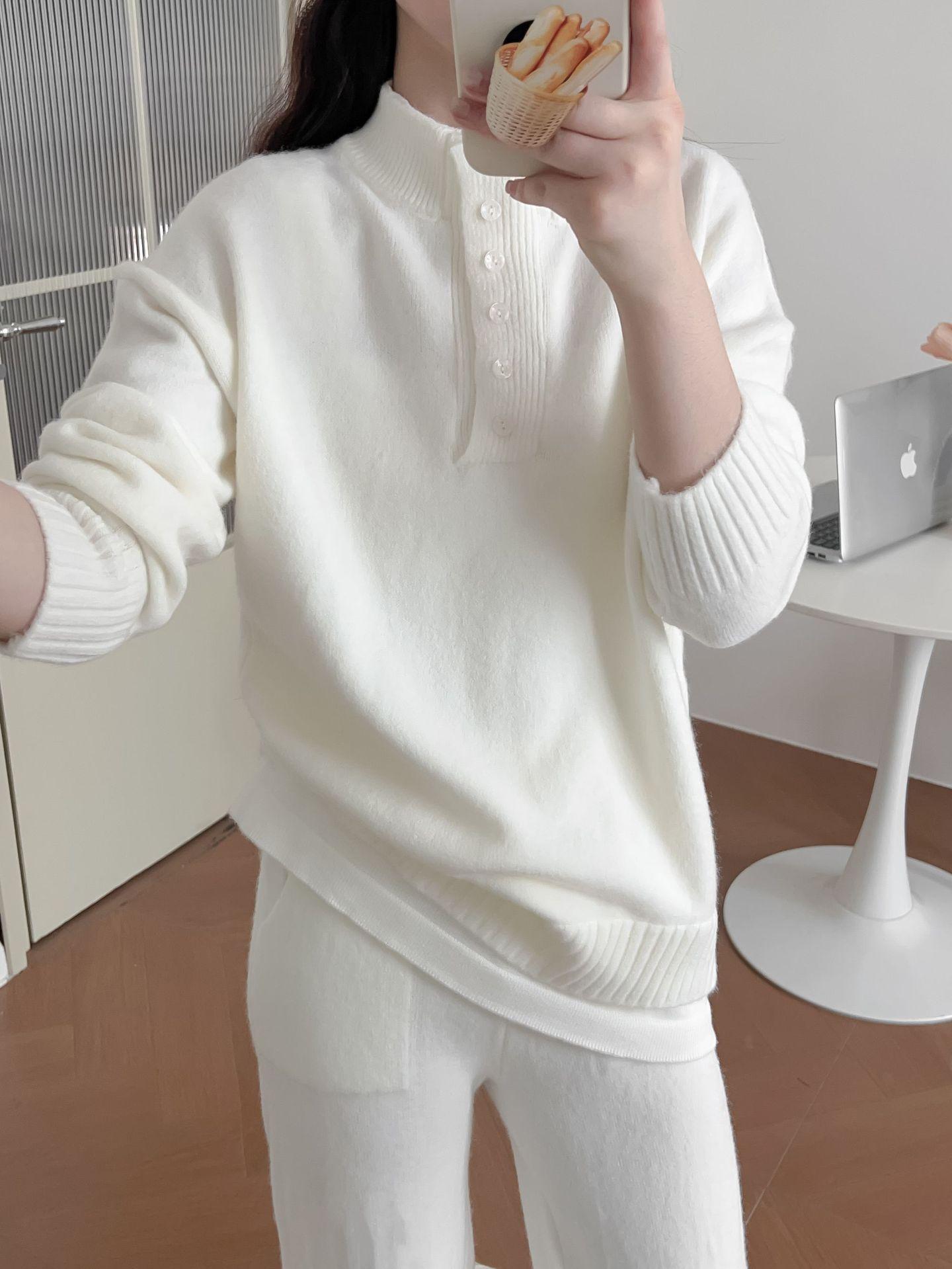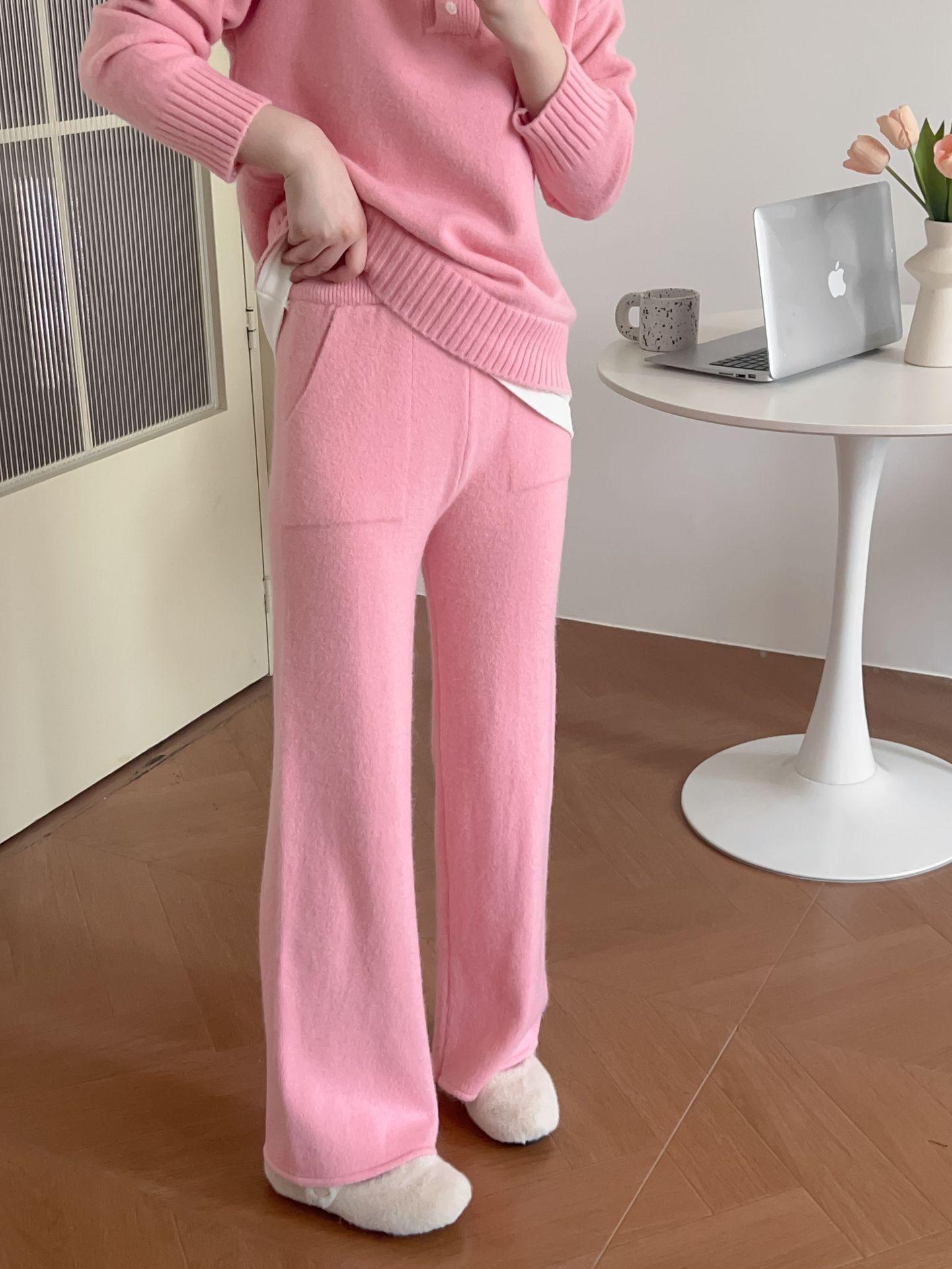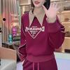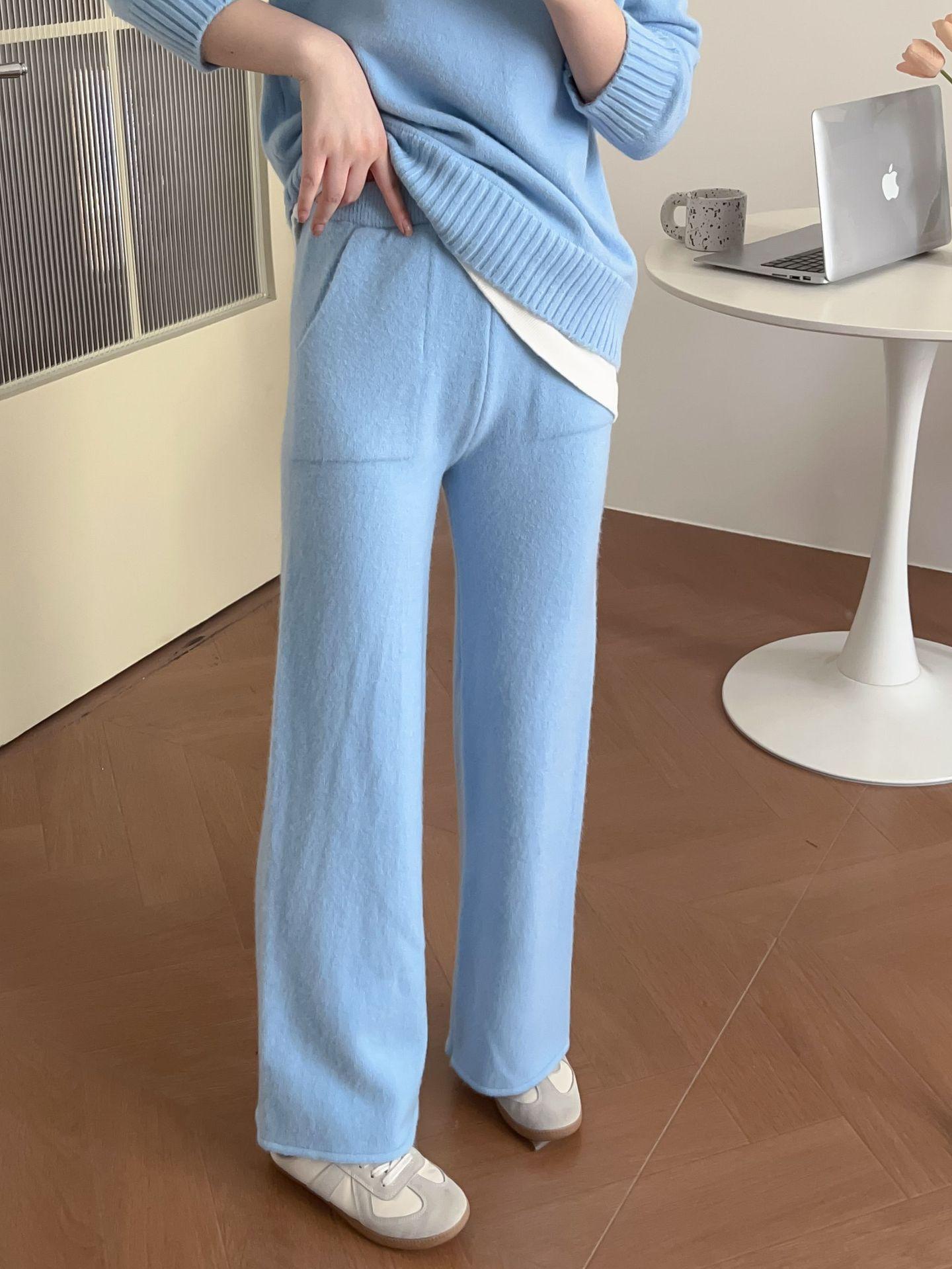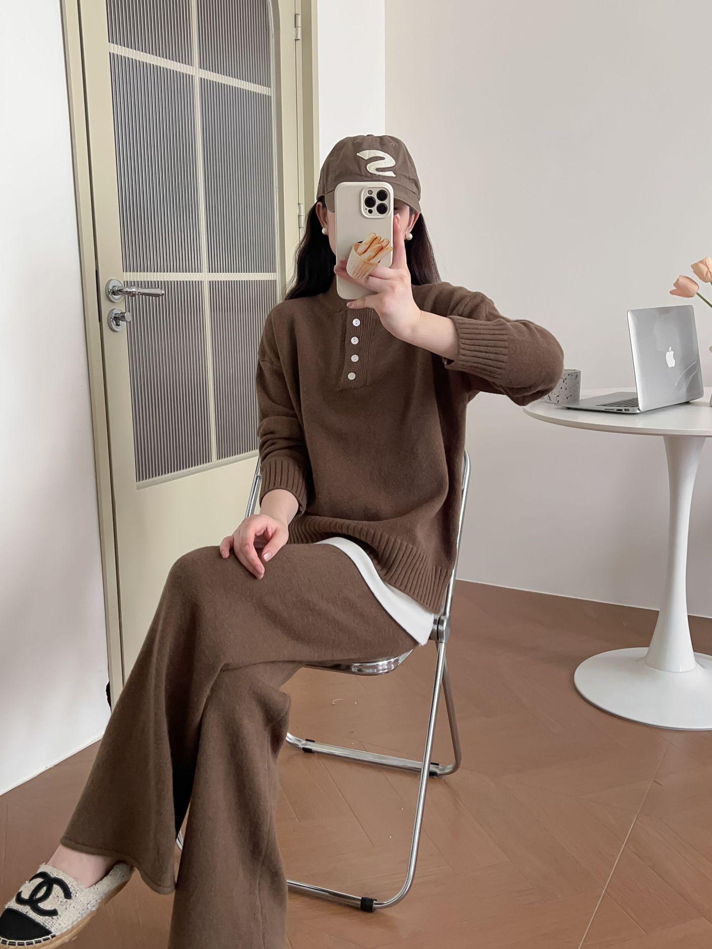 Moda de Estación Europea Traje Deportivo Casual para Mujer Otoño e Invierno Nuevo Suelto Falso de Dos Piezas Tejido de Pierna Ancha Suéter de Dos Piezas