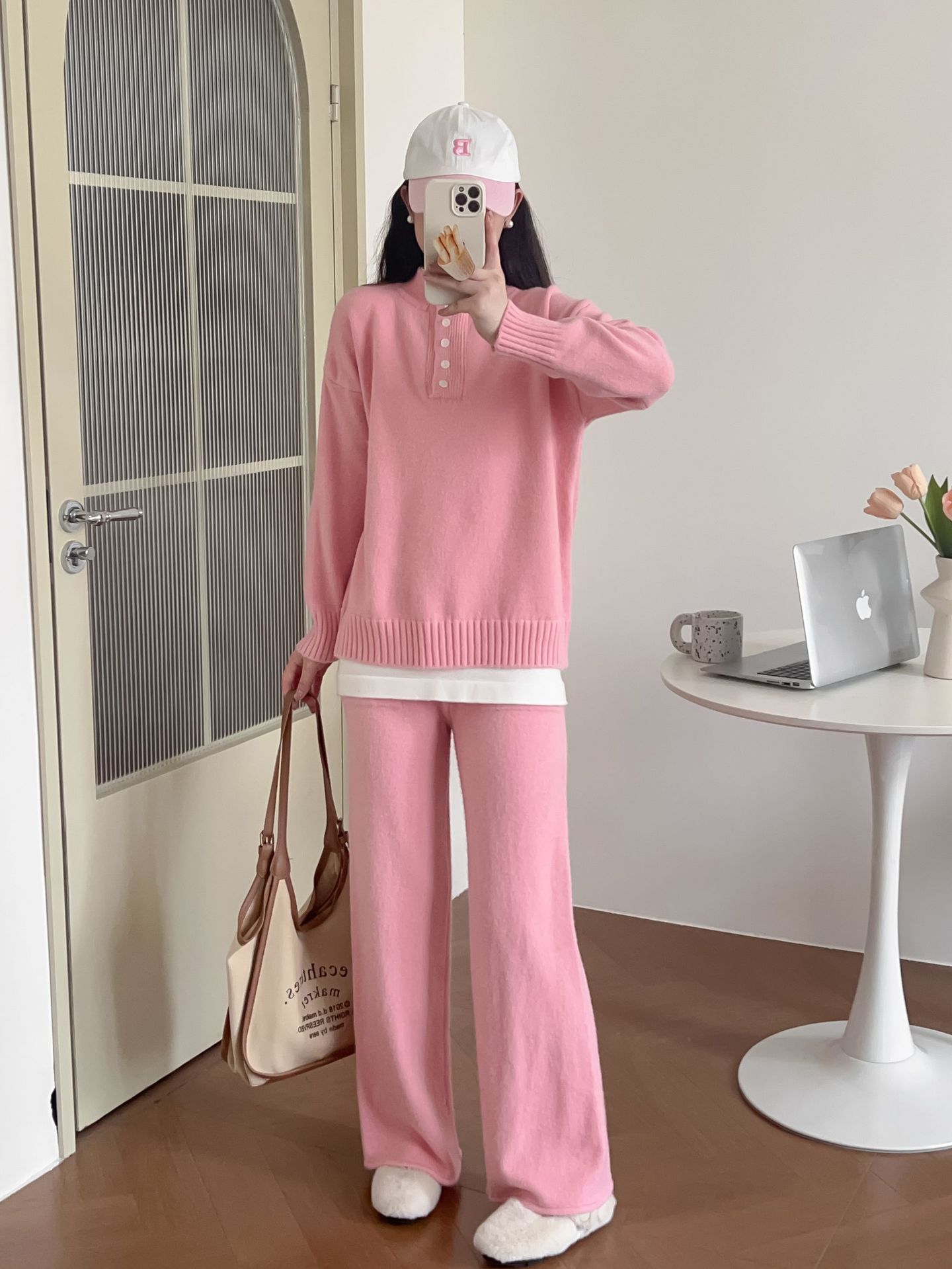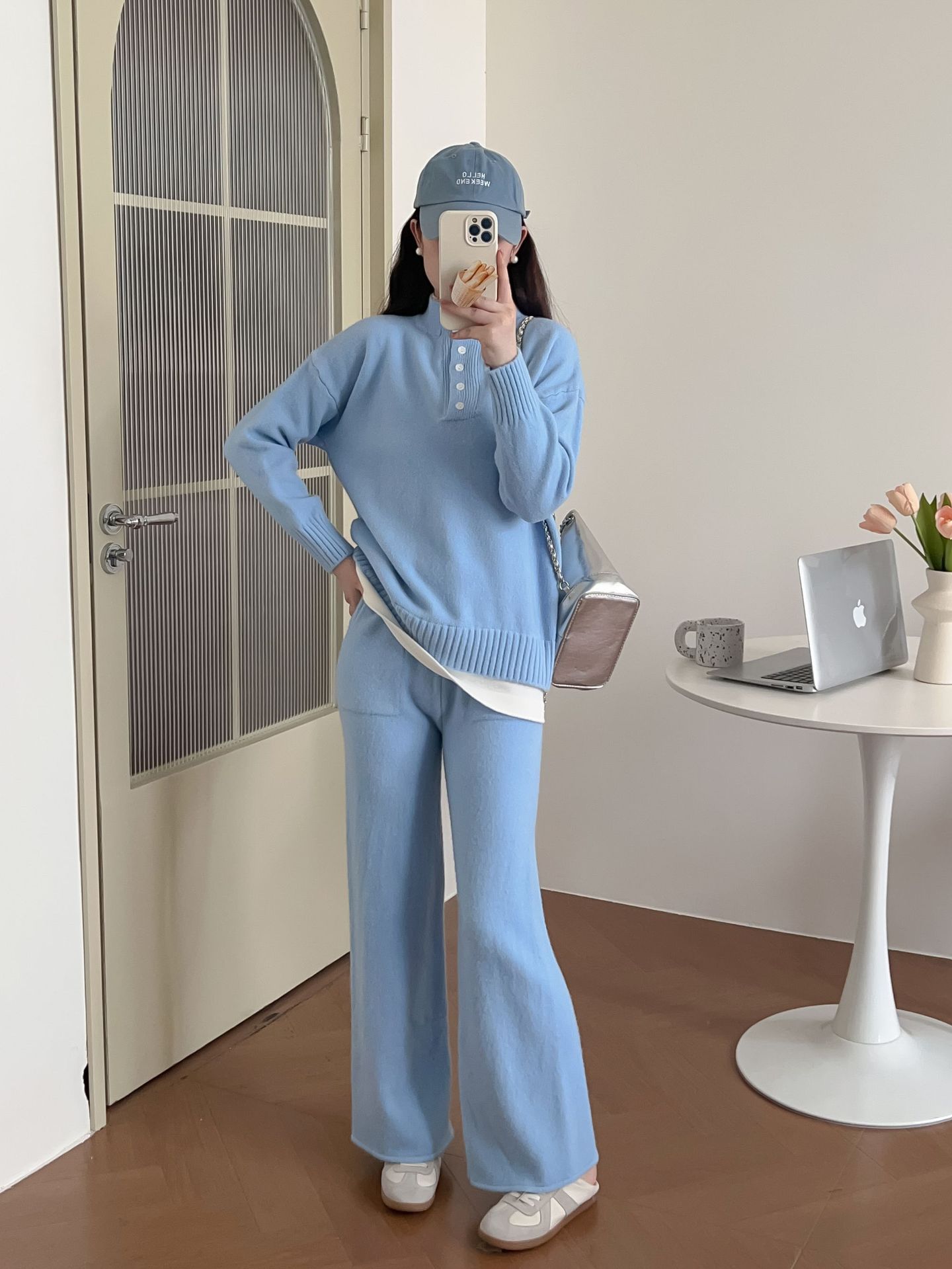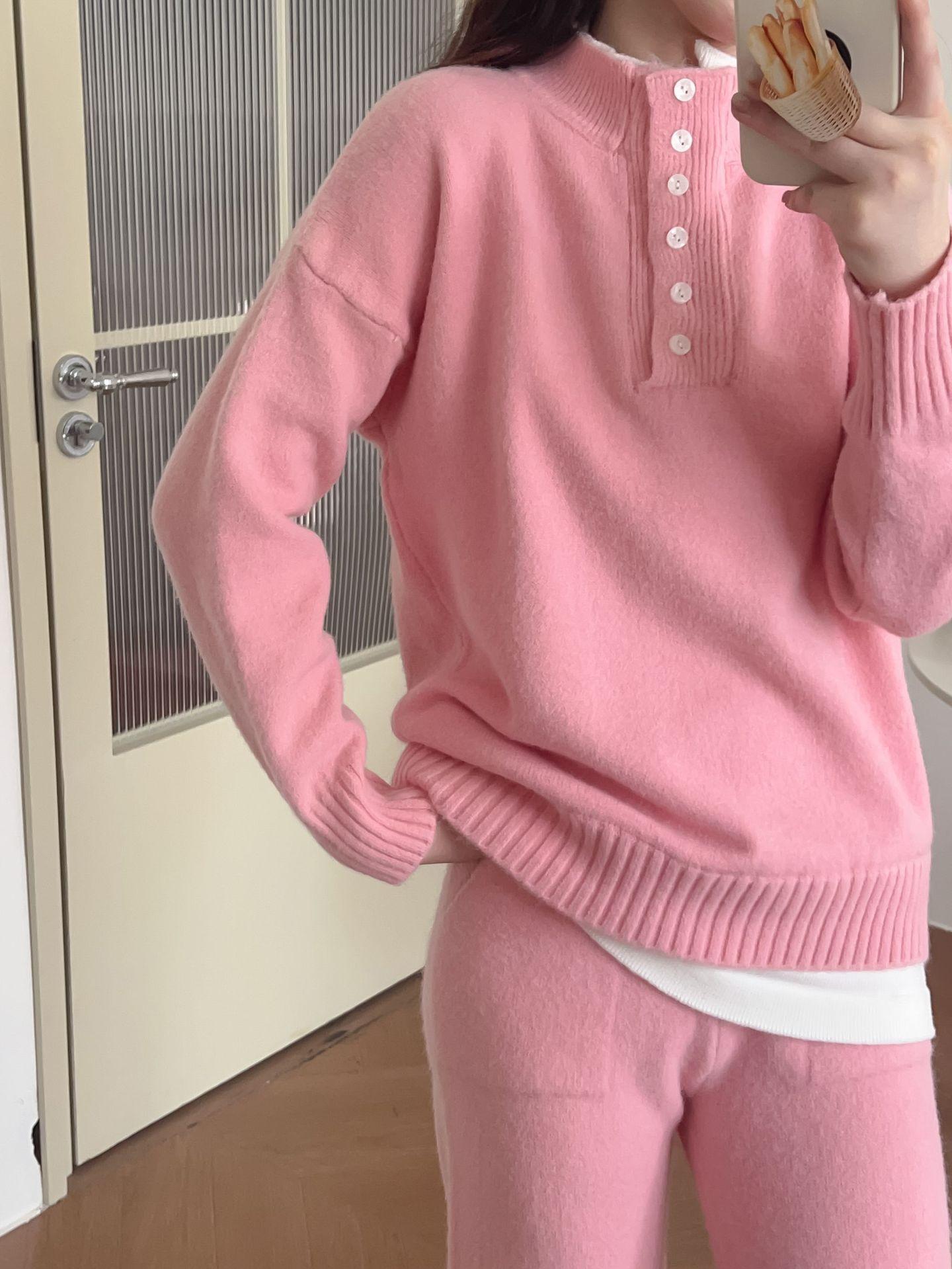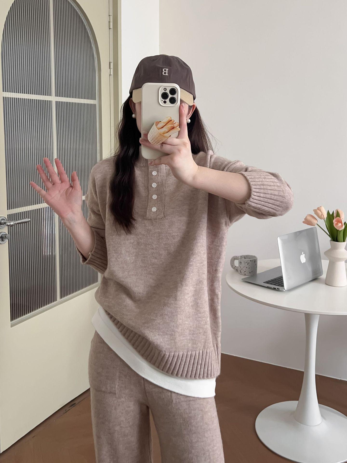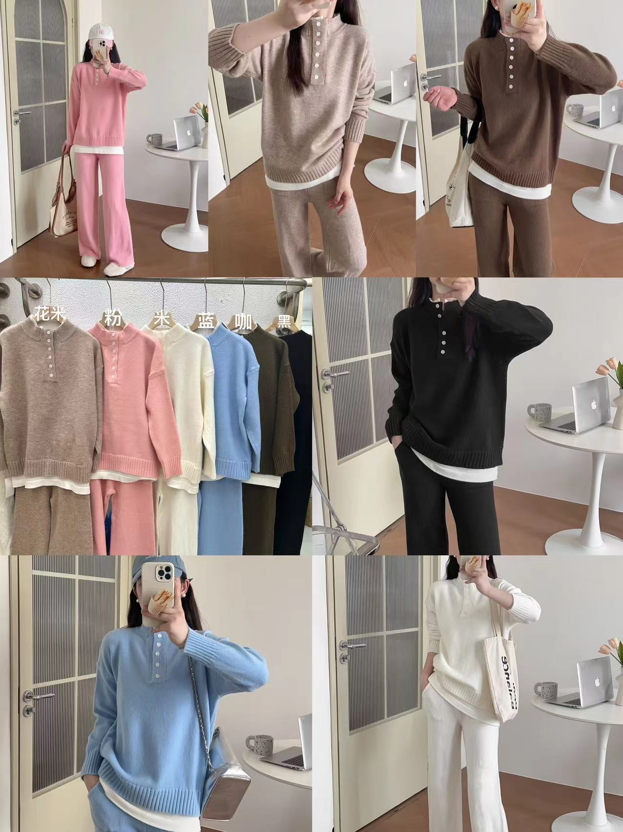 Moda de Estación Europea Traje Deportivo Casual para Mujer Otoño e Invierno Nuevo Suelto Falso de Dos Piezas Tejido de Pierna Ancha Suéter de Dos Piezas