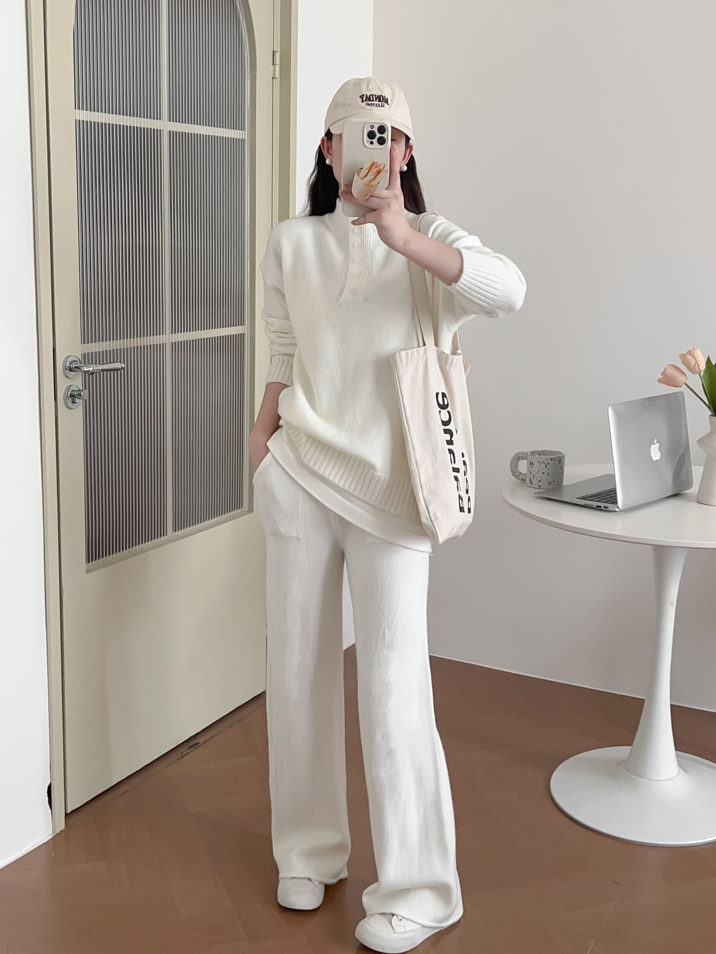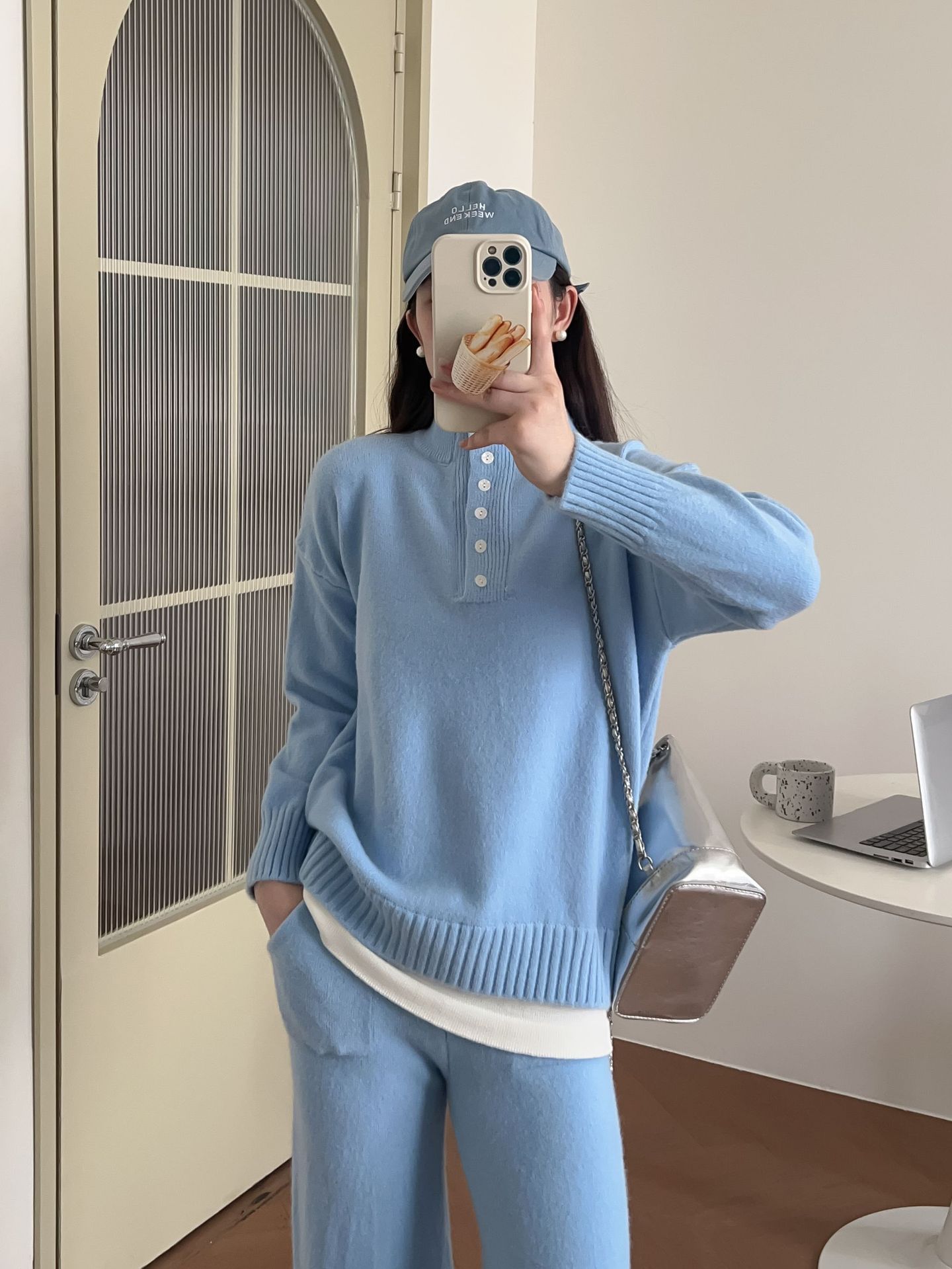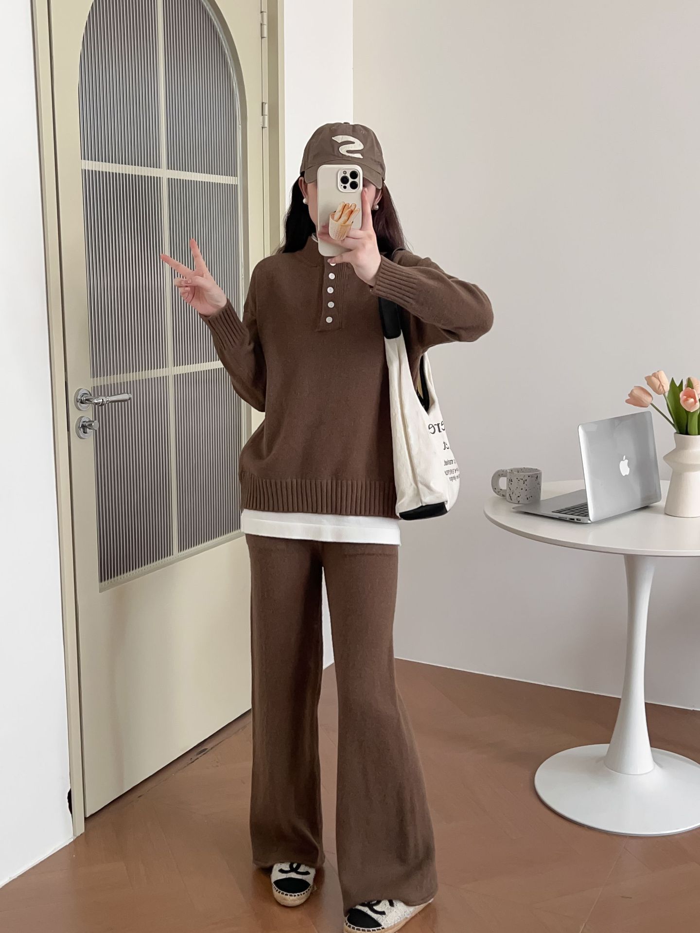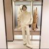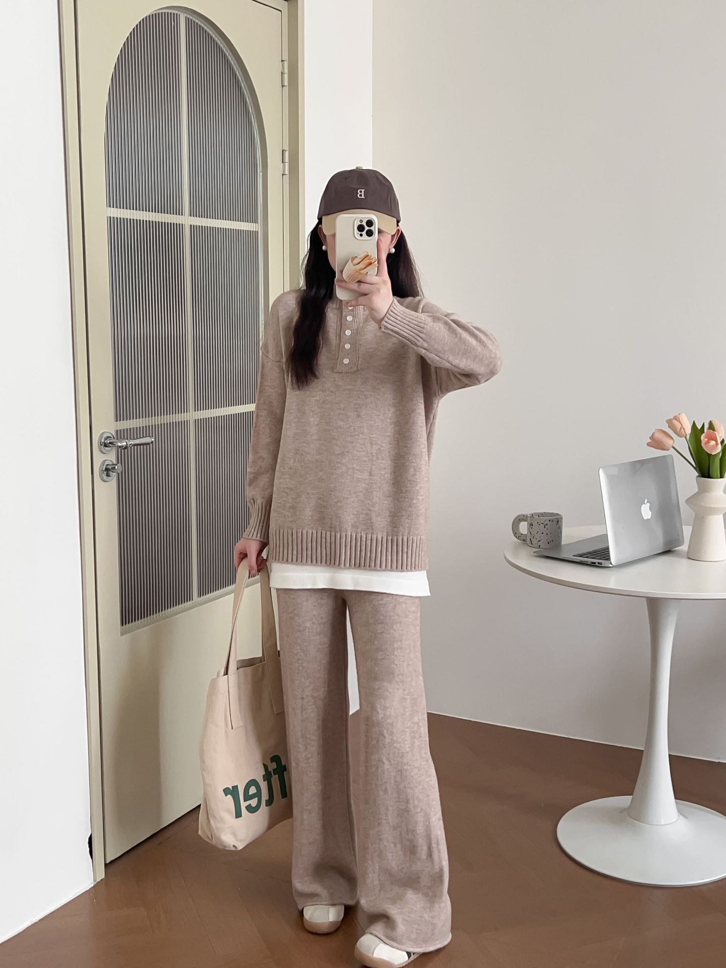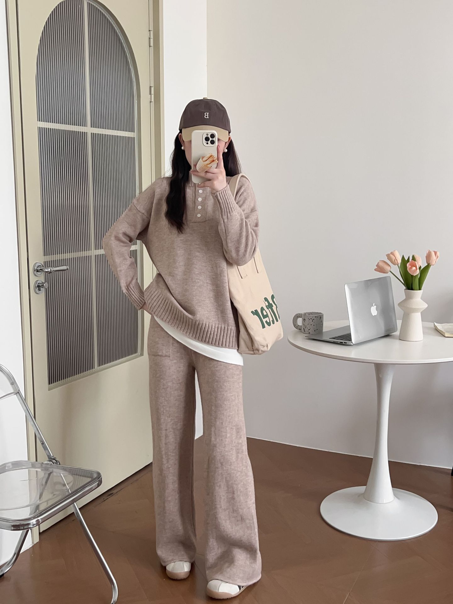 Moda de Estación Europea Traje Deportivo Casual para Mujer Otoño e Invierno Nuevo Suelto Falso de Dos Piezas Tejido de Pierna Ancha Suéter de Dos Piezas