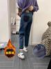 Invierno 2024 Nuevo Talla grande con forro polar Engrosado Cintura alta Adelgazante Chica gordita Tubo recto Adelgazante Harlan Torre Pantalones de nueve puntos