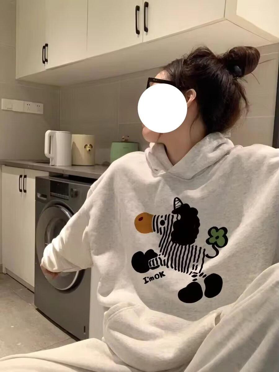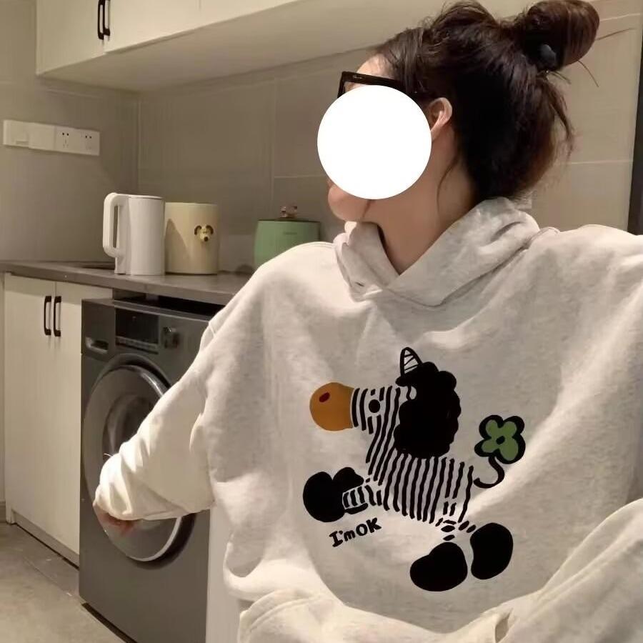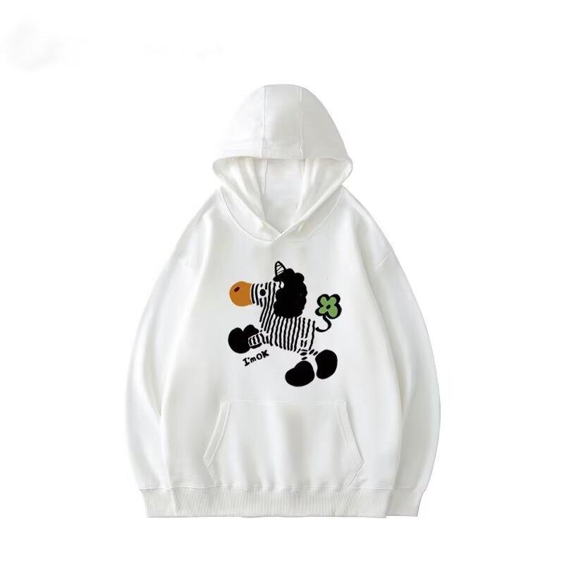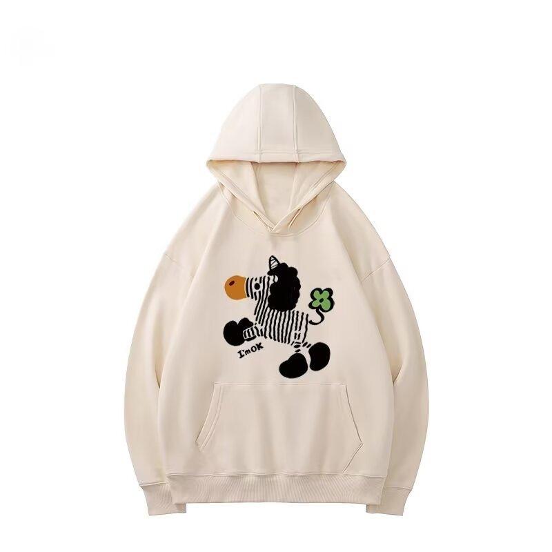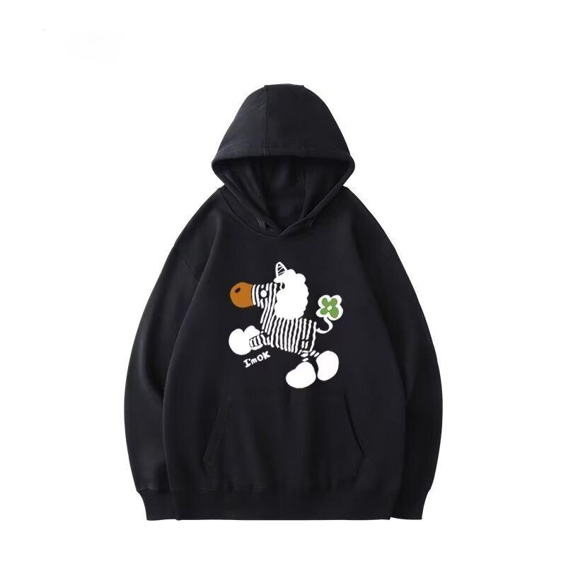 Suéter con capucha y estampado retro estilo americano para hombre y mujer, holgado, estilo informal, para exteriores, para caminar, a la moda