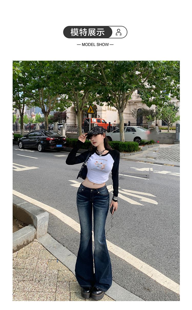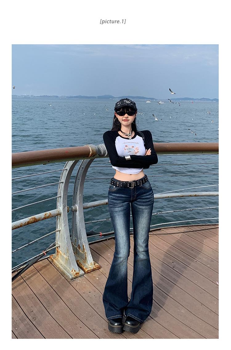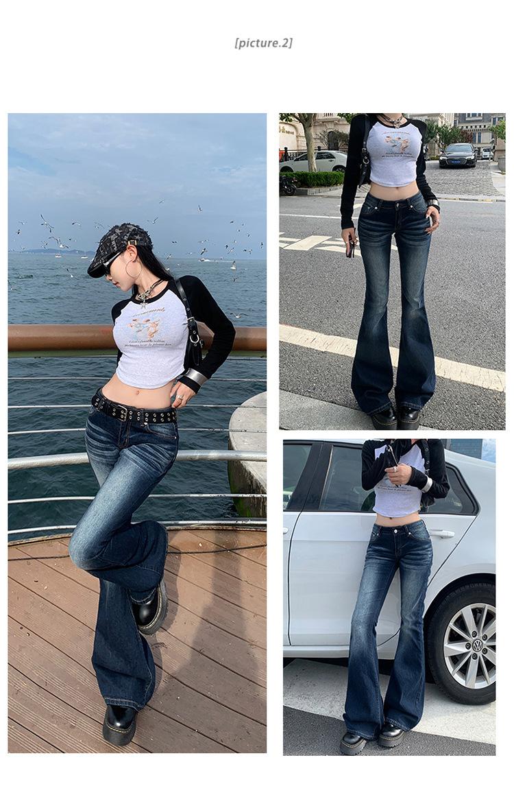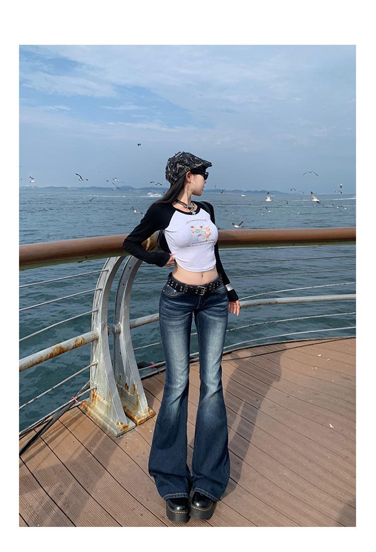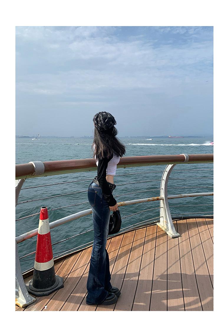YC & American Retro Spice Girls Cintura Baja Combinable Ajustado Otoño e Invierno Pantalones Acampanados Jeans Mujer & Pantalones Largos