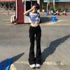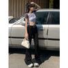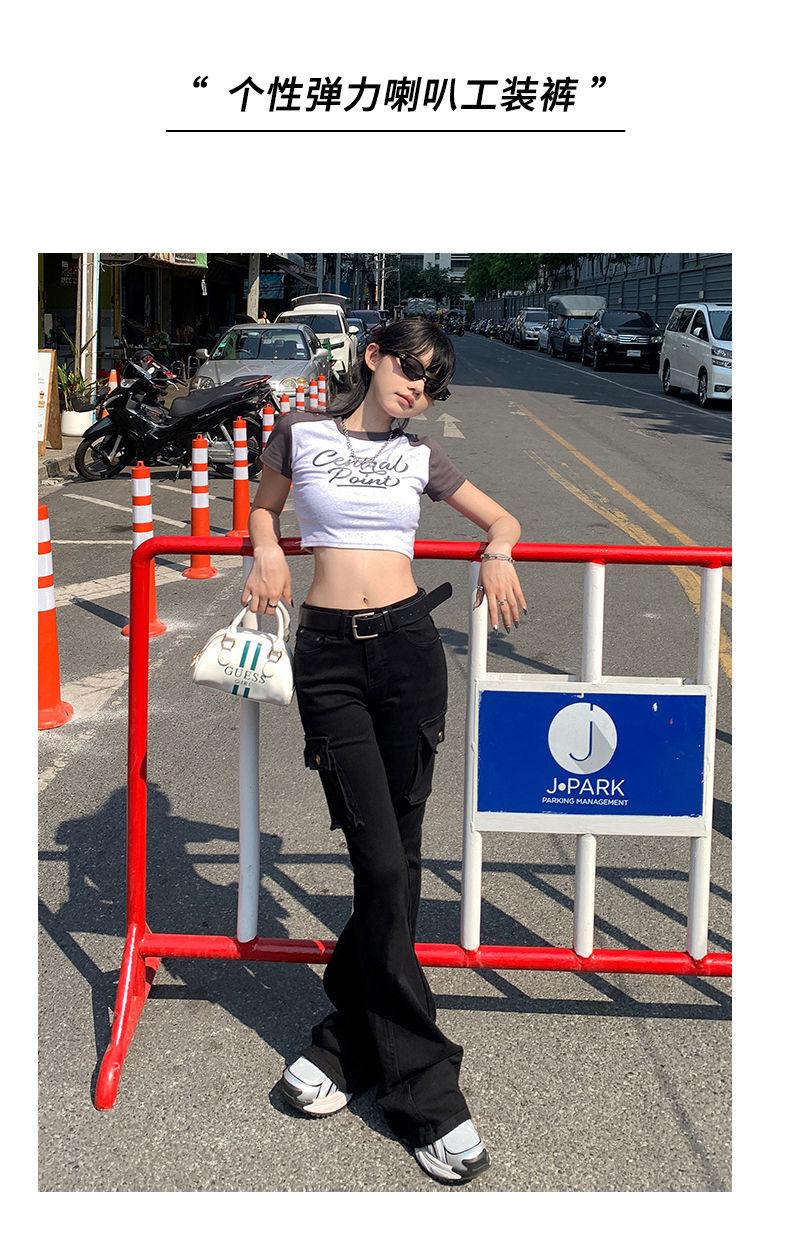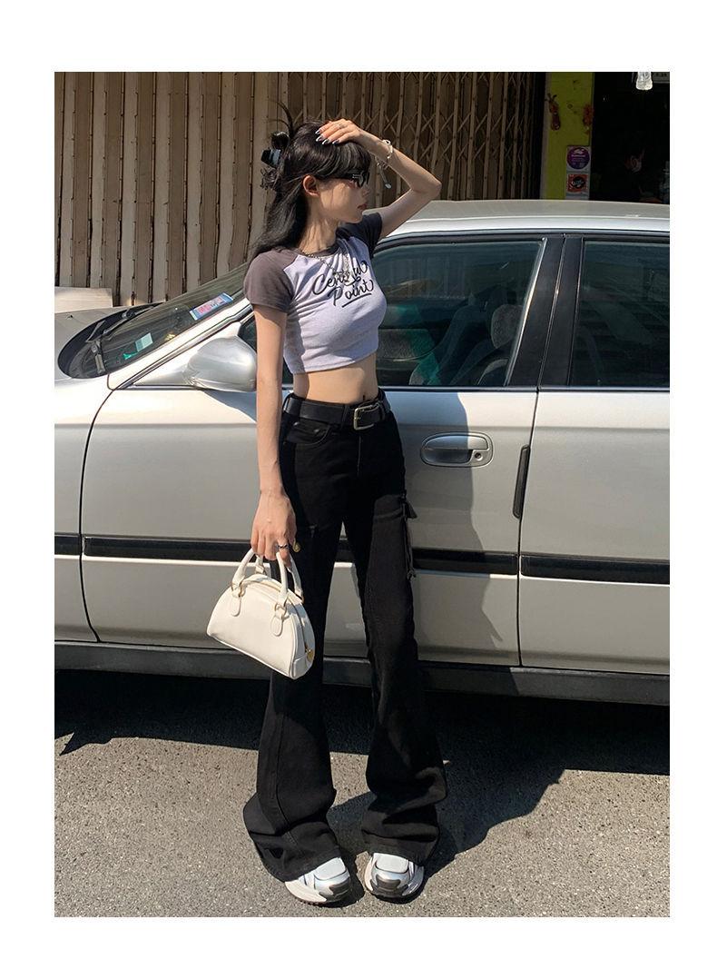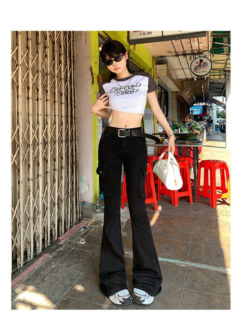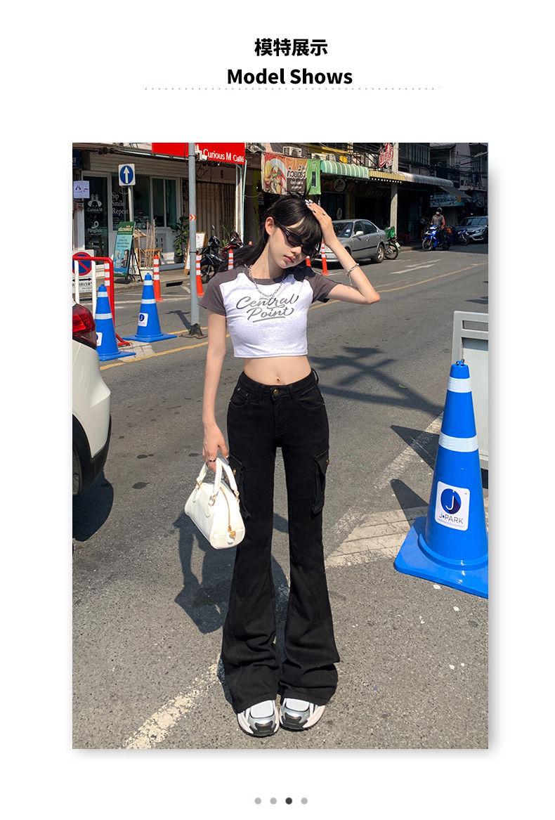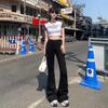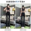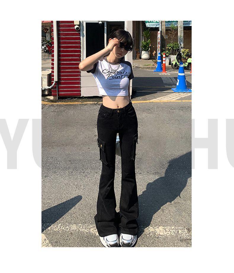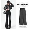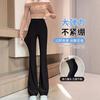 Pantalones cortos negros estilo americano para mujer, talla pequeña, primavera y otoño 2024, rectos, de cintura alta y ajustados, acampanados.