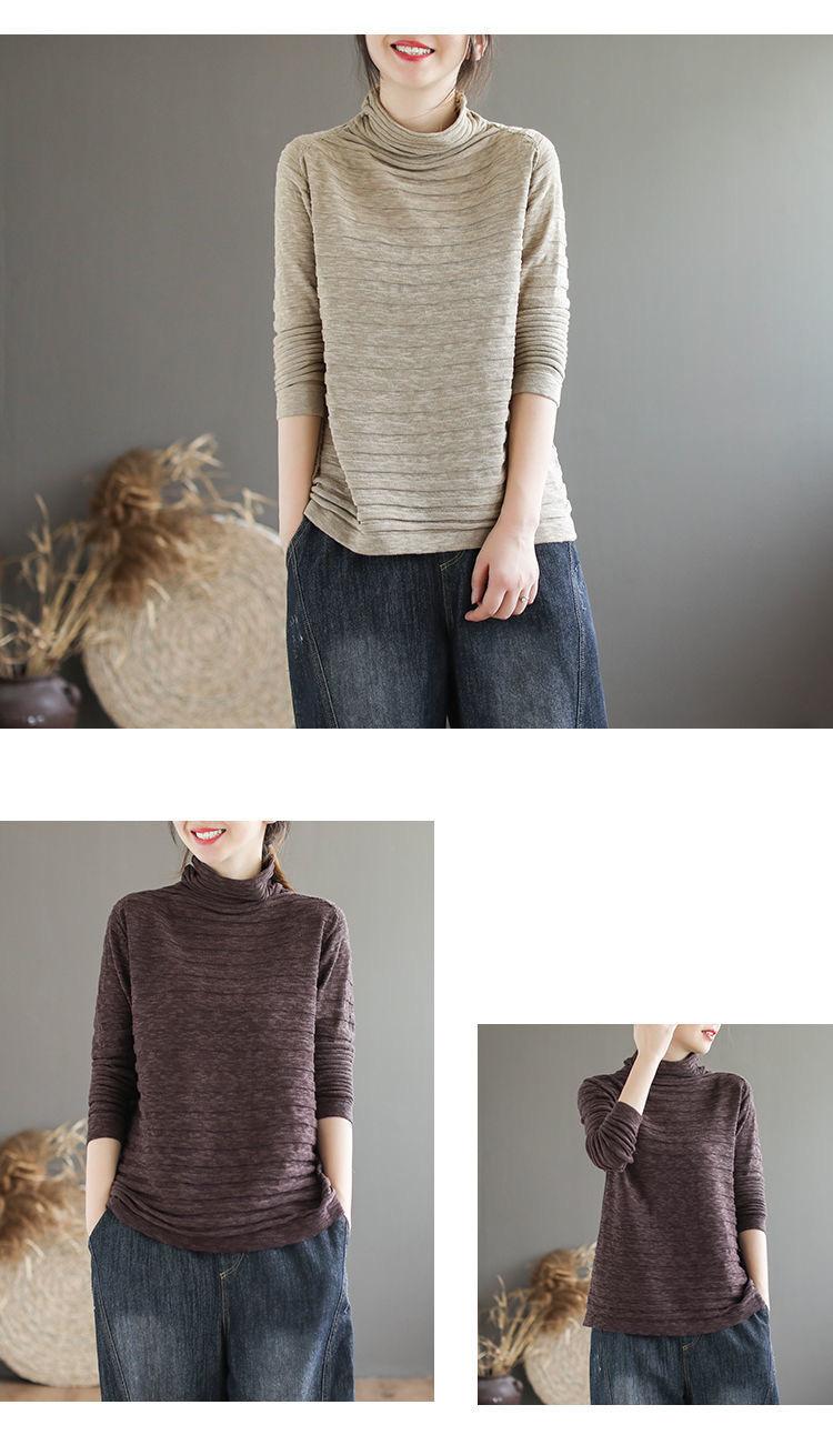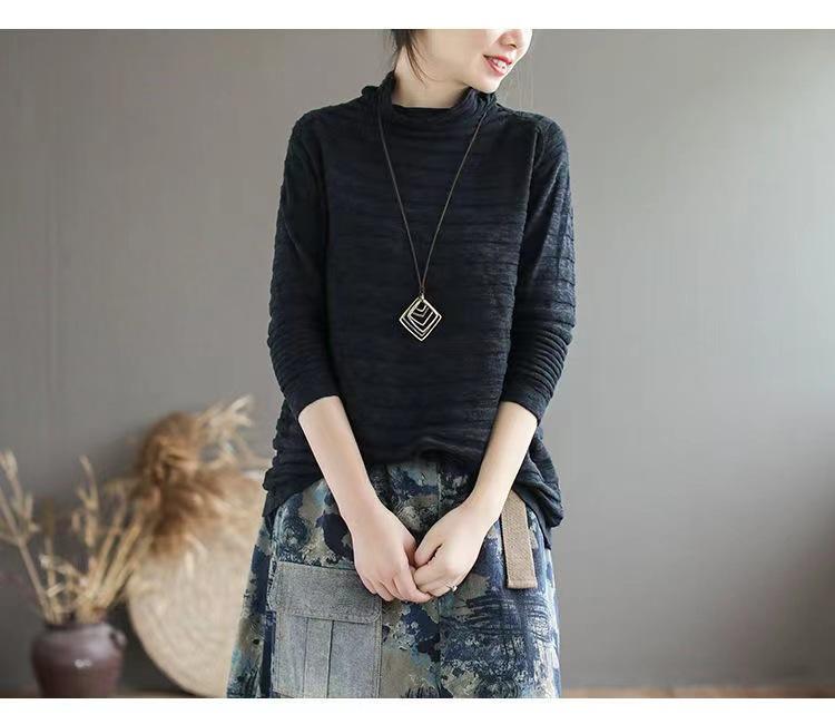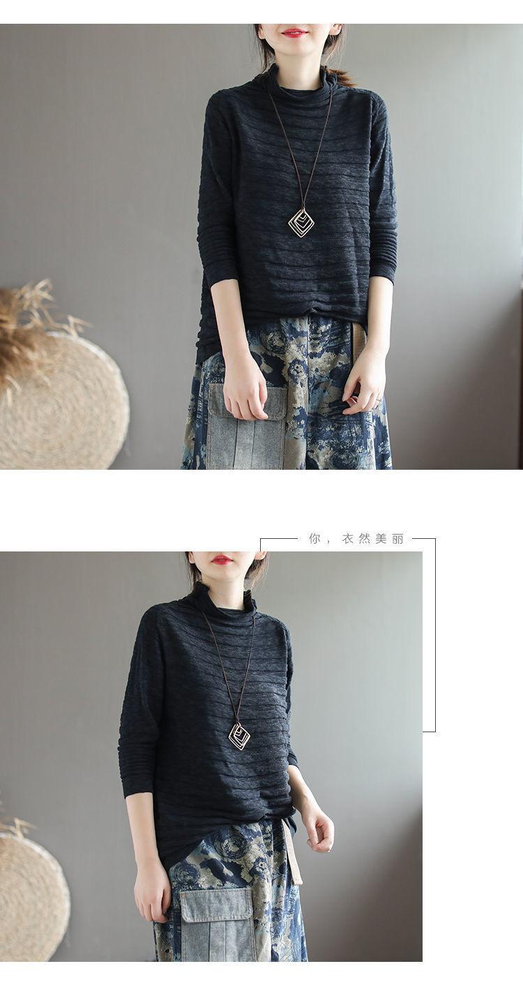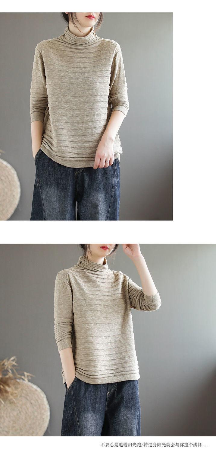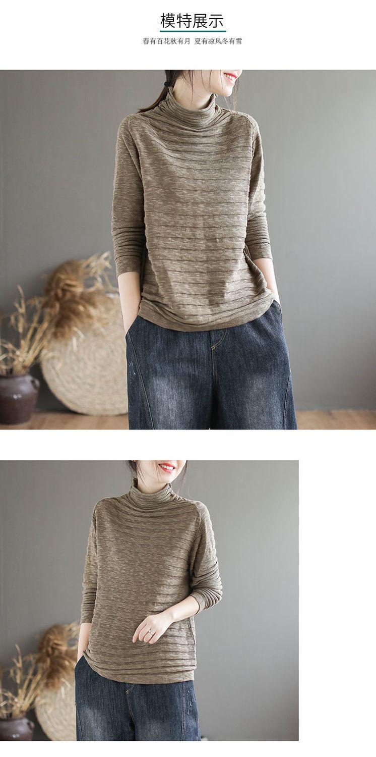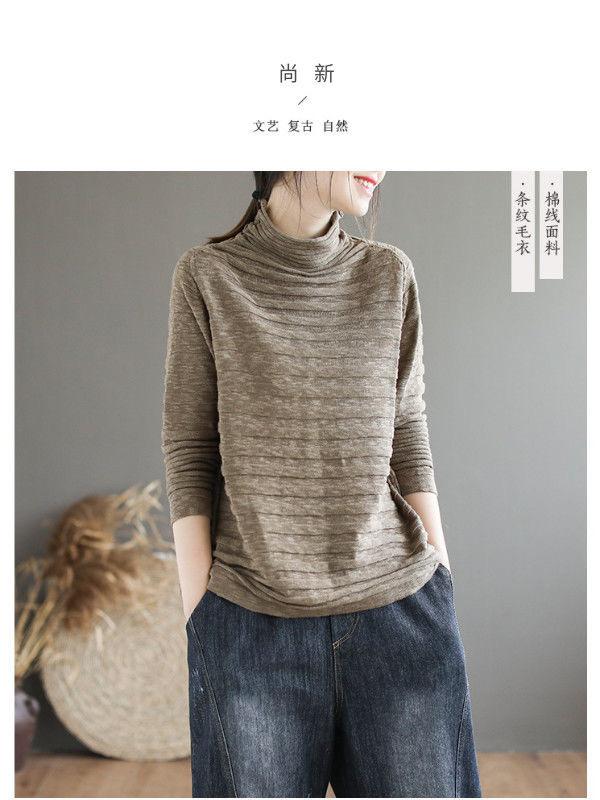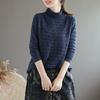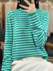Suéter casual de estilo coreano para otoño e invierno, jersey de rayas horizontales para mujer, camisa básica, top holgado que combina con todo.