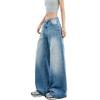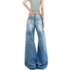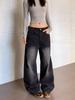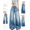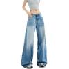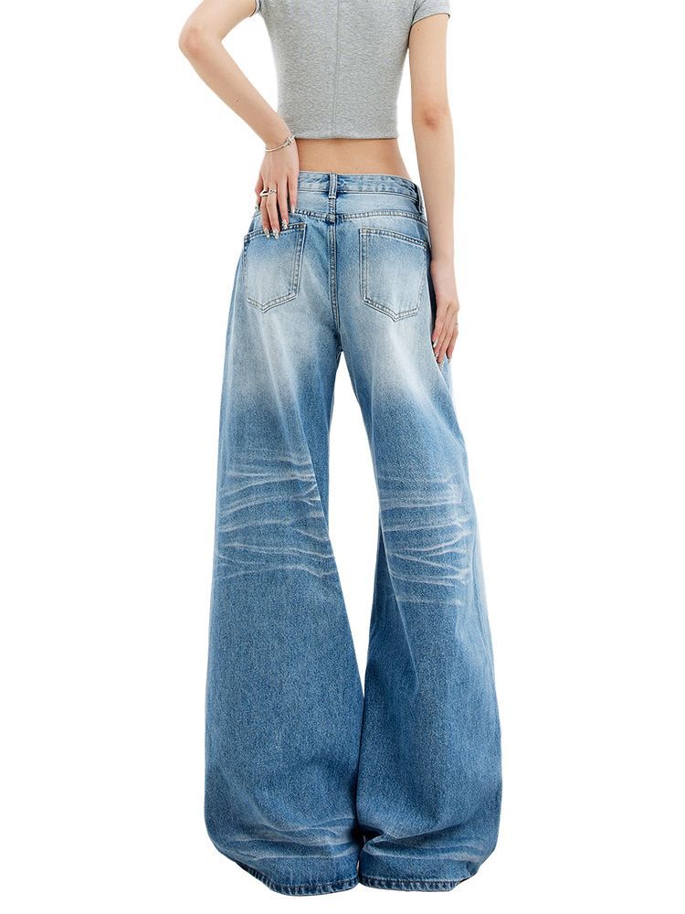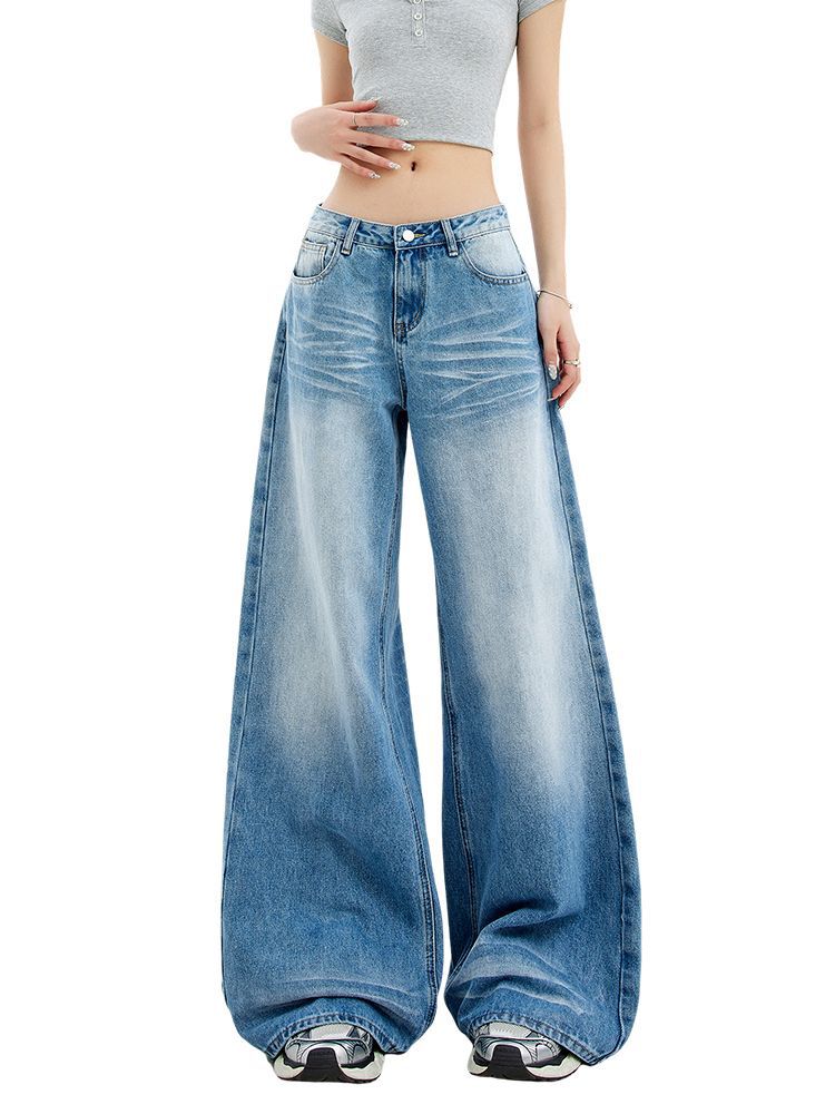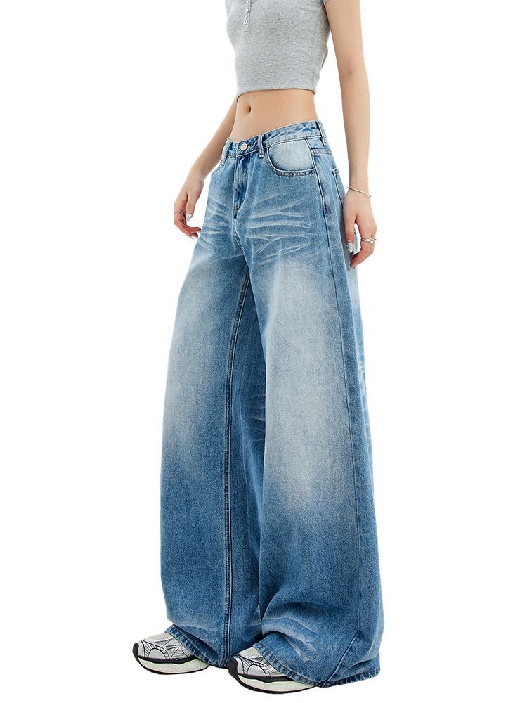 Pantalones vaqueros vintage de pierna ancha azul lavado para mujer, otoño, nuevo estilo americano, pantalones largos holgados y ajustados de estilo urbano.