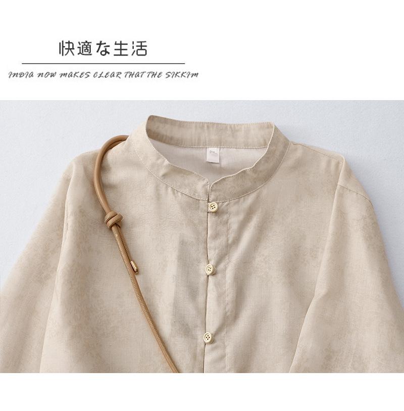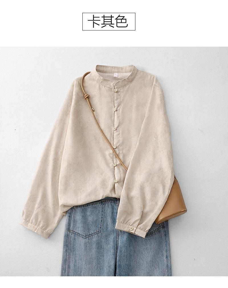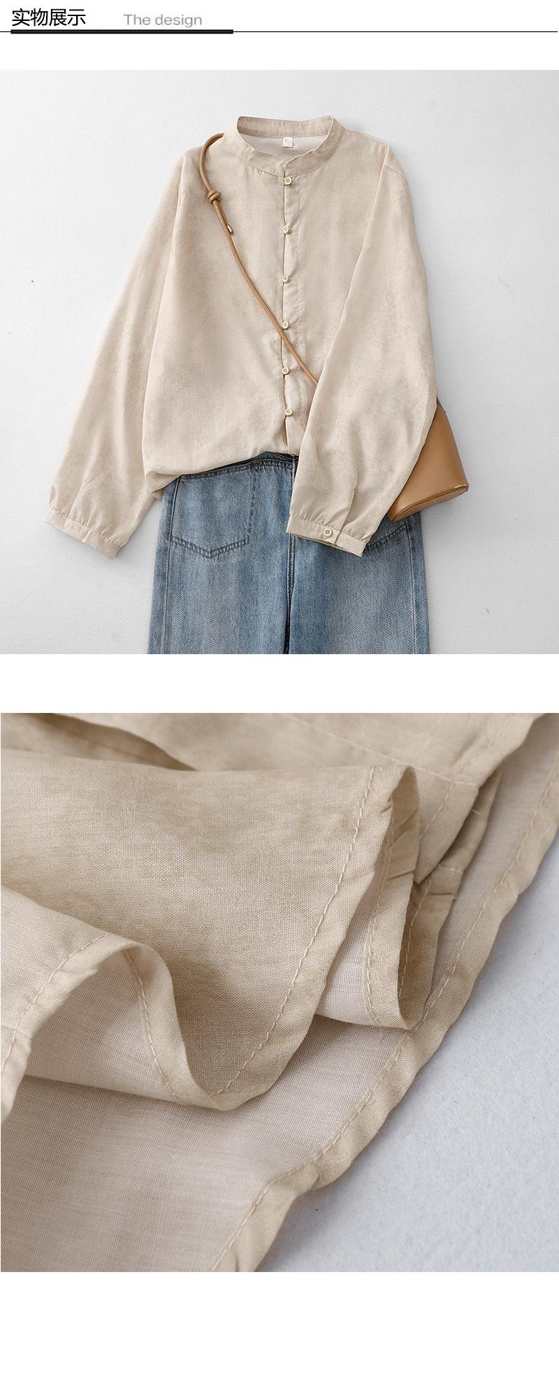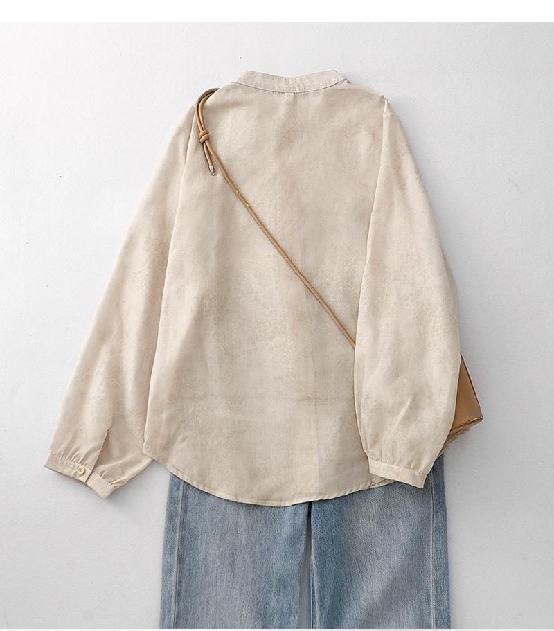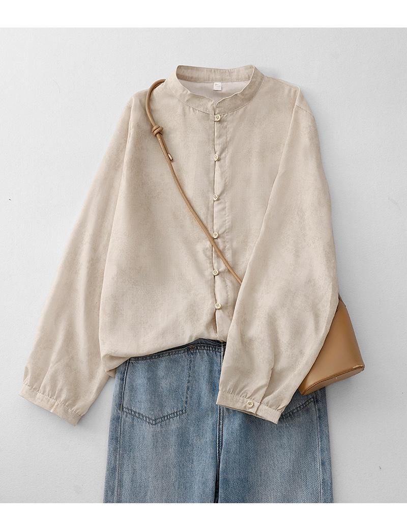 Camisa de cuello redondo de color liso, estilo vintage, holgada, informal, adelgazante, artística, combinable, para mujer, otoño 2024