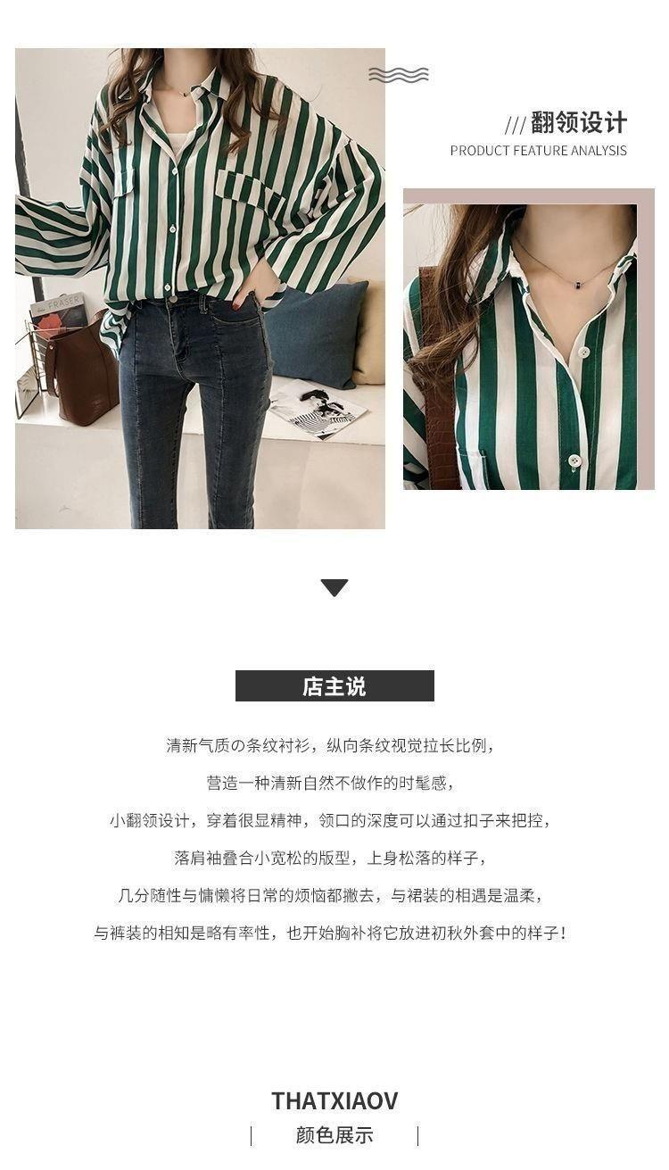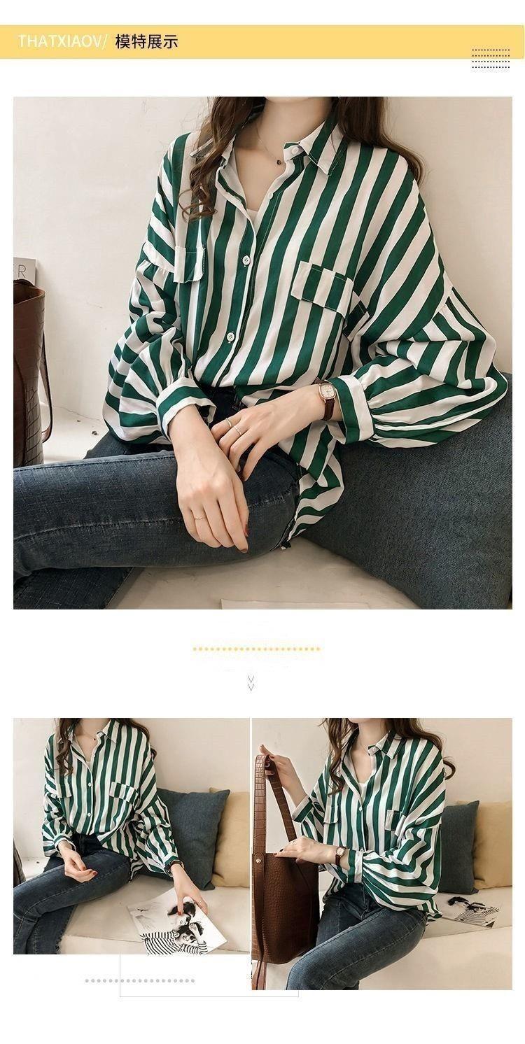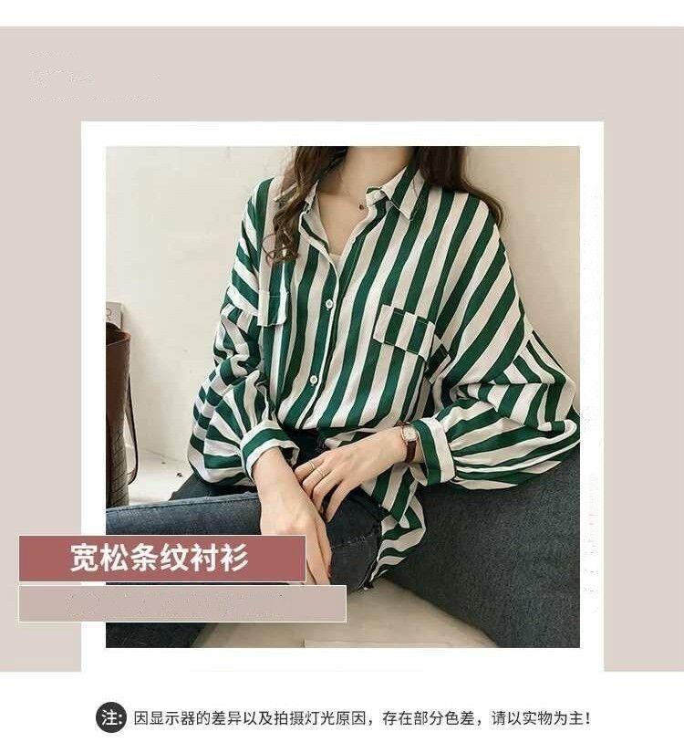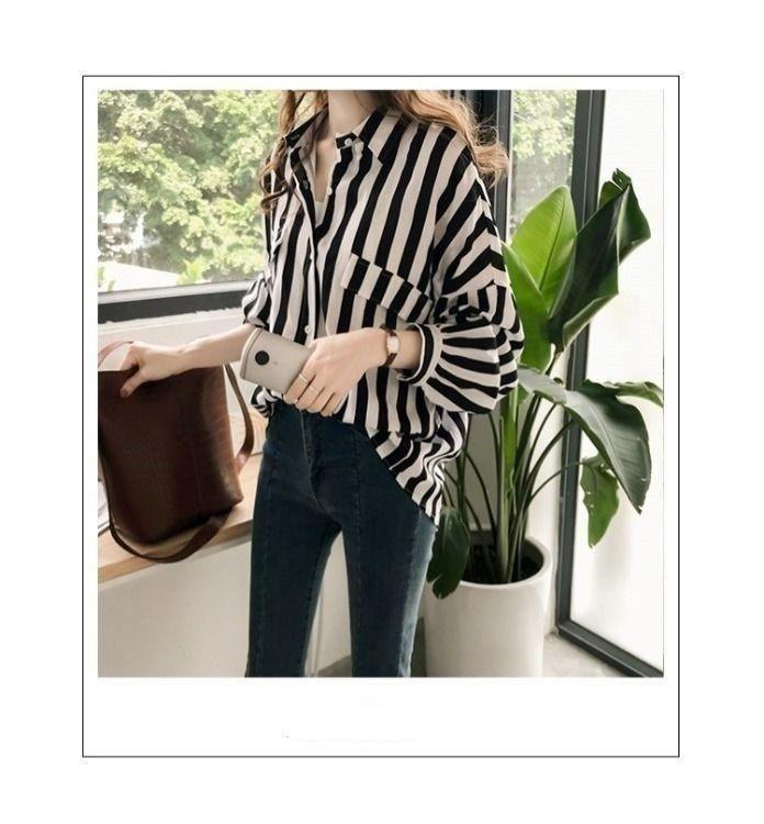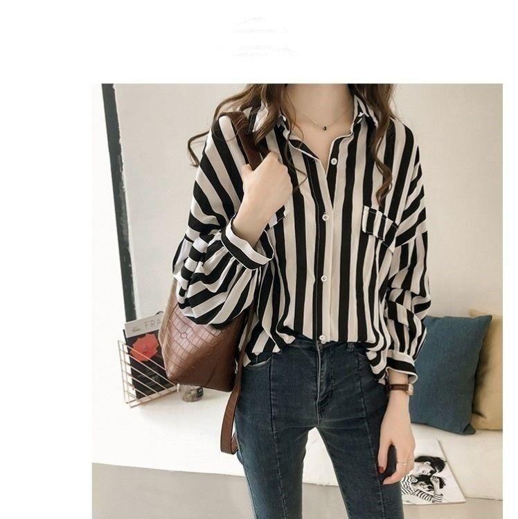 Compra Principios de Otoño Nuevo para Mujer 2024 Estilo Hong Kong Suelto Talla Grande Camisa Rayada Top de Manga Larga para Mujer Camisa Abrigo Fino al por mayor en Joom.pro