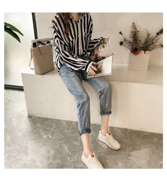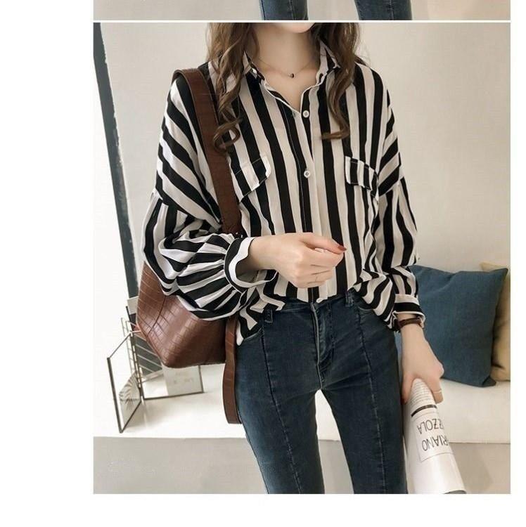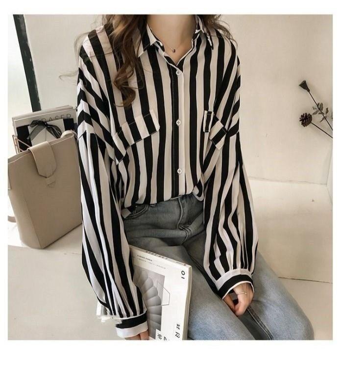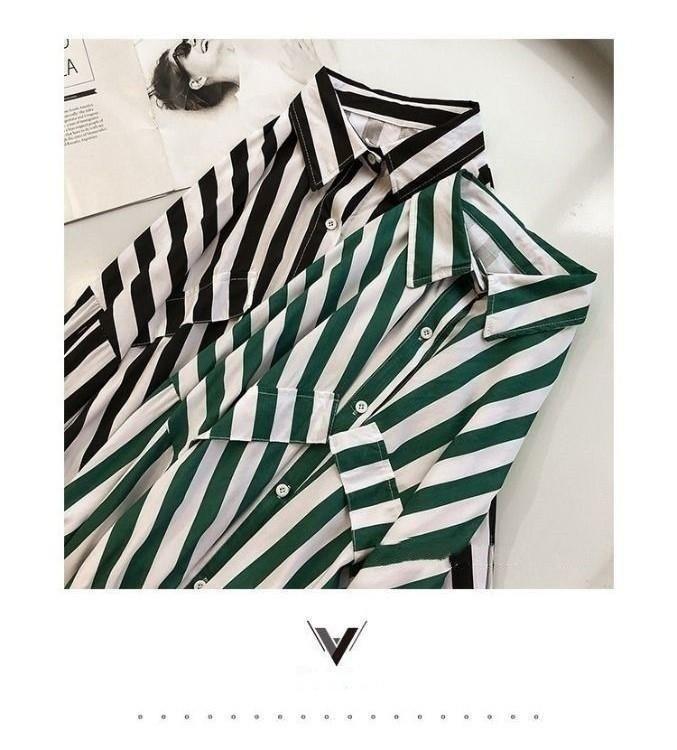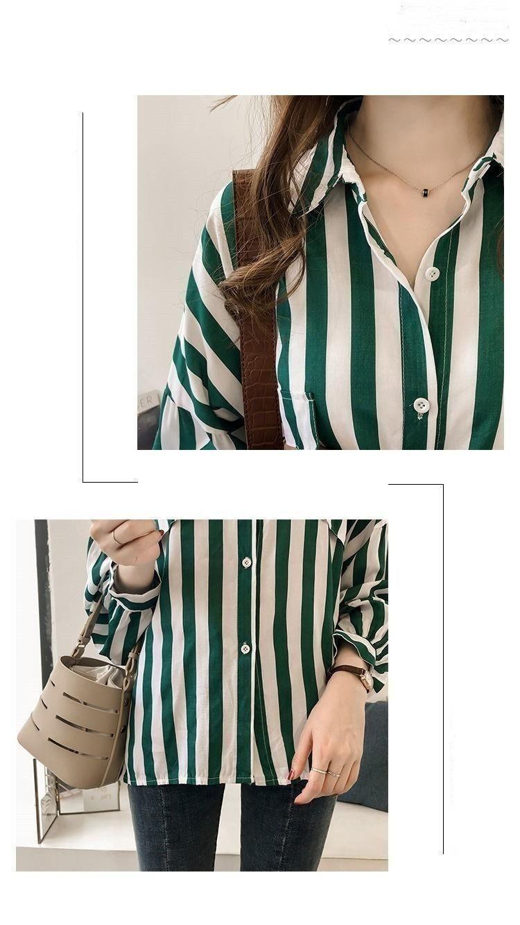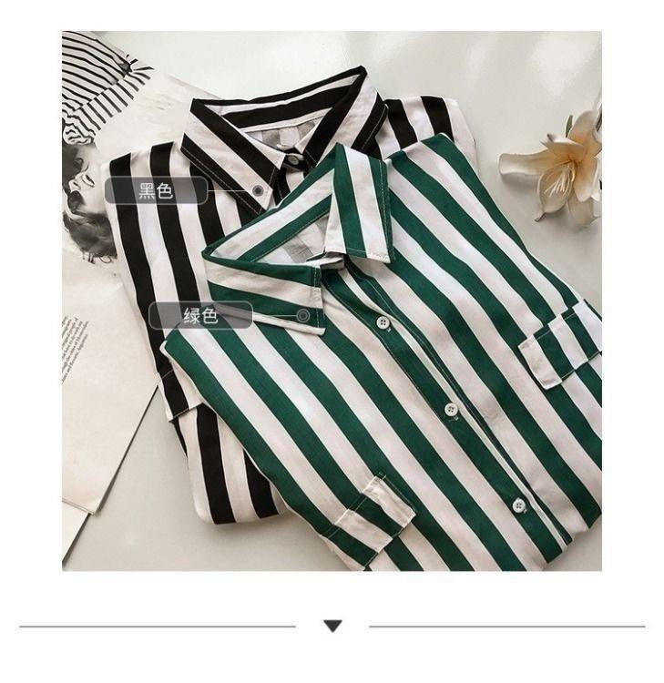 Compra Principios de Otoño Nuevo para Mujer 2024 Estilo Hong Kong Suelto Talla Grande Camisa Rayada Top de Manga Larga para Mujer Camisa Abrigo Fino al por mayor en Joom.pro