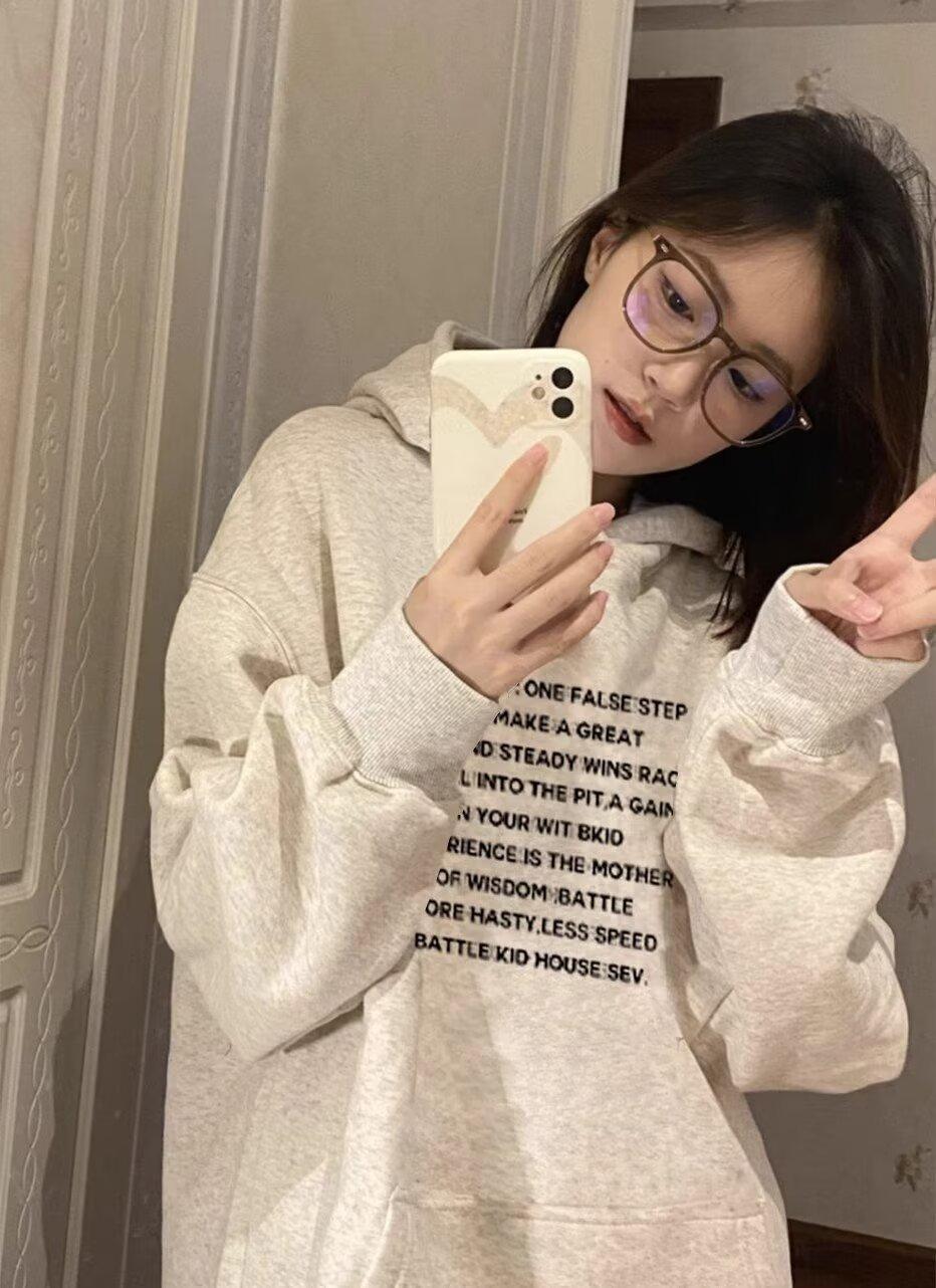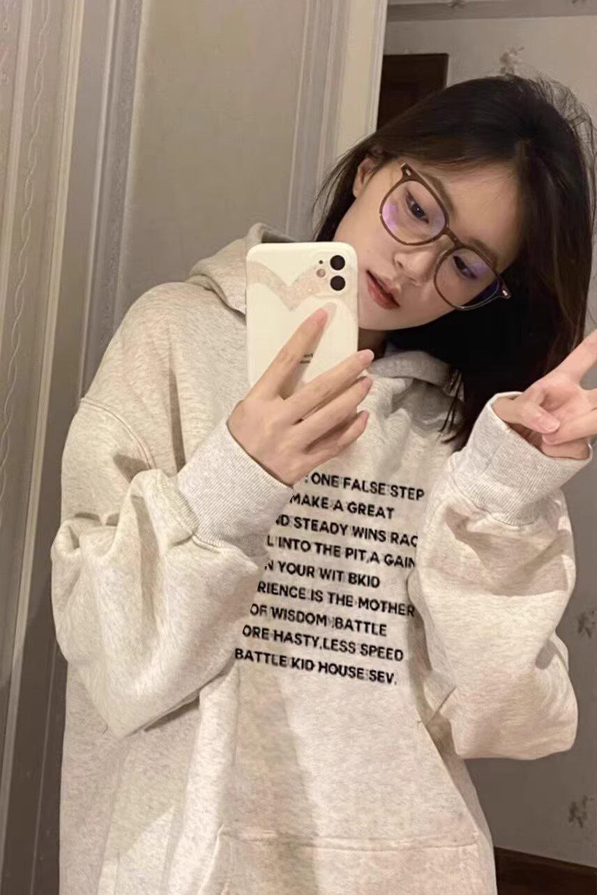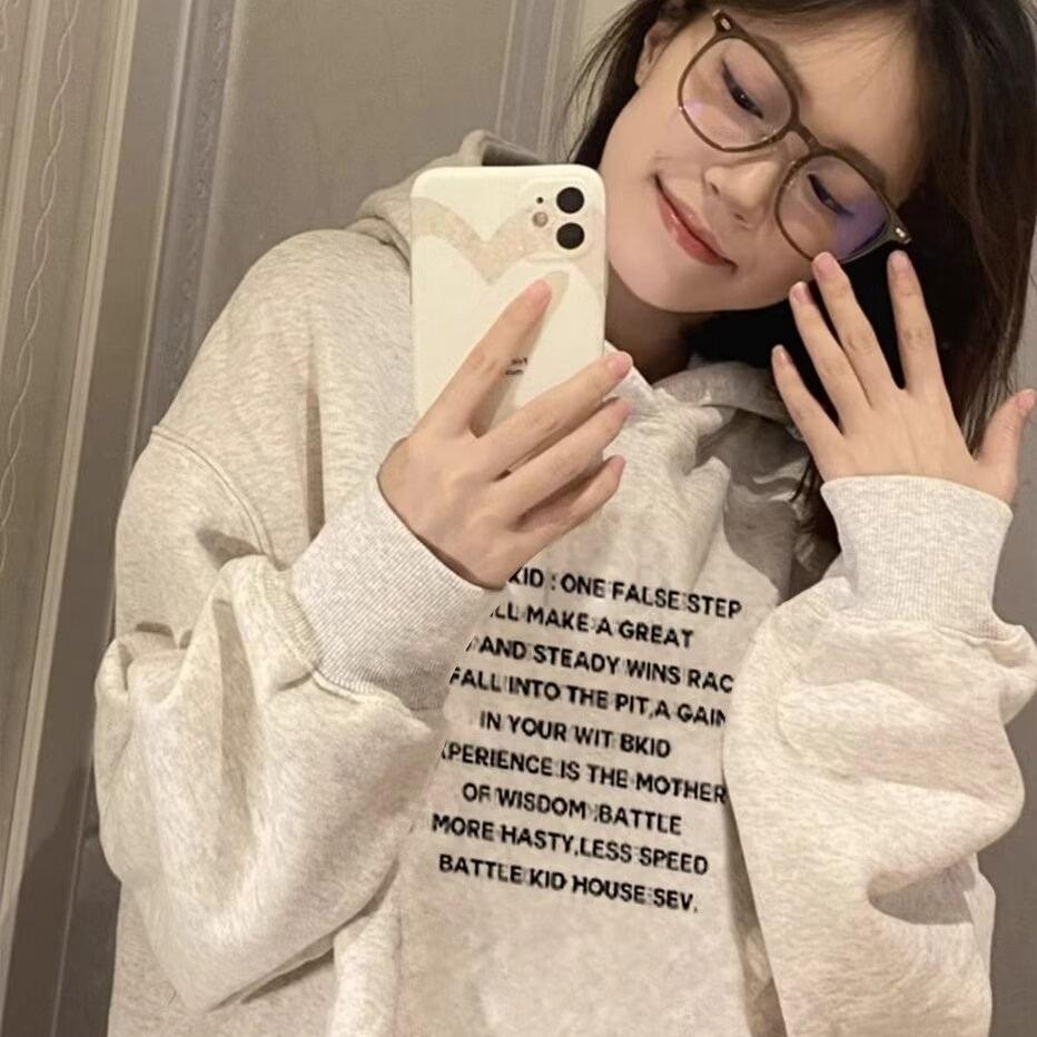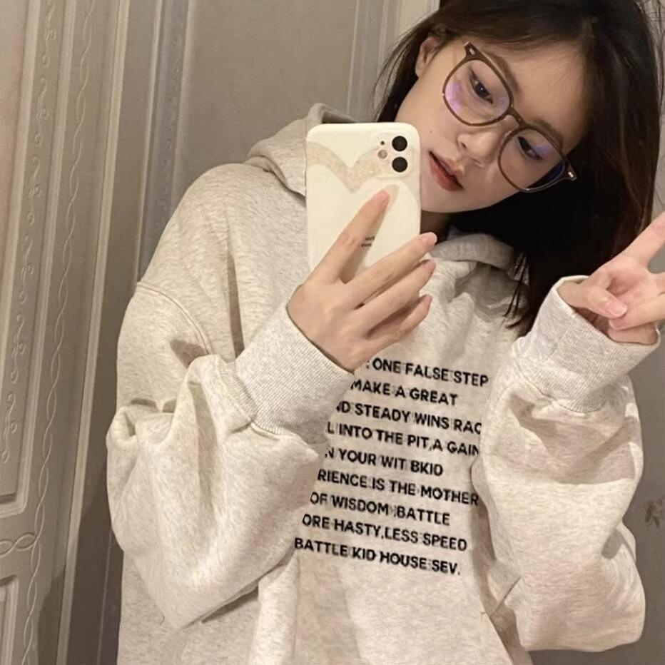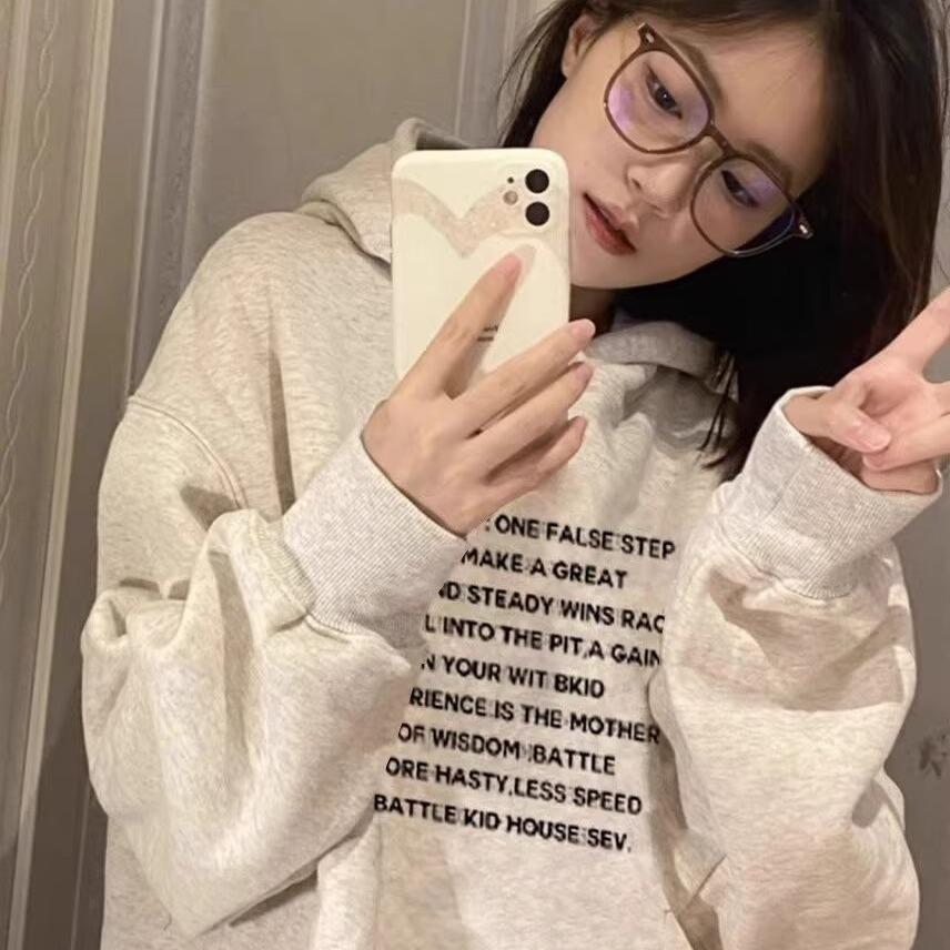 Sudadera con capucha y letras para mujer, estilo holgado y relajado, informal, combinable con todo, de manga larga, otoño 2024