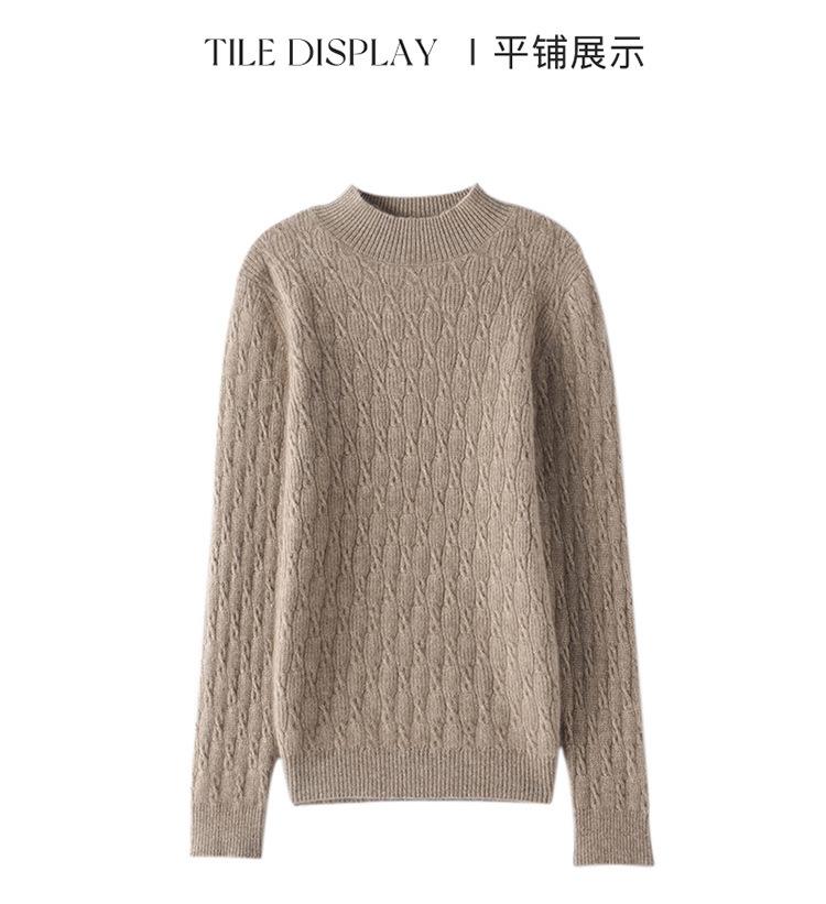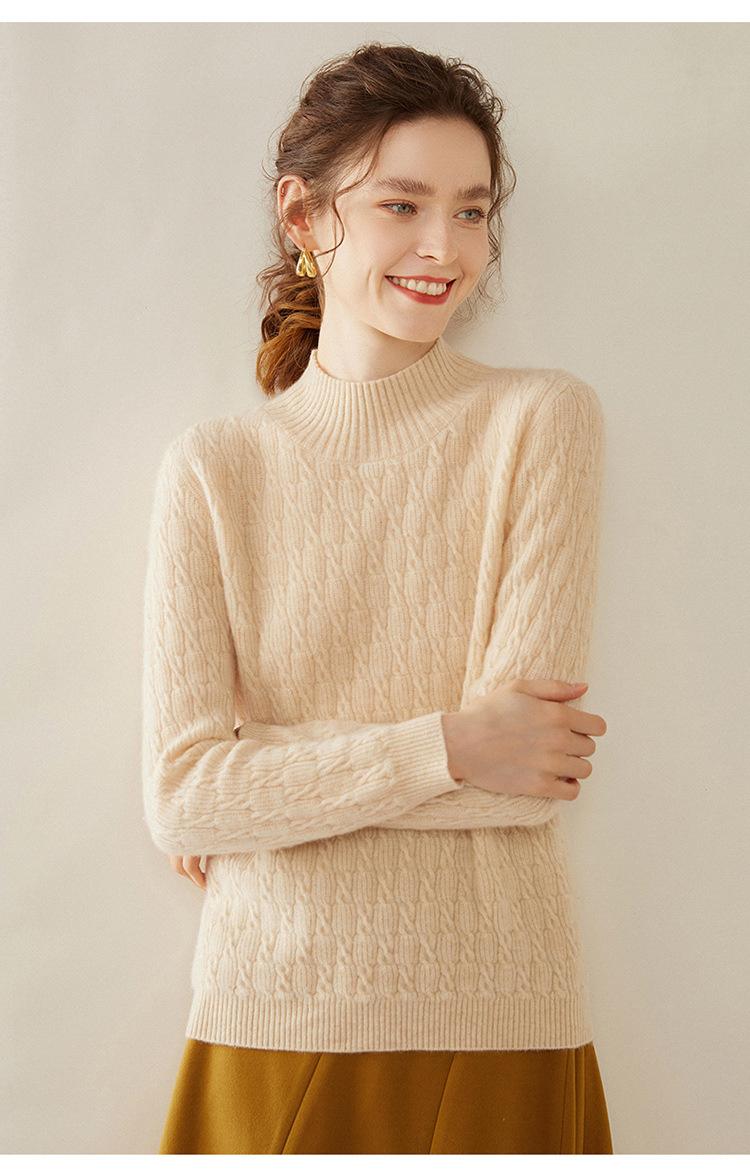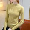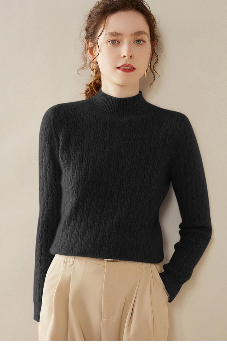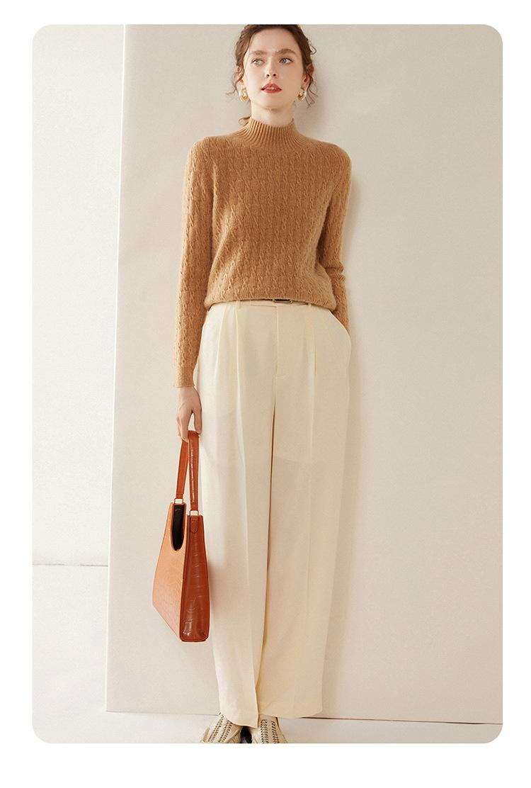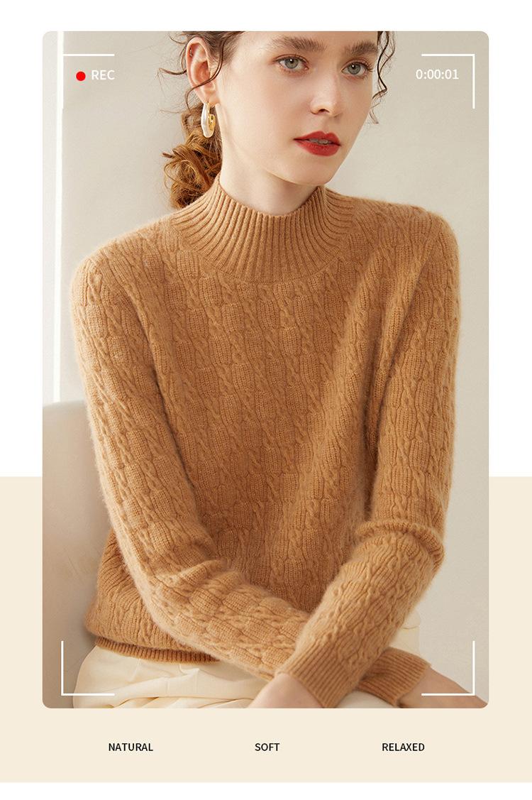 Suéter de cachemira trenzado para mujer, otoño e invierno, novedad de 2024, camisa básica de cuello medio alto, suéter de manga larga corta estilo coreano