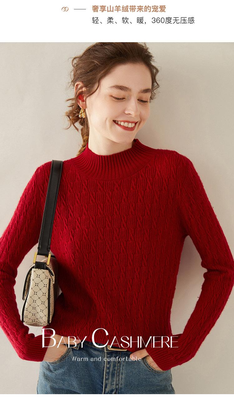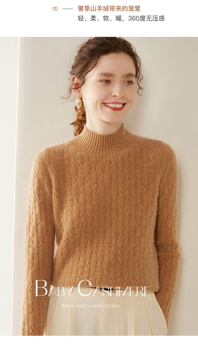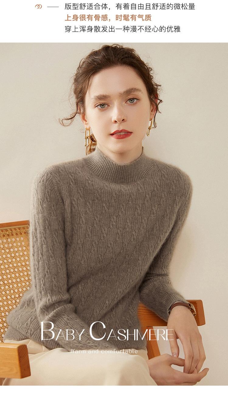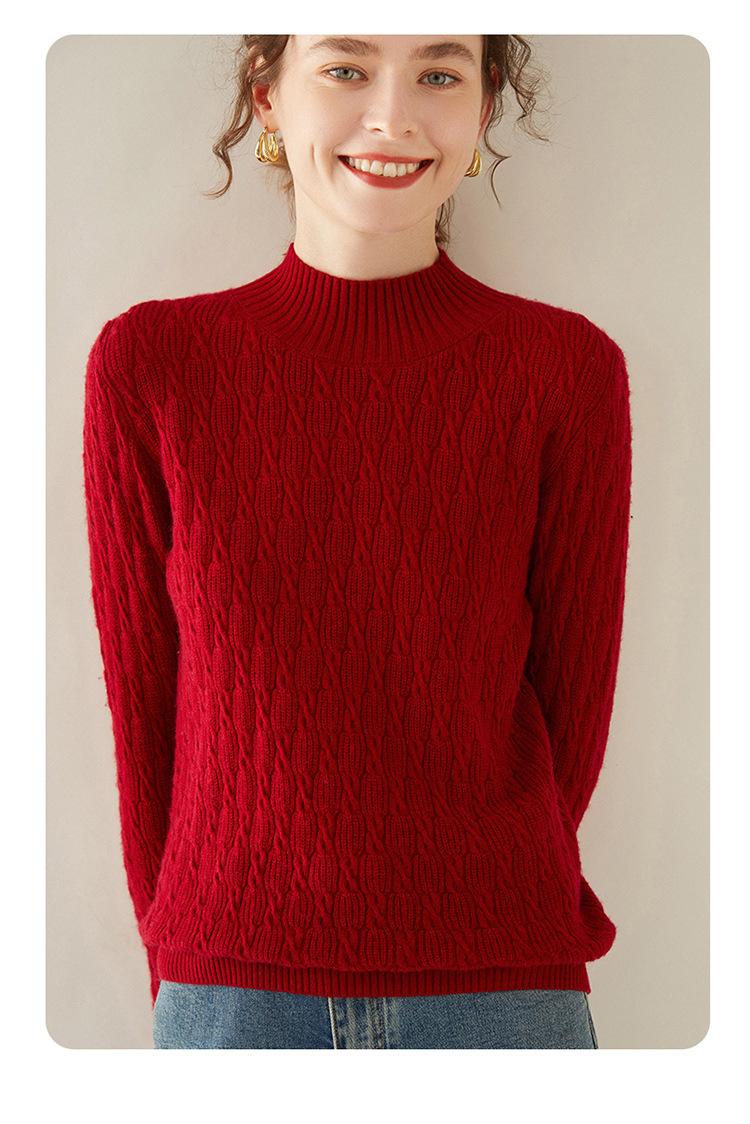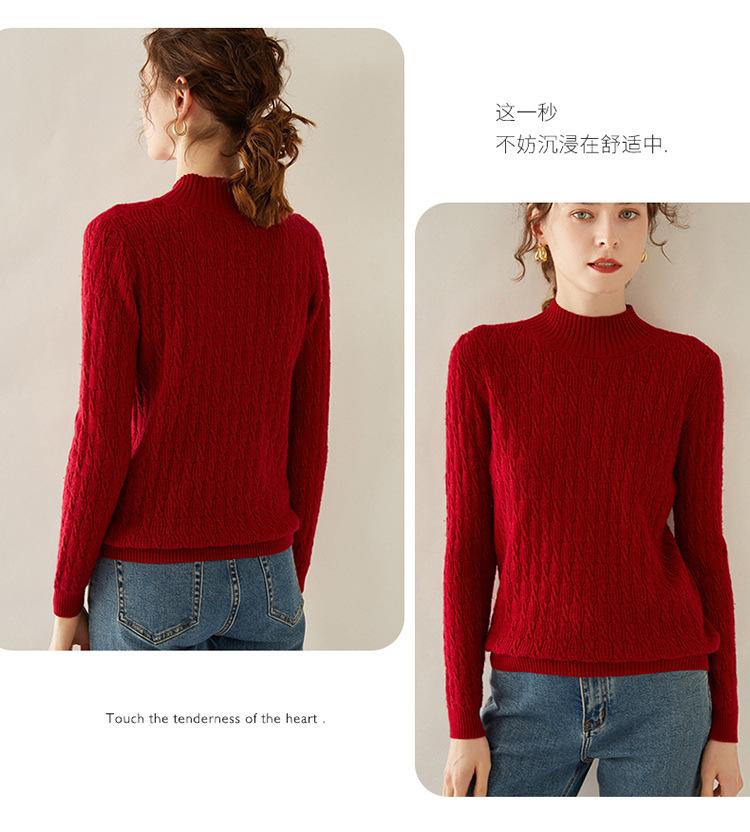 Suéter de cachemira trenzado para mujer, otoño e invierno, novedad de 2024, camisa básica de cuello medio alto, suéter de manga larga corta estilo coreano