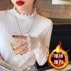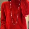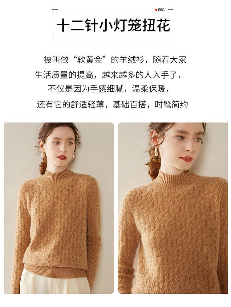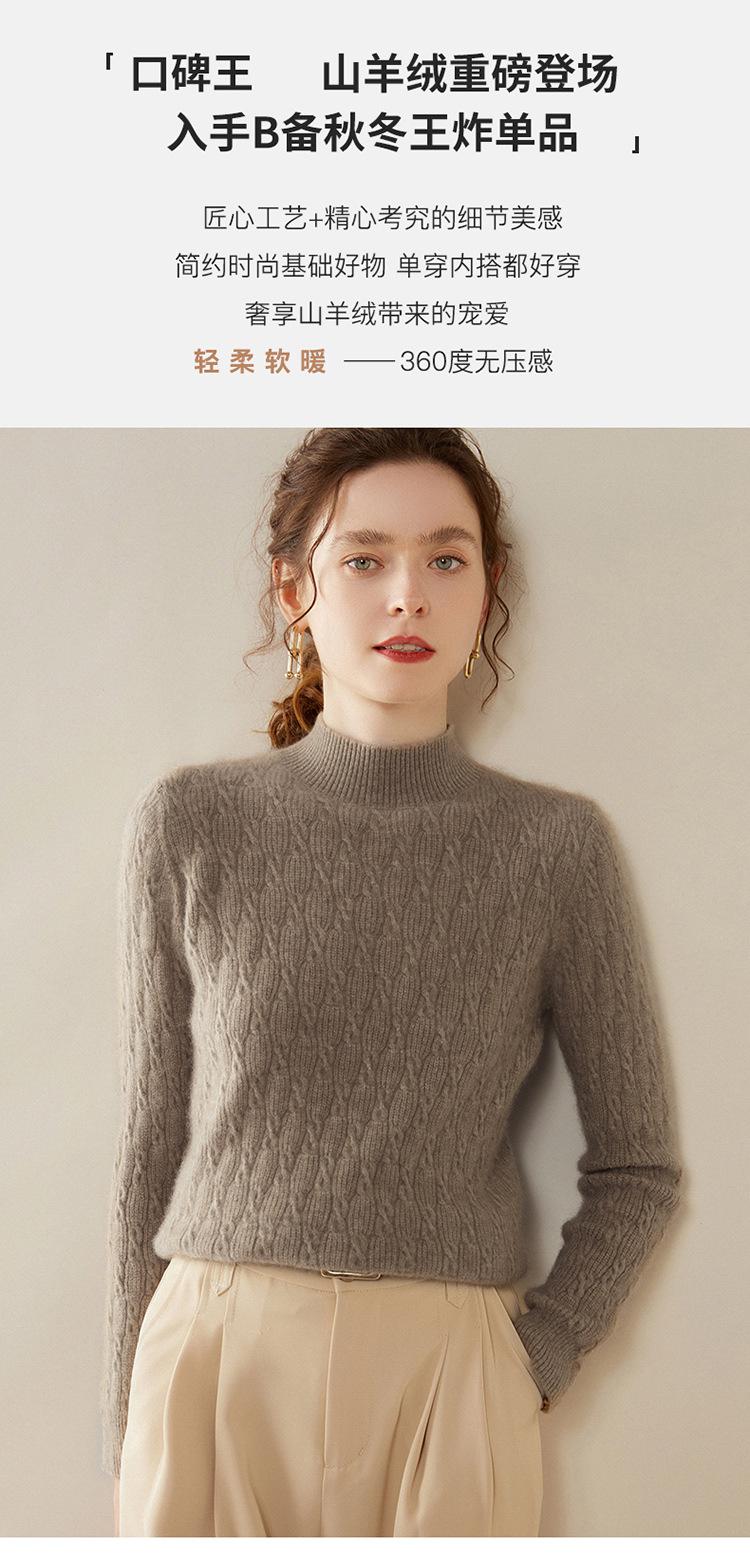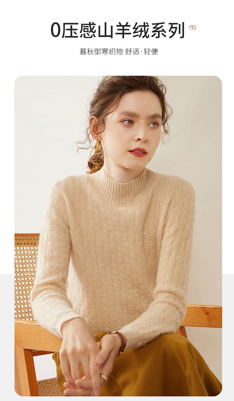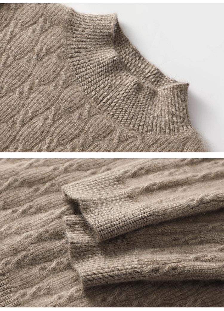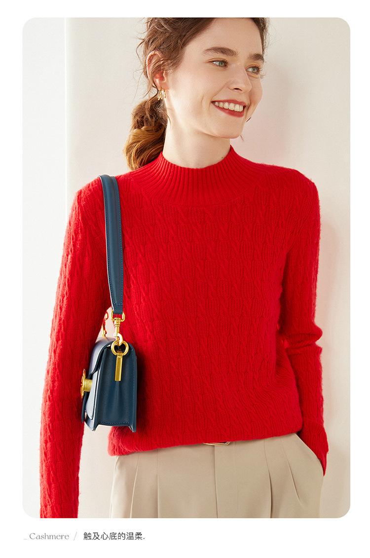 Suéter de cachemira trenzado para mujer, otoño e invierno, novedad de 2024, camisa básica de cuello medio alto, suéter de manga larga corta estilo coreano