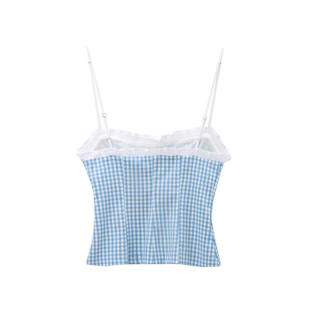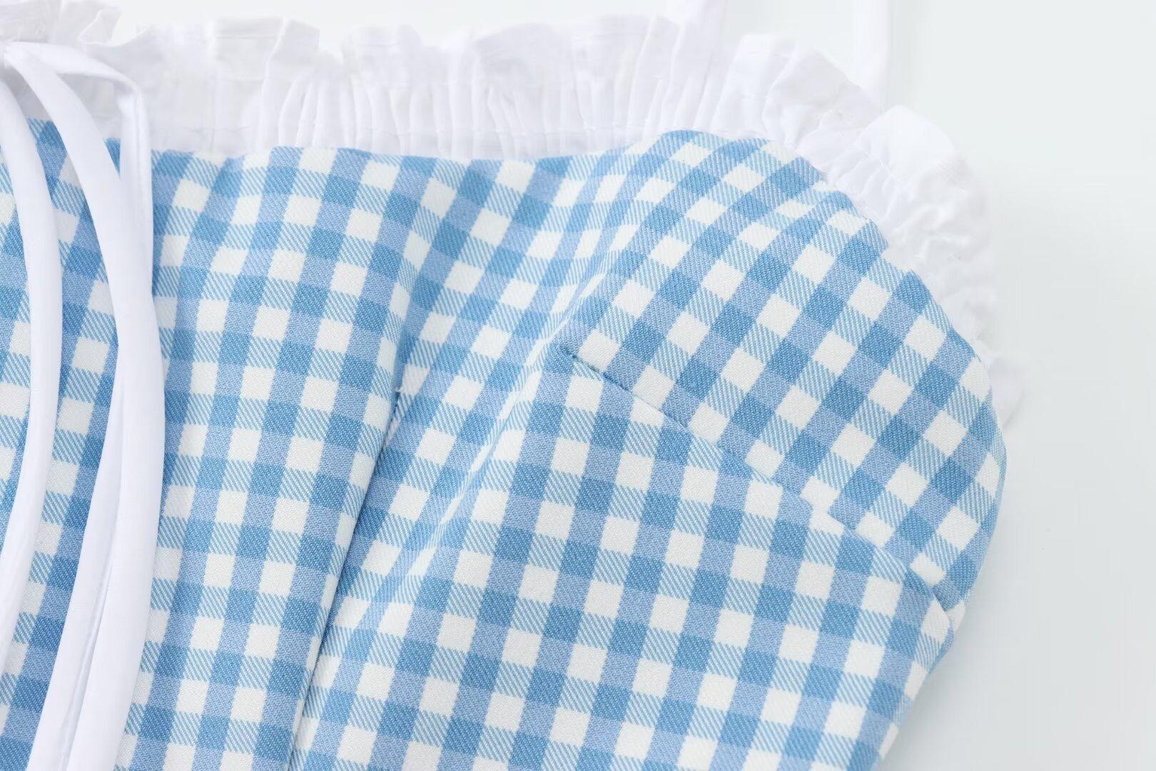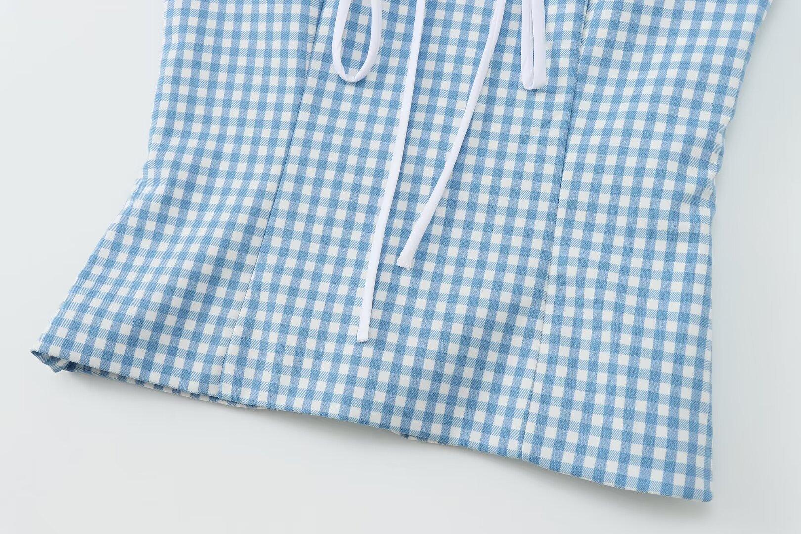 Blusa a cuadros para mujer de estilo europeo y americano de verano 2024, nueva, de comercio exterior transfronterizo de Amazon, para mujer europea y americana