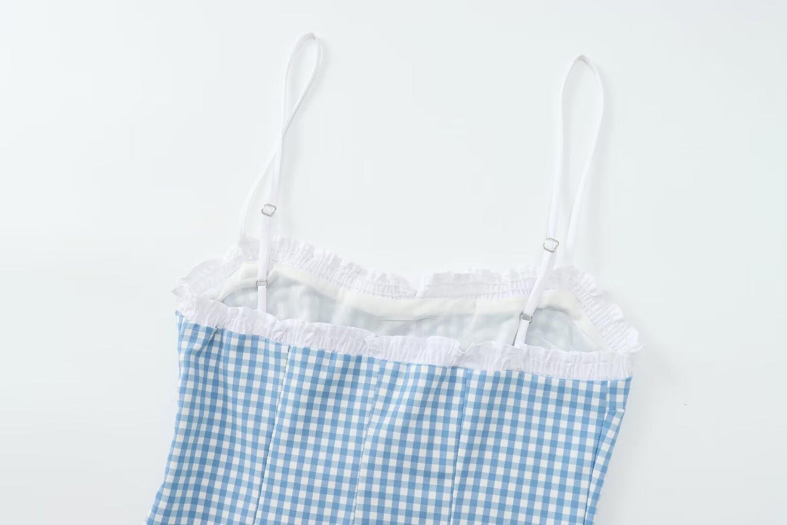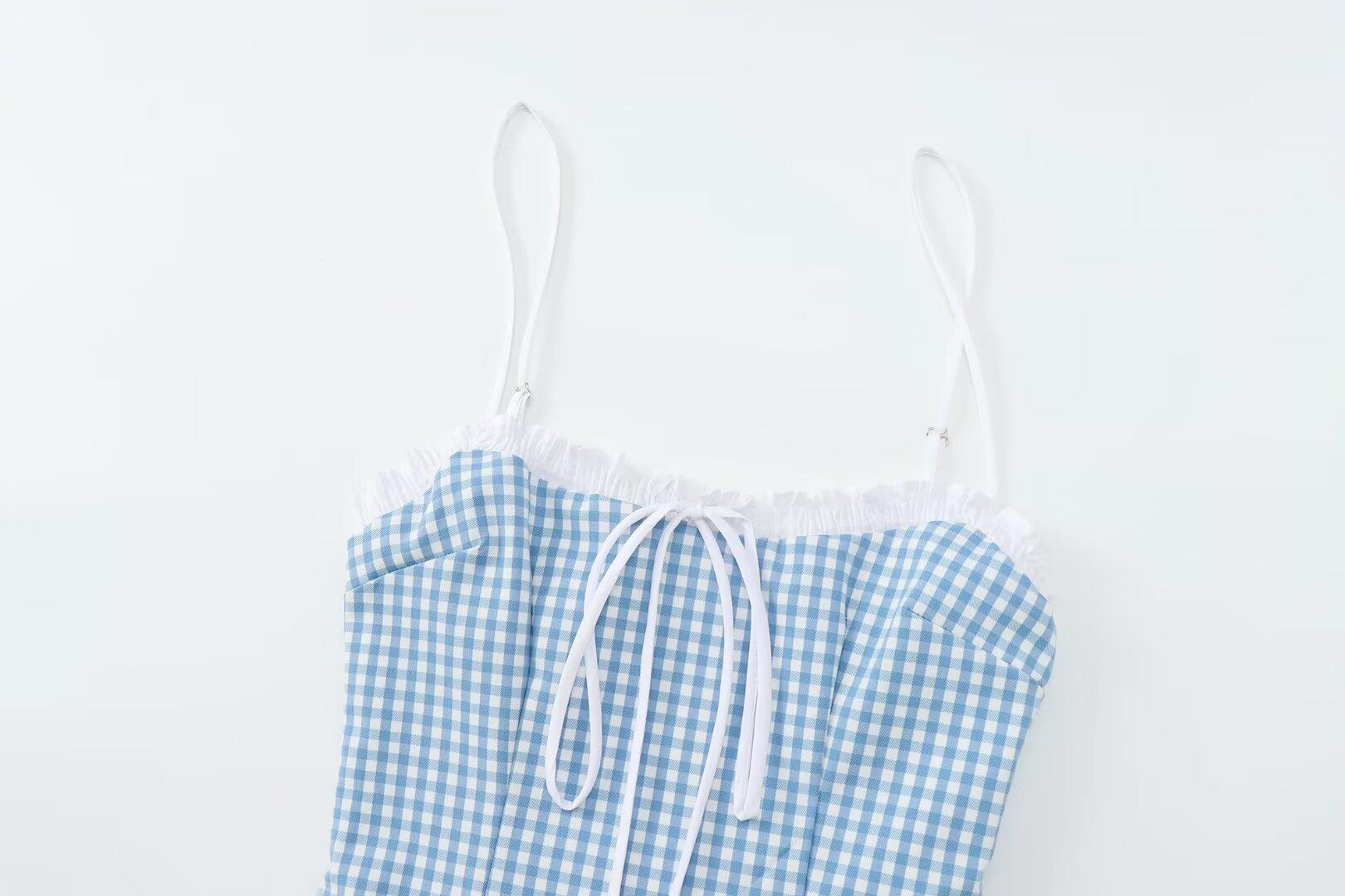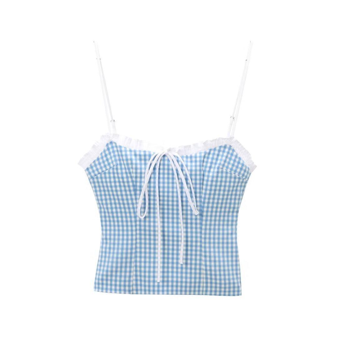 Blusa a cuadros para mujer de estilo europeo y americano de verano 2024, nueva, de comercio exterior transfronterizo de Amazon, para mujer europea y americana