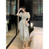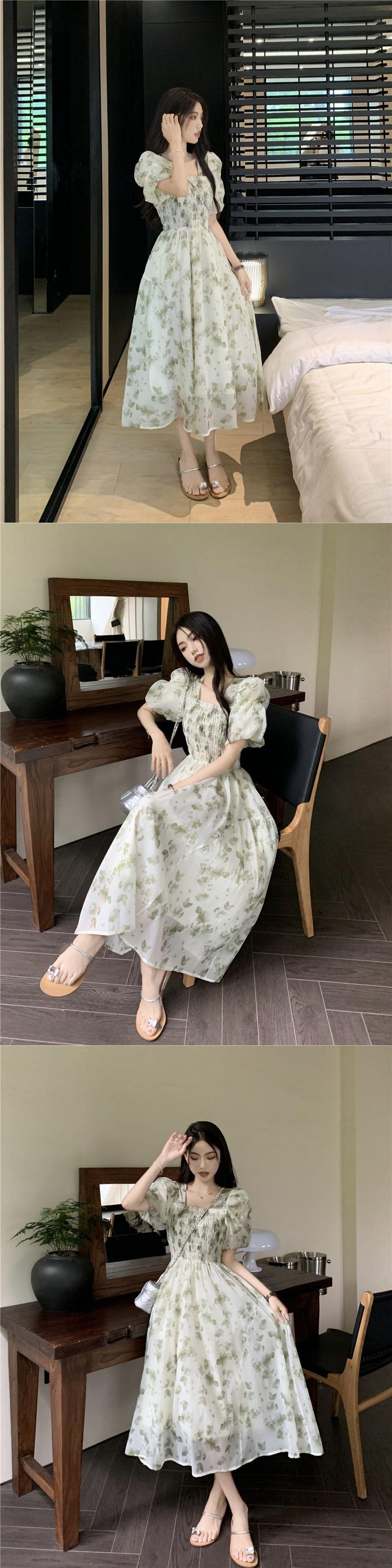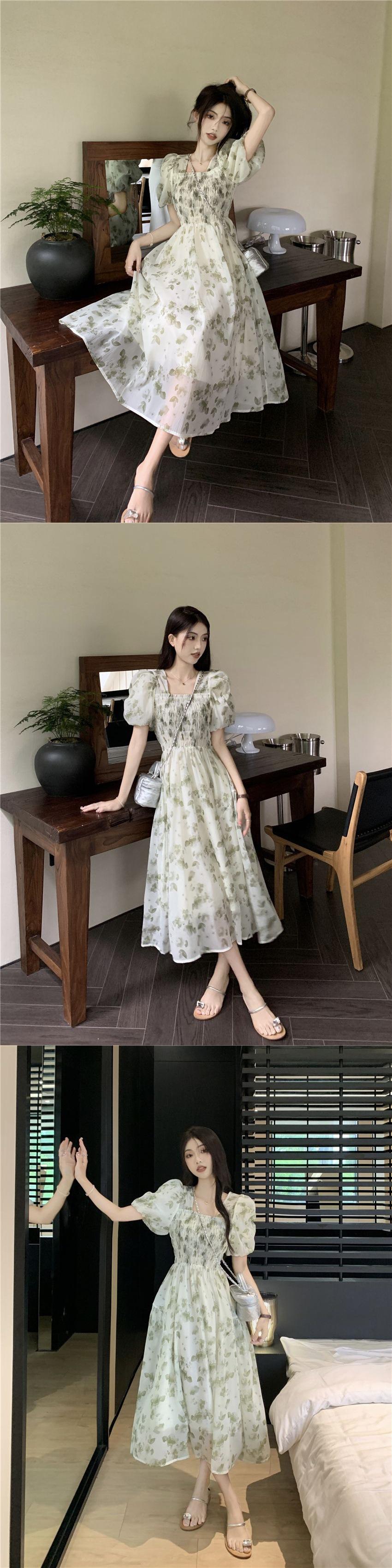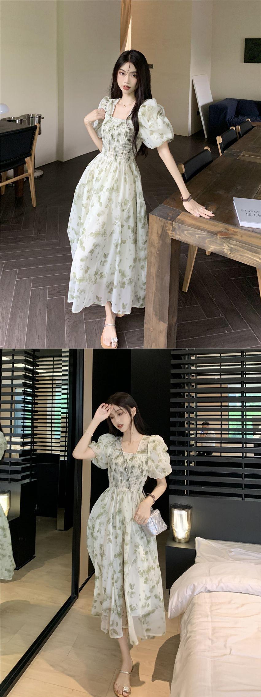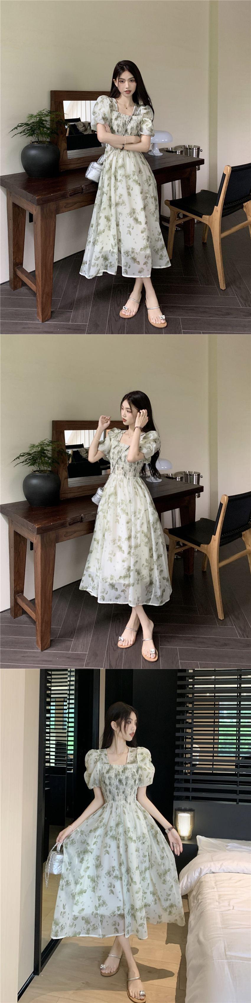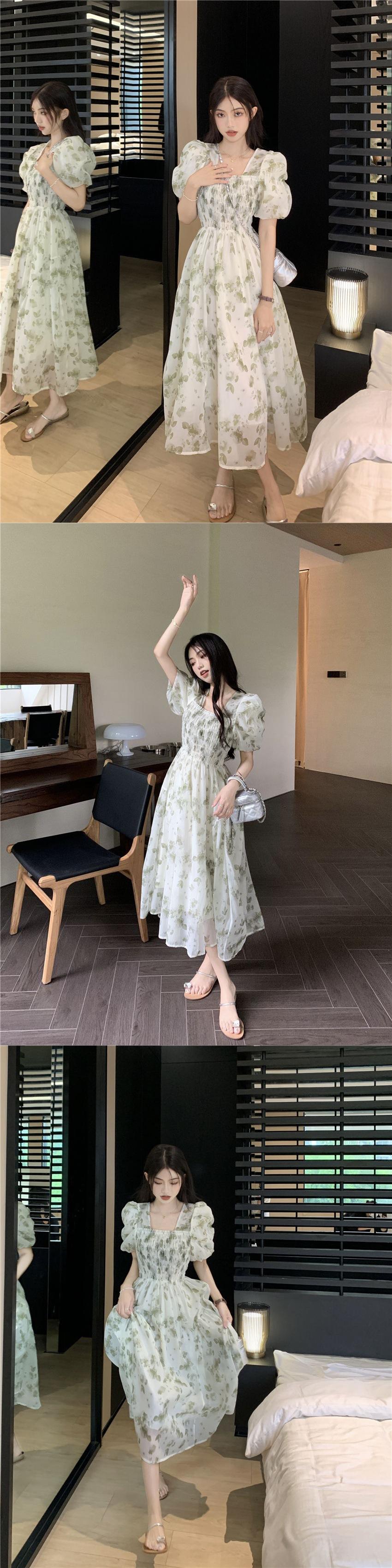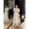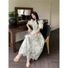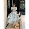 Vestido floral de gasa estilo pastoral francés para mujer, verano 2023, nuevo, cuello cuadrado, falda de cintura estrecha y largo medio
