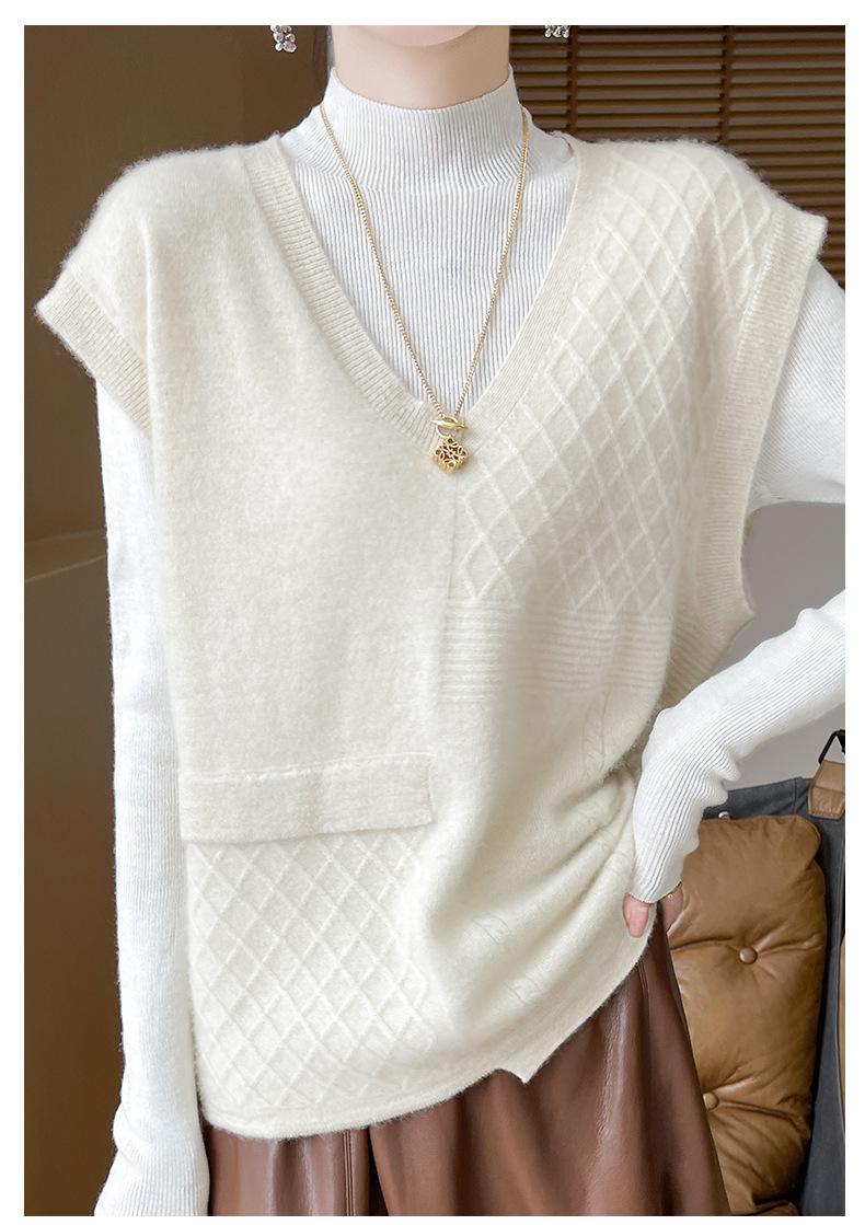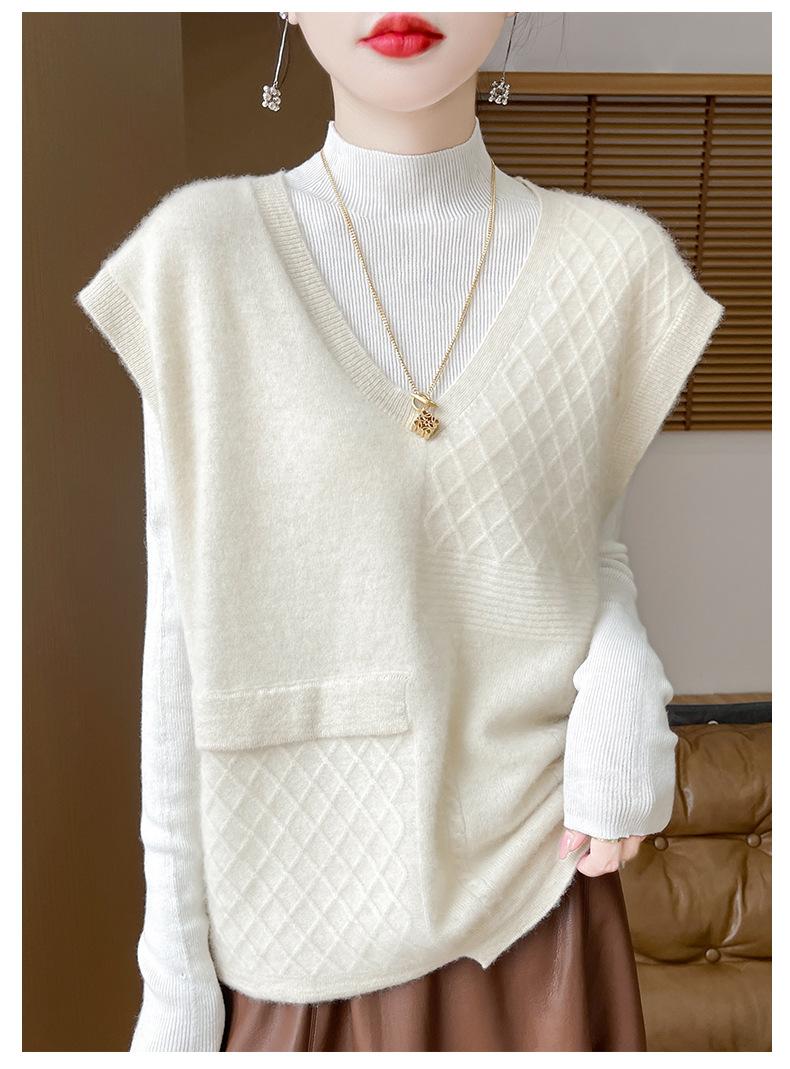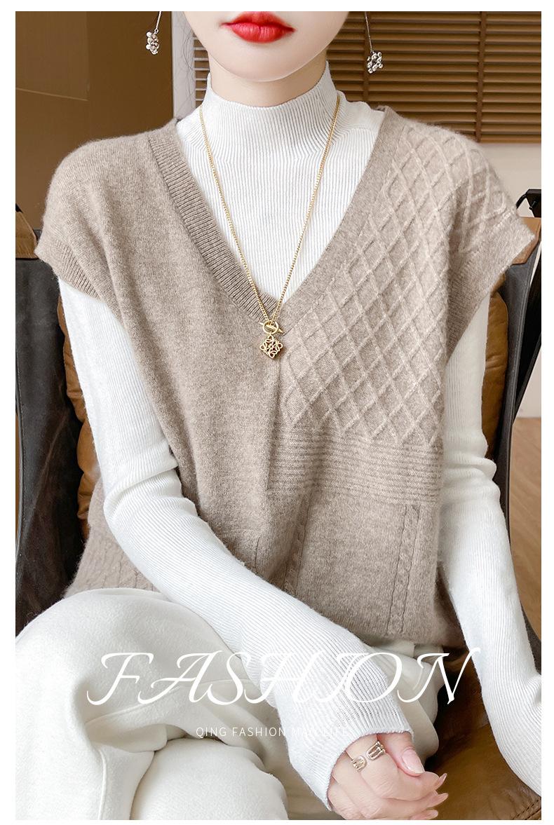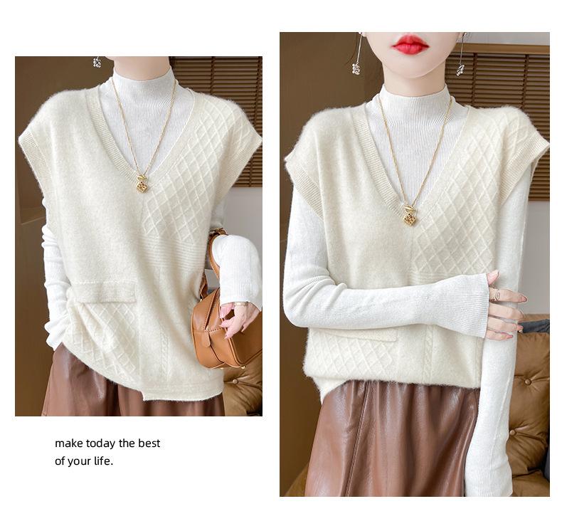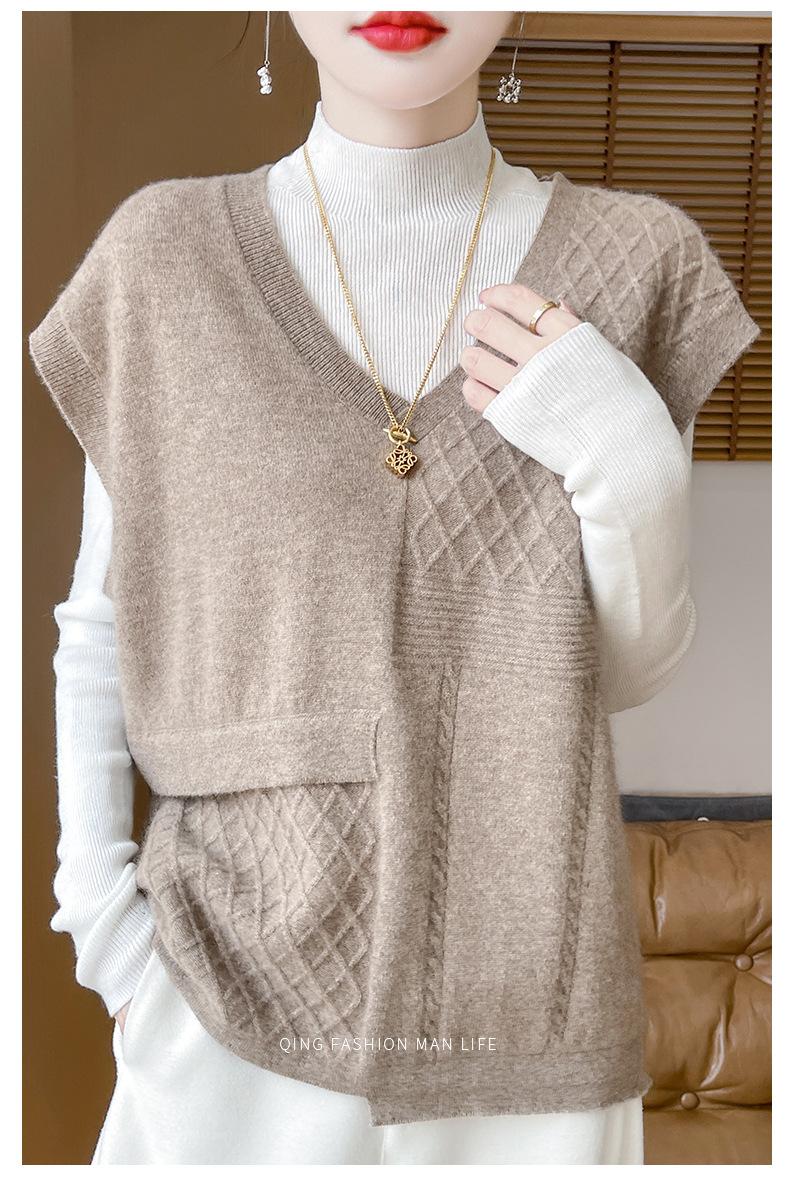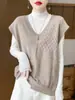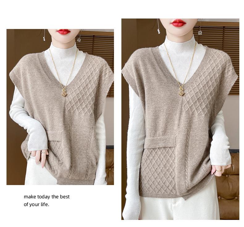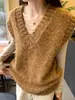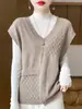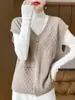 Chaleco de cachemira 100% puro y grueso para mujer, suéter tipo camisa de punto trenzado, holgado y combinable con todo.