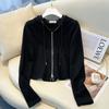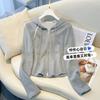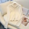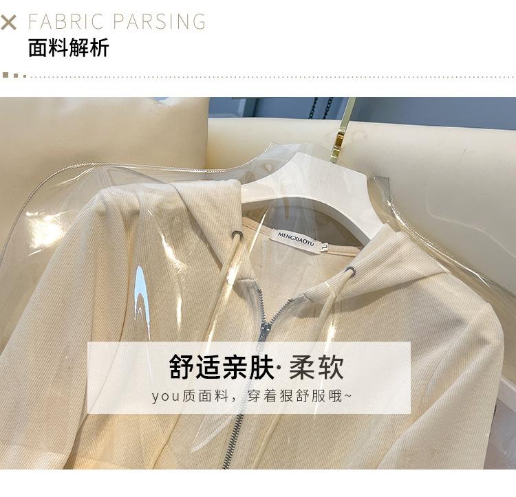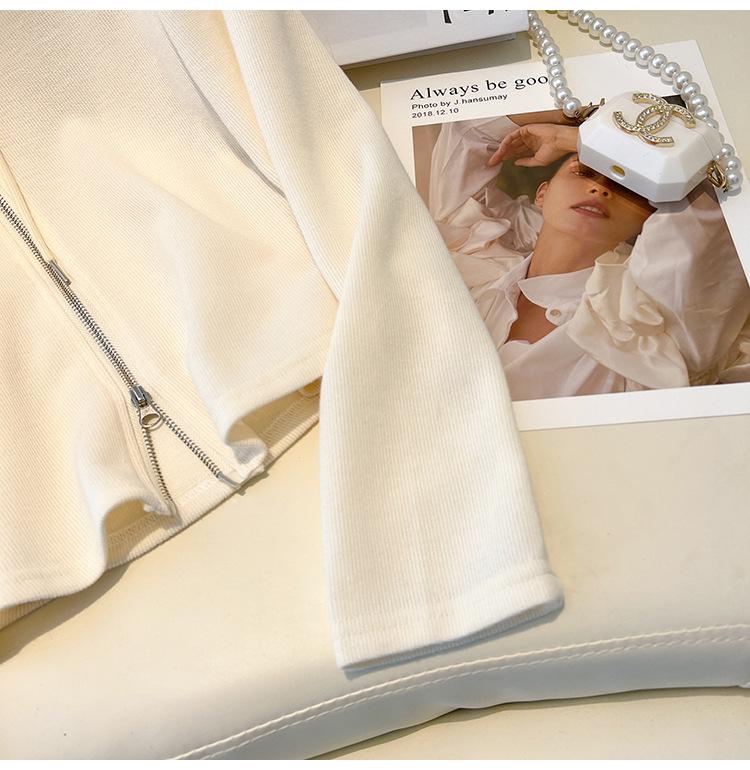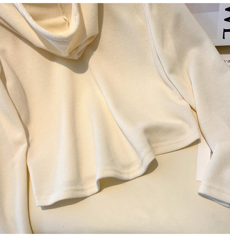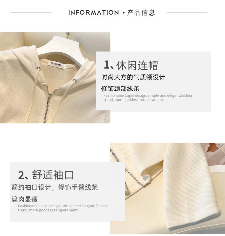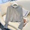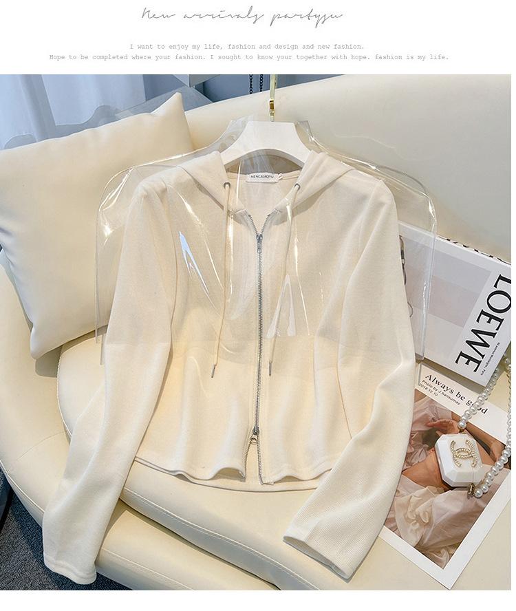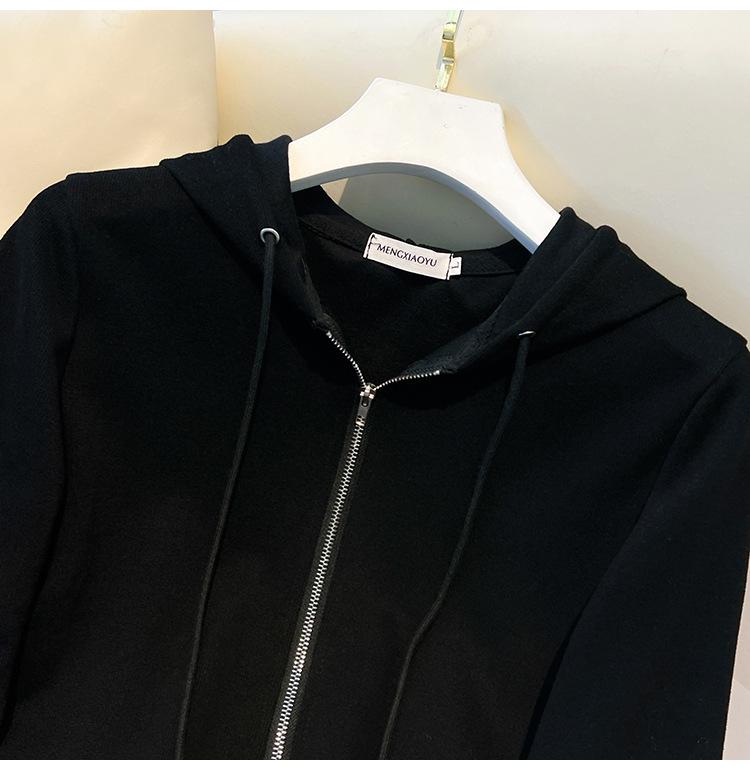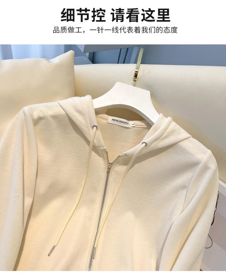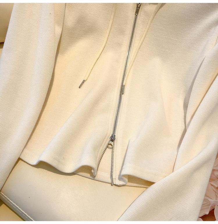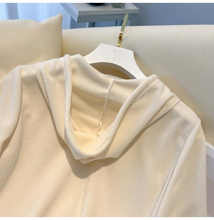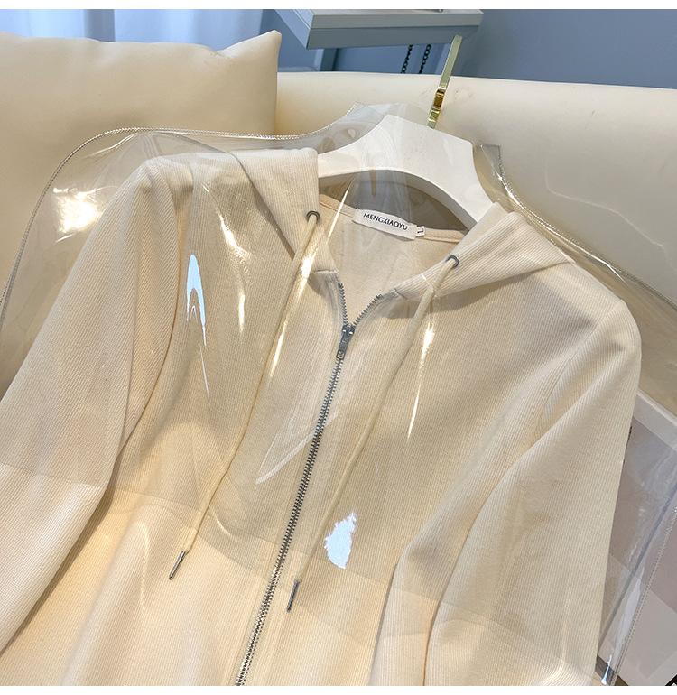 Albaricoque Suéter con Capucha de Doble Cremallera para Mujer Otoño Corto Casual Combinable Adelgazante Pequeño Cárdigan Chaqueta de Manga Larga
