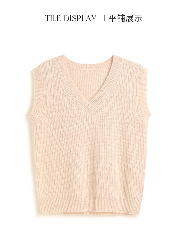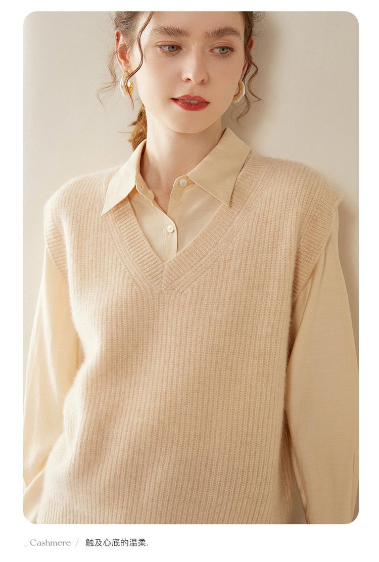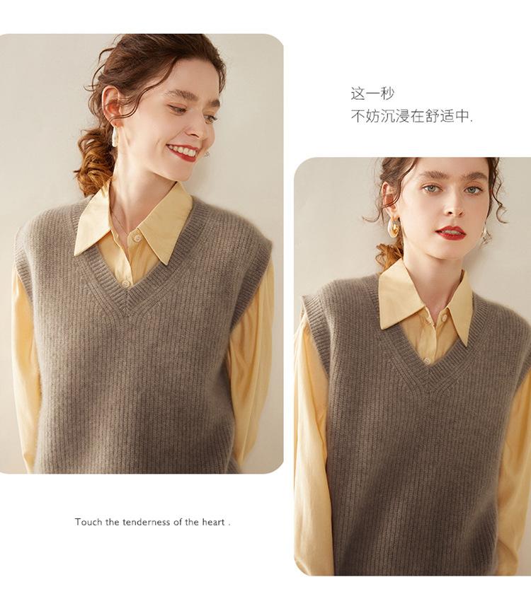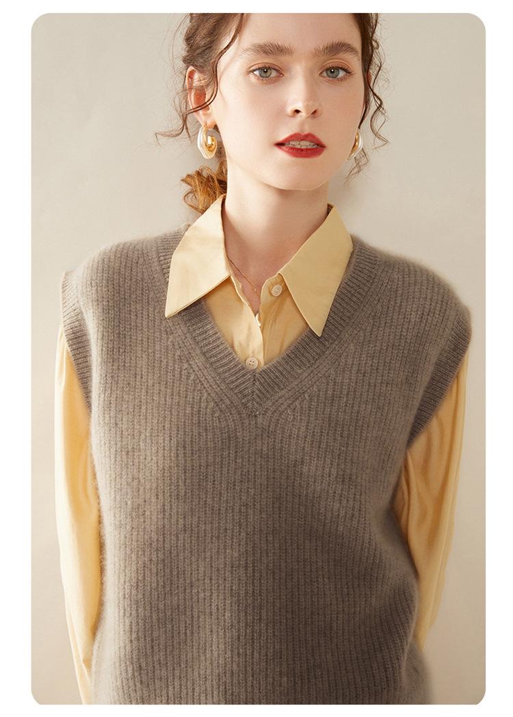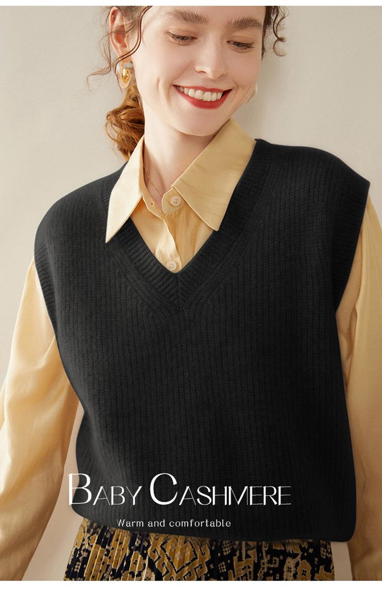 Chaleco de cachemira con cuello en V para mujer, suéter grueso sin mangas, abrigo de punto apilado, holgado y adelgazante, otoño e invierno, nuevo