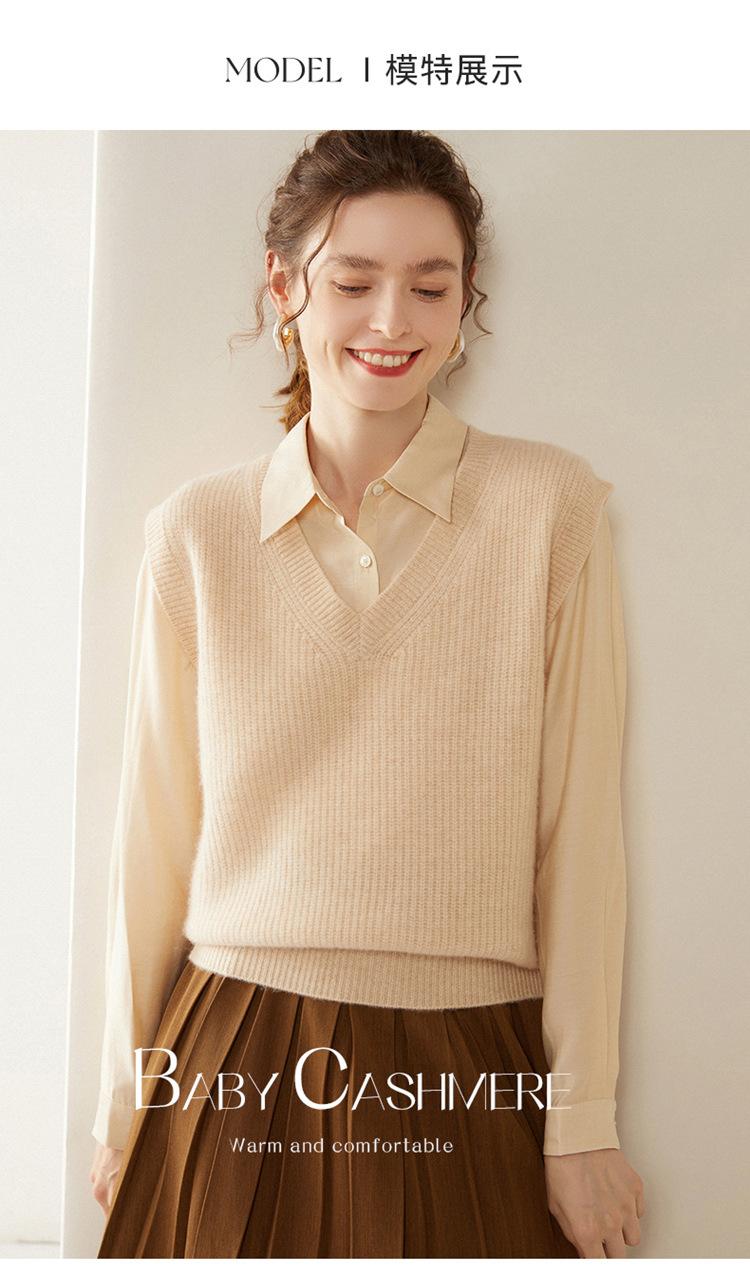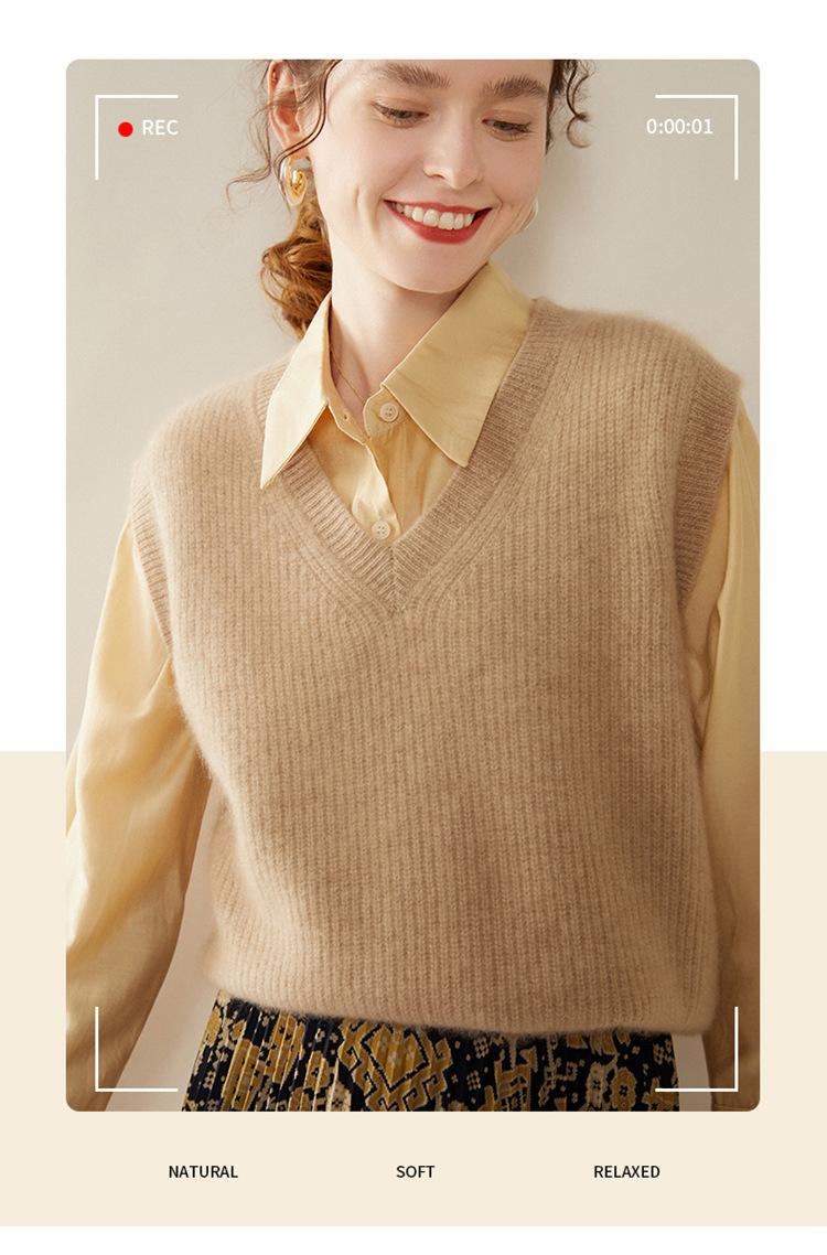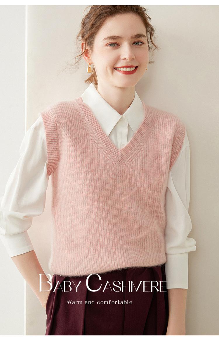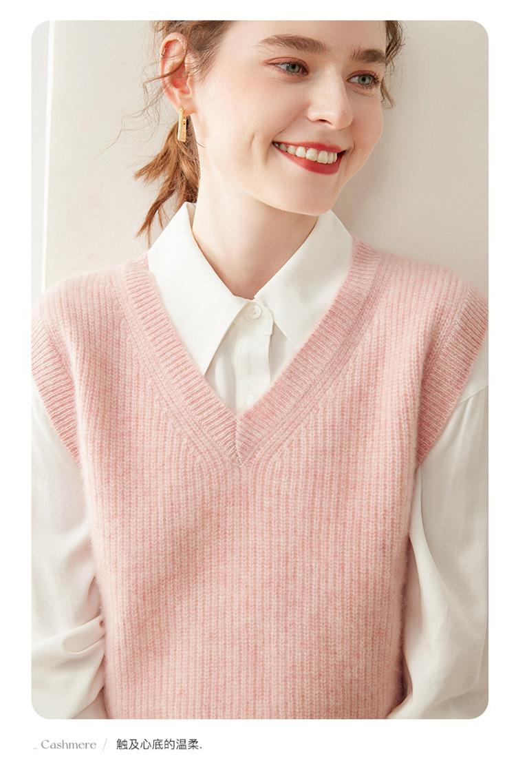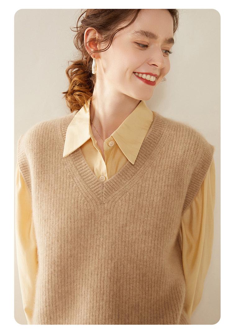 Chaleco de cachemira con cuello en V para mujer, suéter grueso sin mangas, abrigo de punto apilado, holgado y adelgazante, otoño e invierno, nuevo