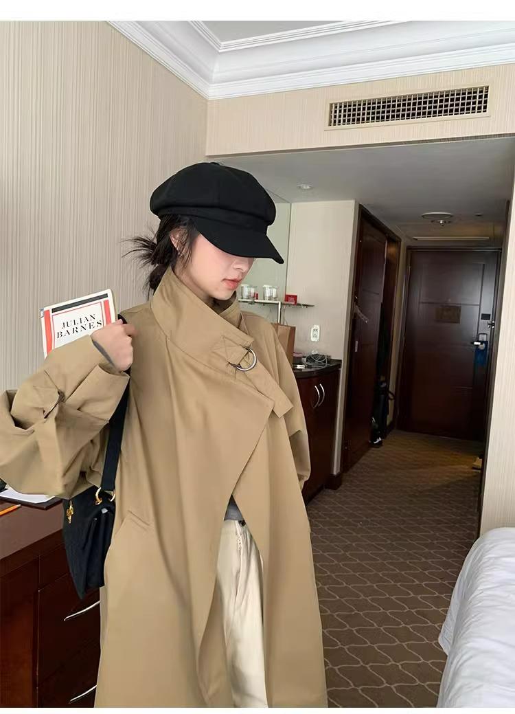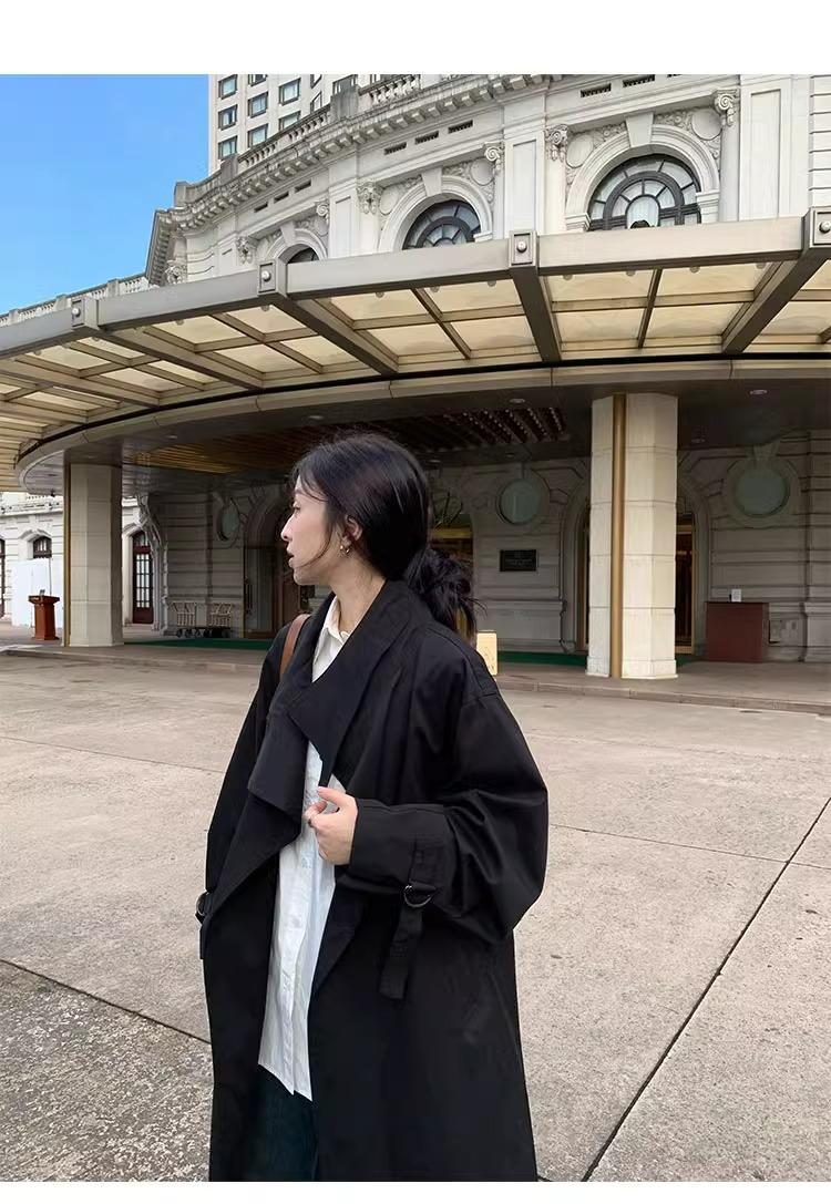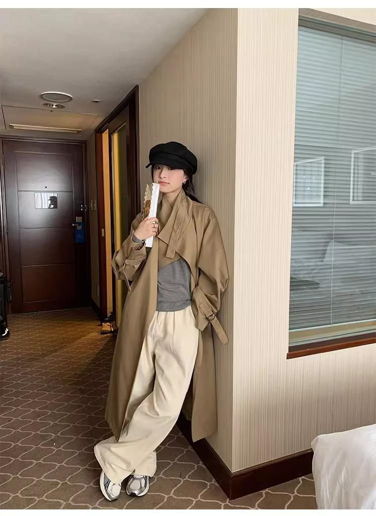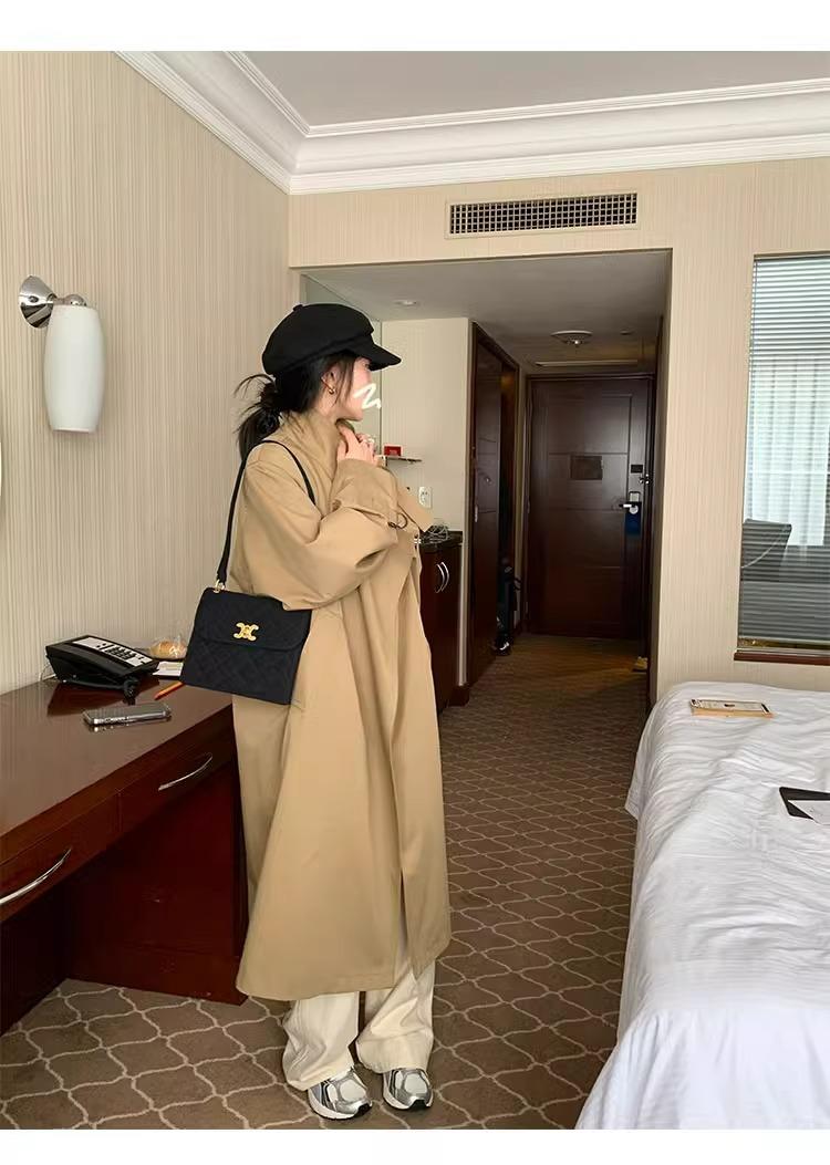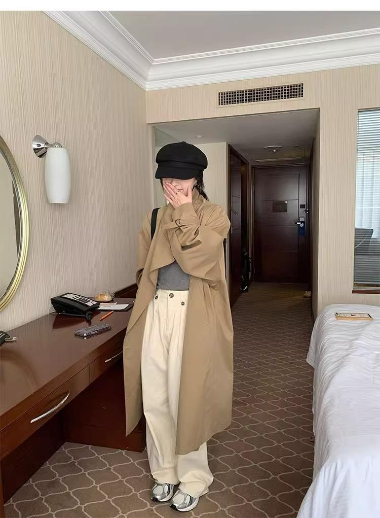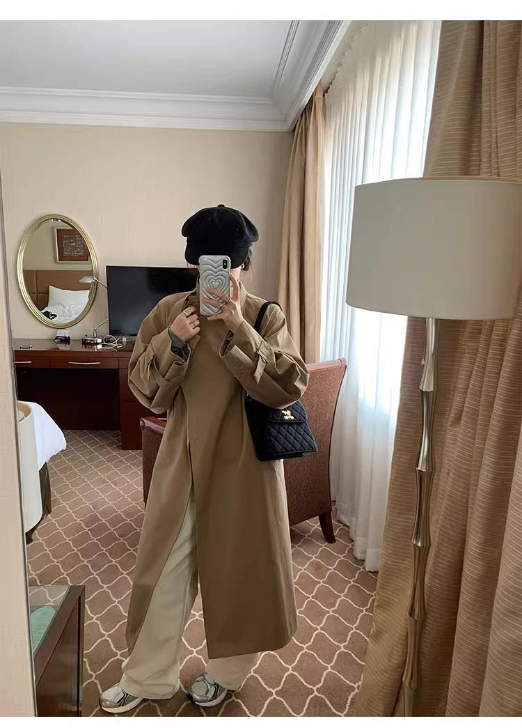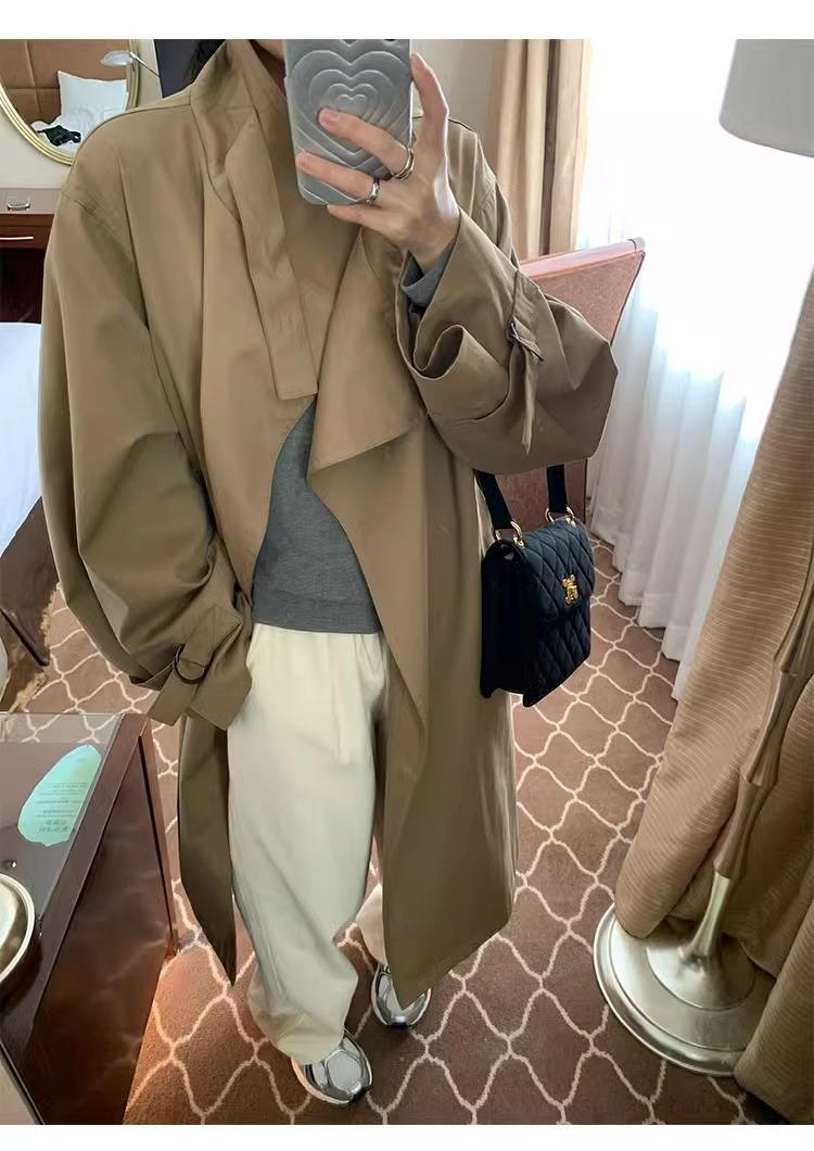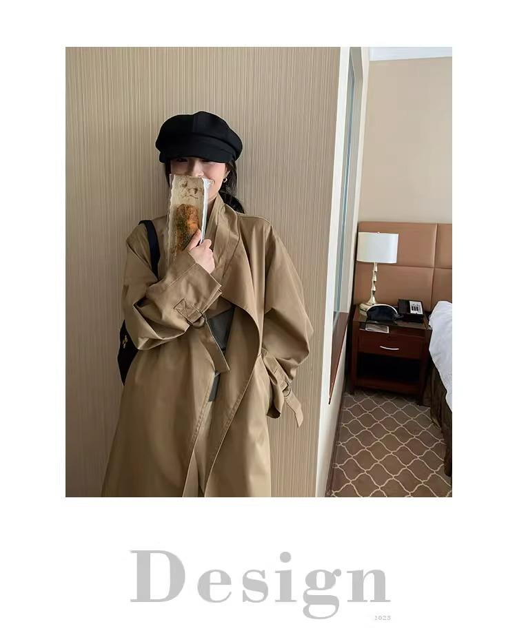 Abrigo trench de silueta de alta gama estilo coreano para mujer, nuevo para primavera y otoño 2024, estilo británico elegante de corte relajado, largo medio