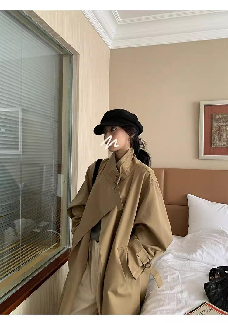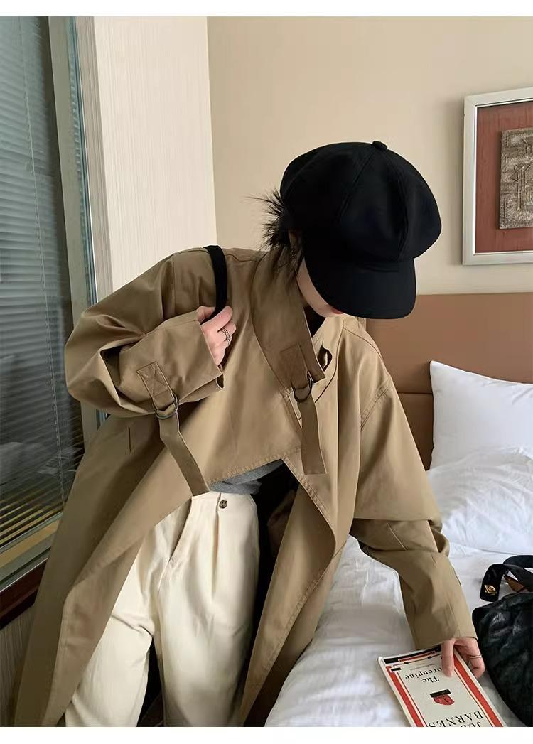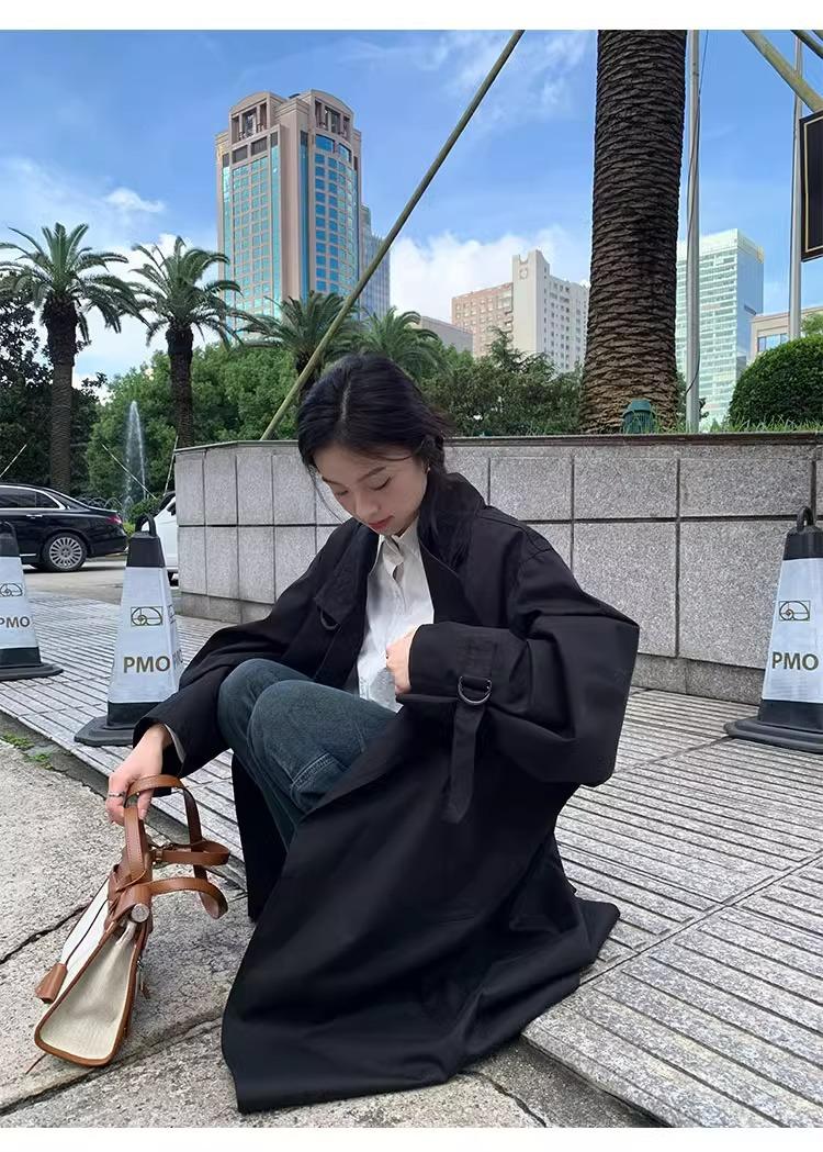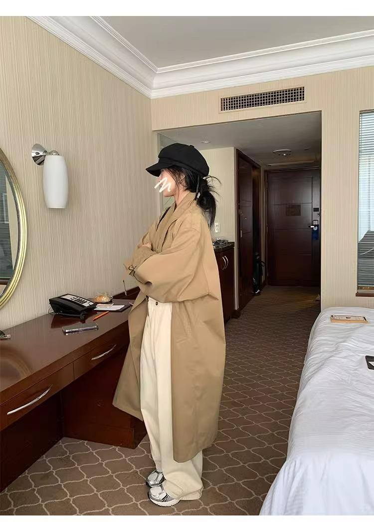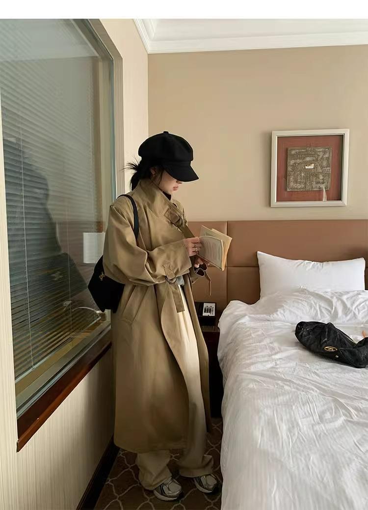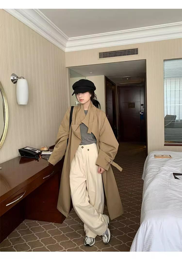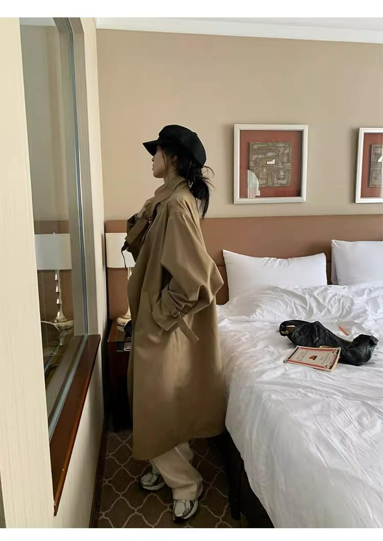 Abrigo trench de silueta de alta gama estilo coreano para mujer, nuevo para primavera y otoño 2024, estilo británico elegante de corte relajado, largo medio