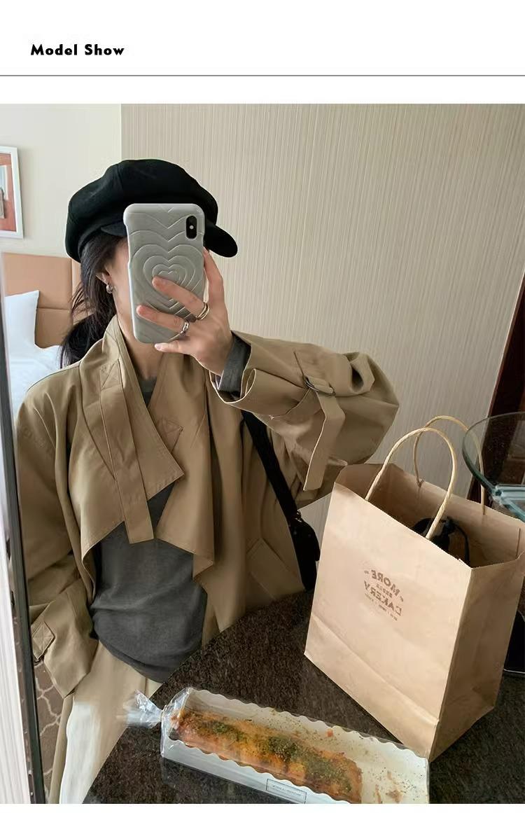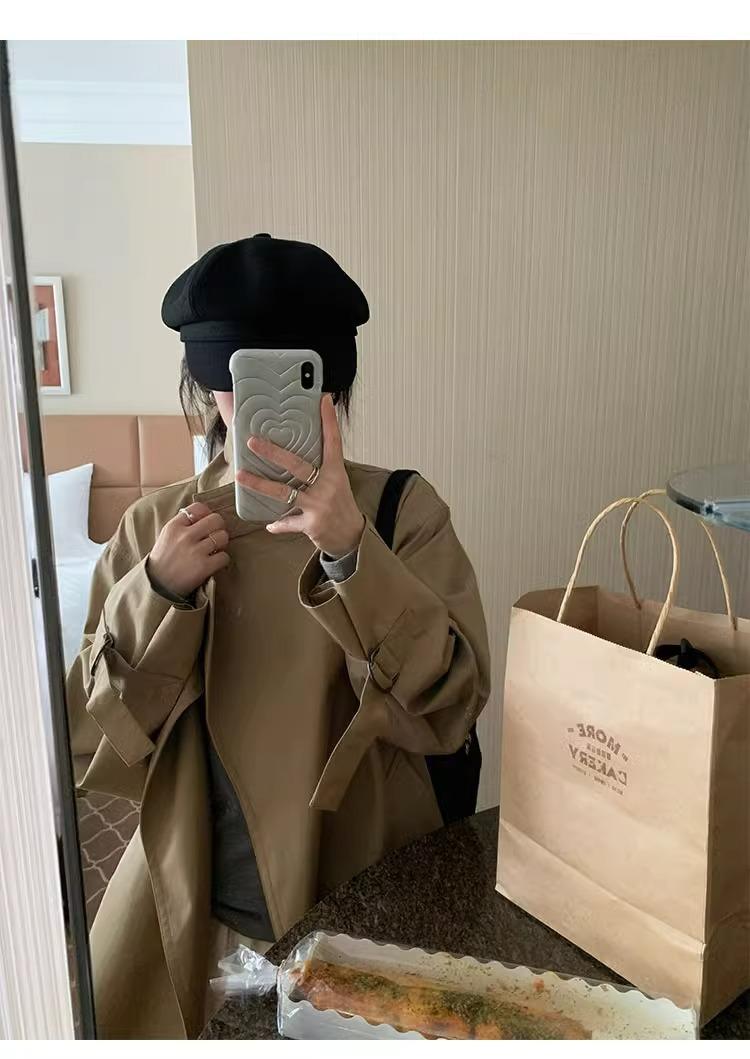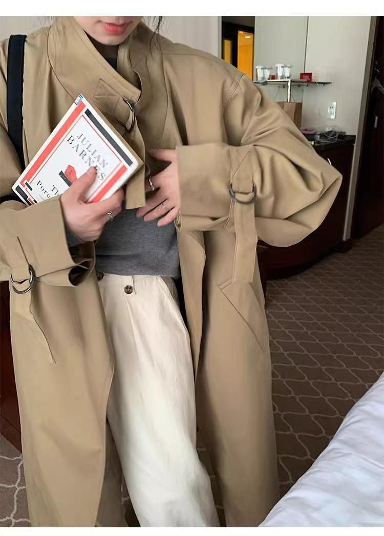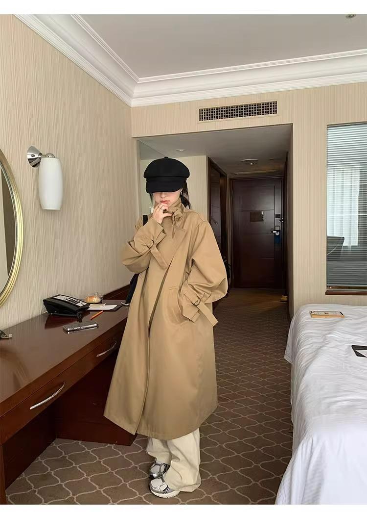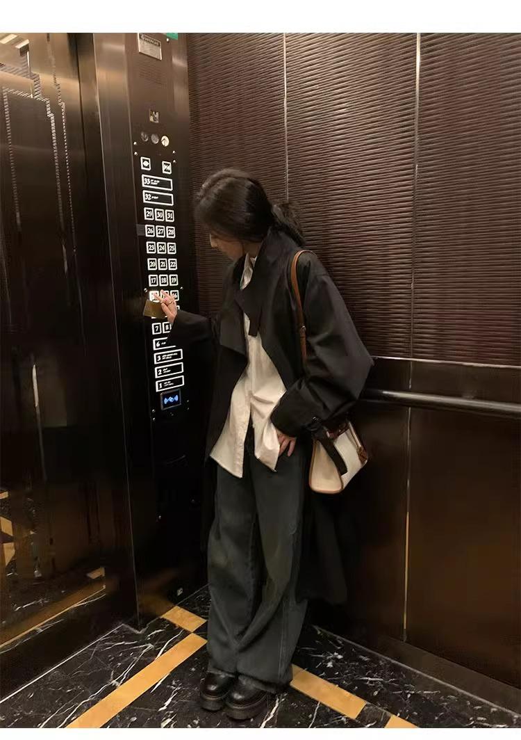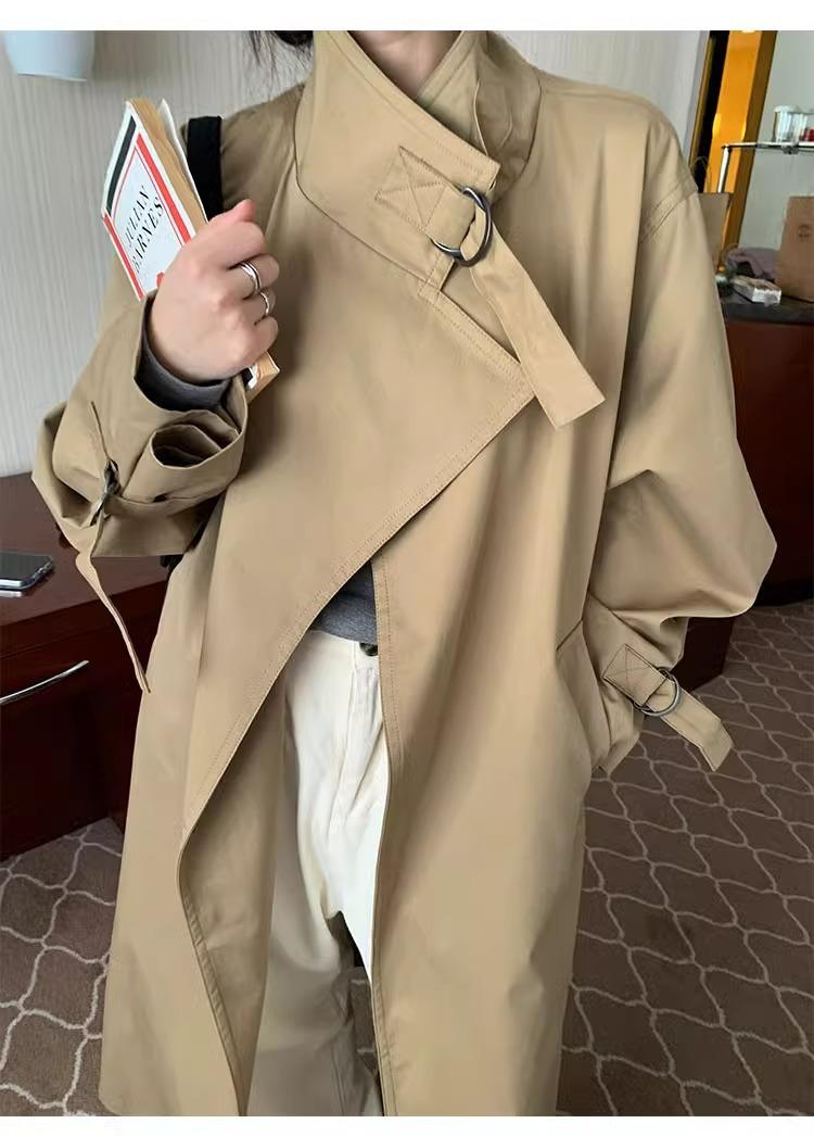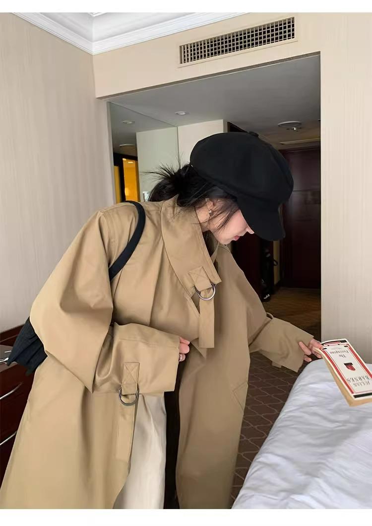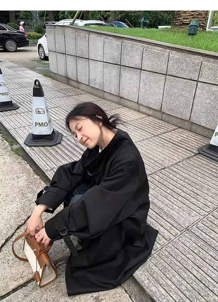 Abrigo trench de silueta de alta gama estilo coreano para mujer, nuevo para primavera y otoño 2024, estilo británico elegante de corte relajado, largo medio