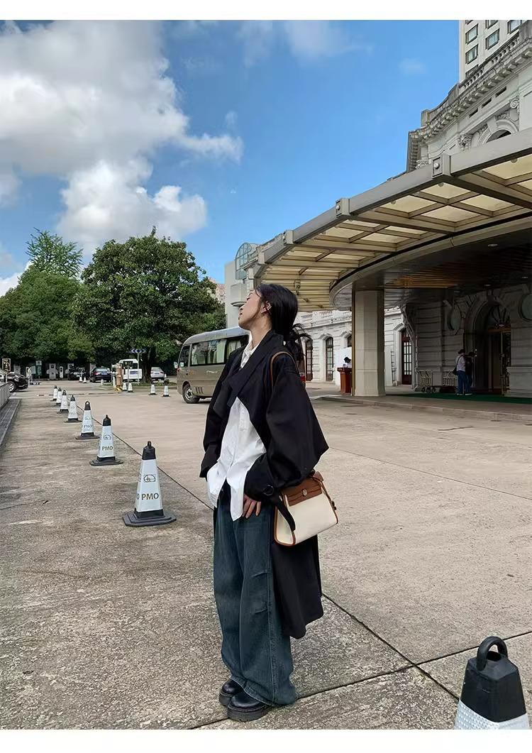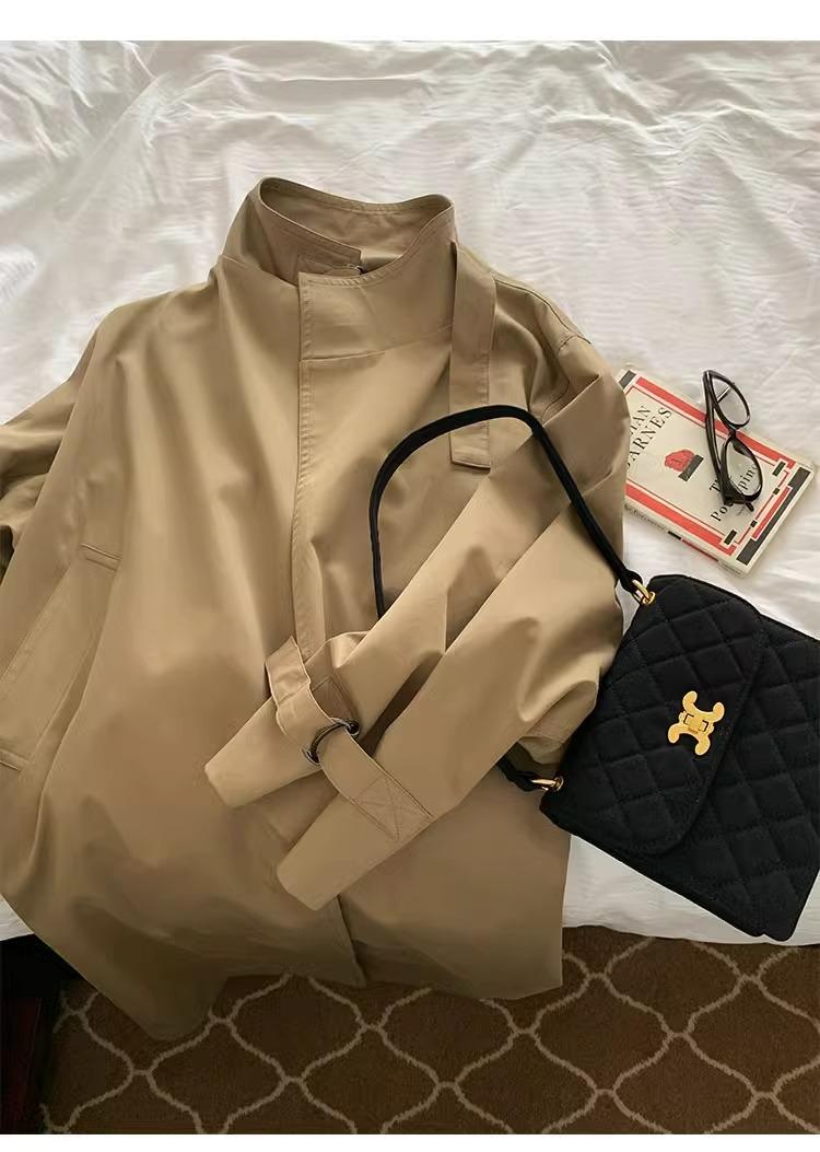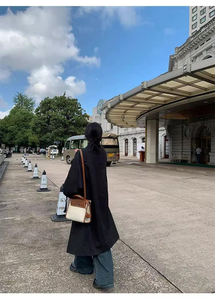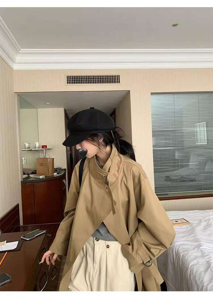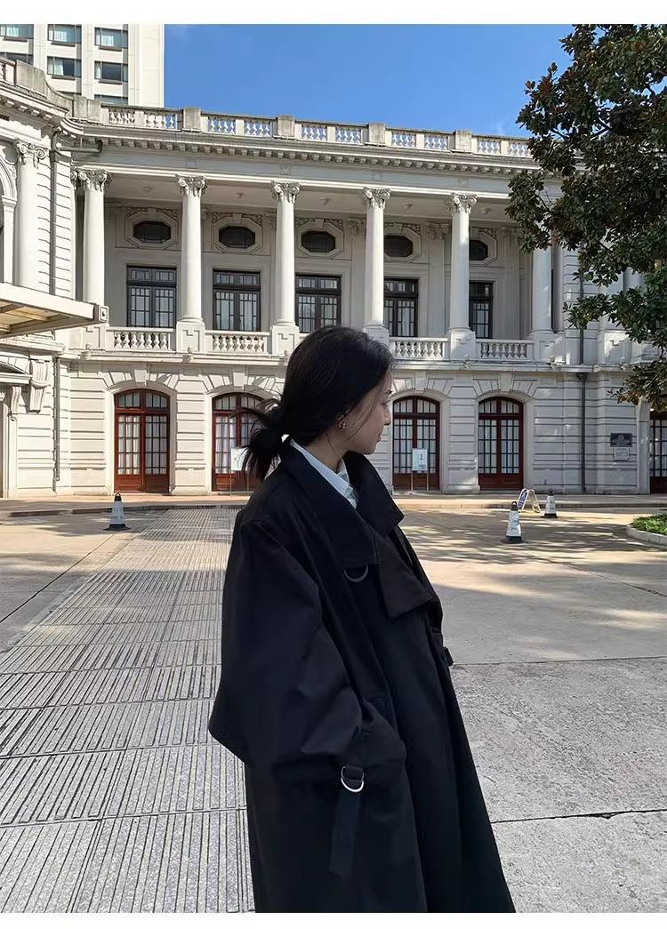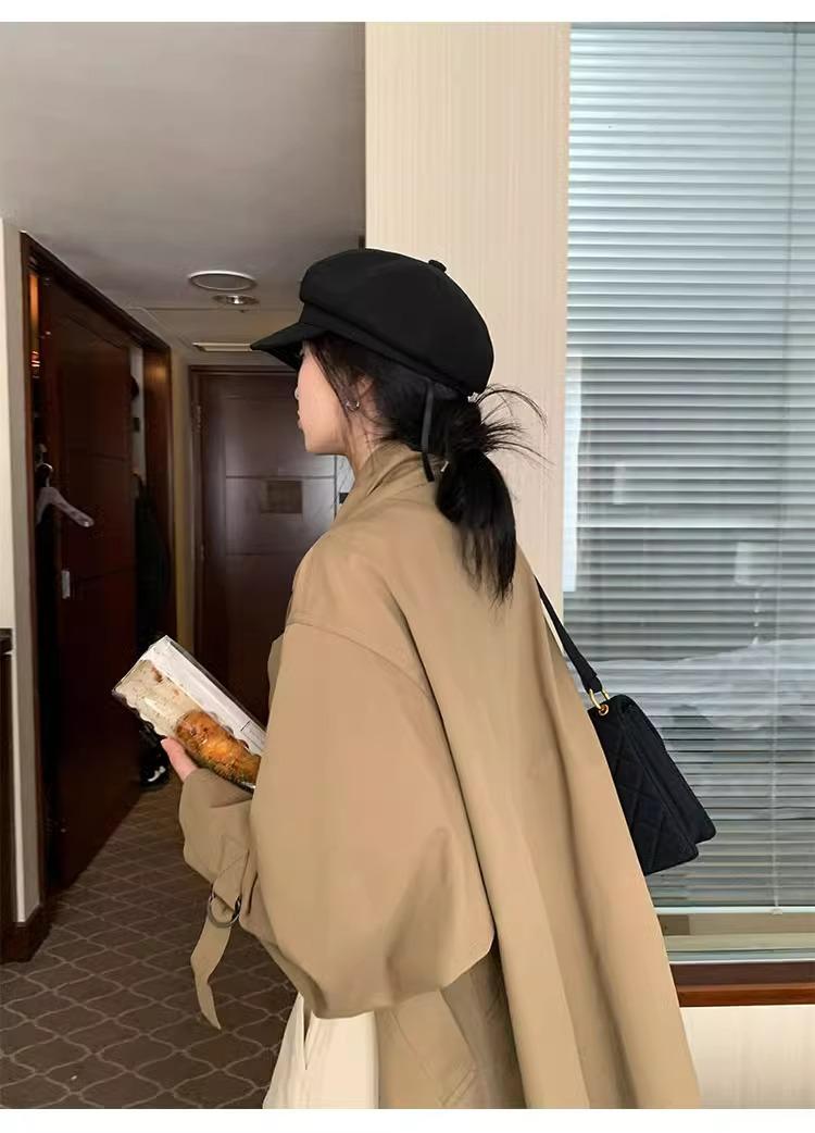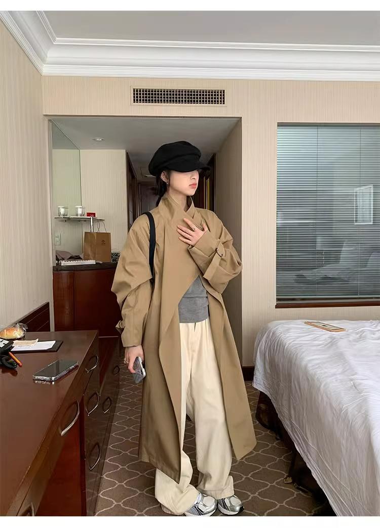 Abrigo trench de silueta de alta gama estilo coreano para mujer, nuevo para primavera y otoño 2024, estilo británico elegante de corte relajado, largo medio