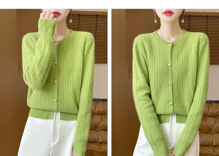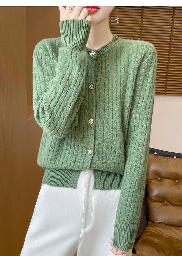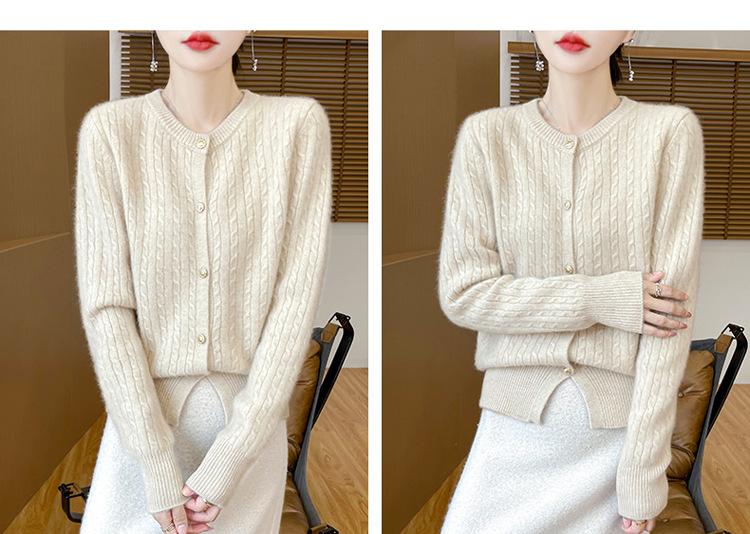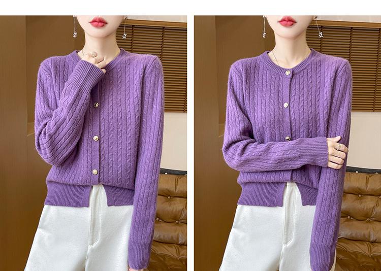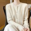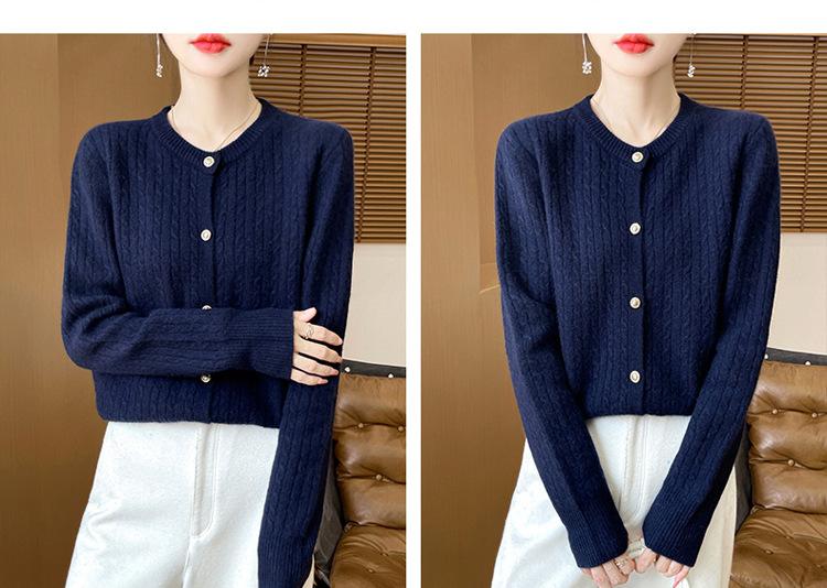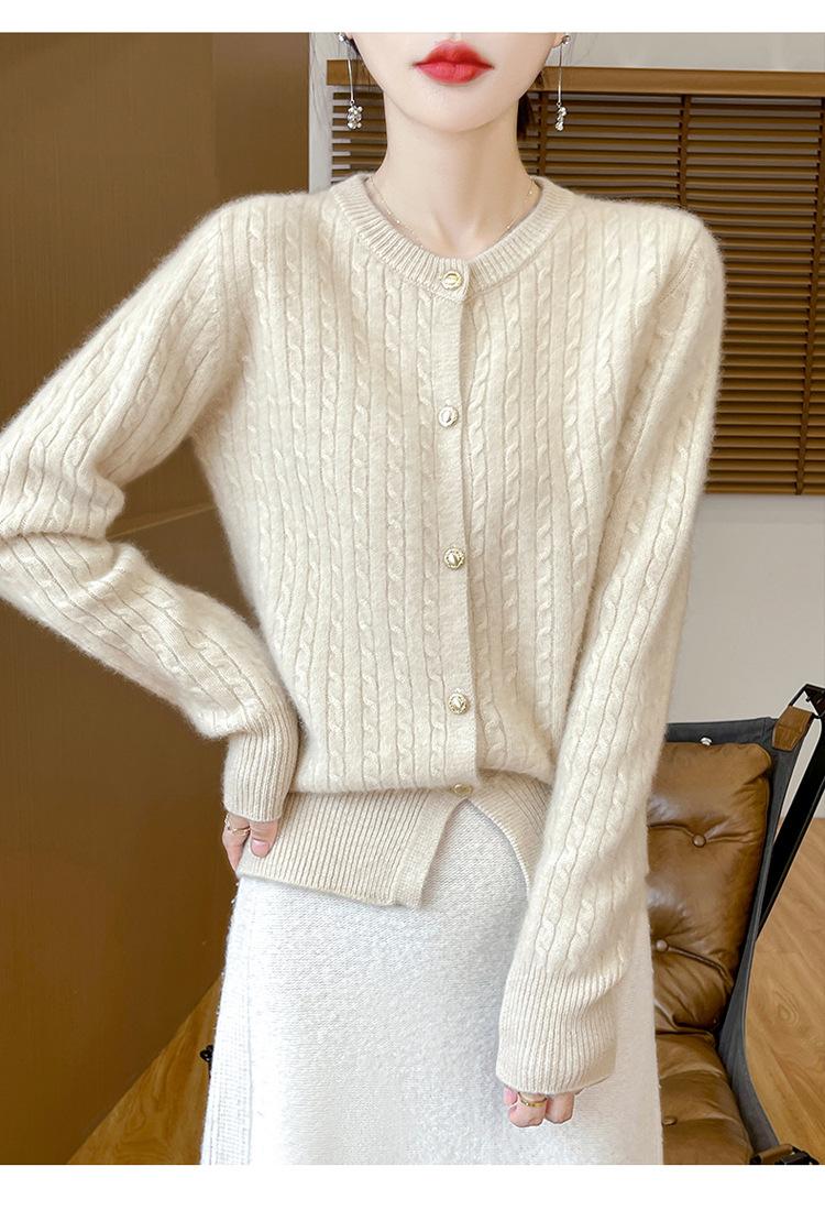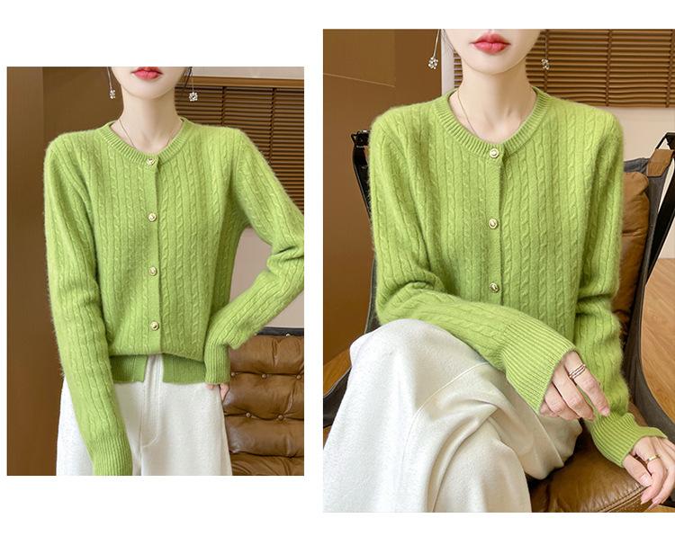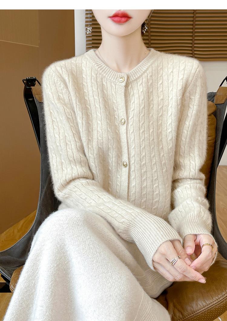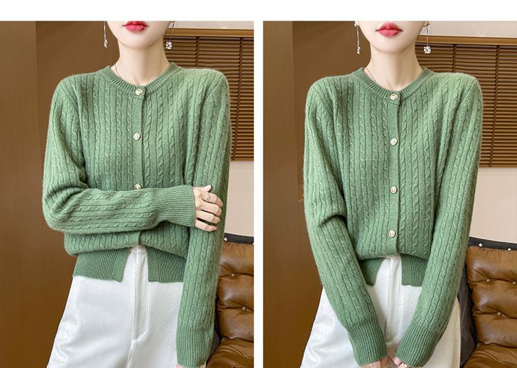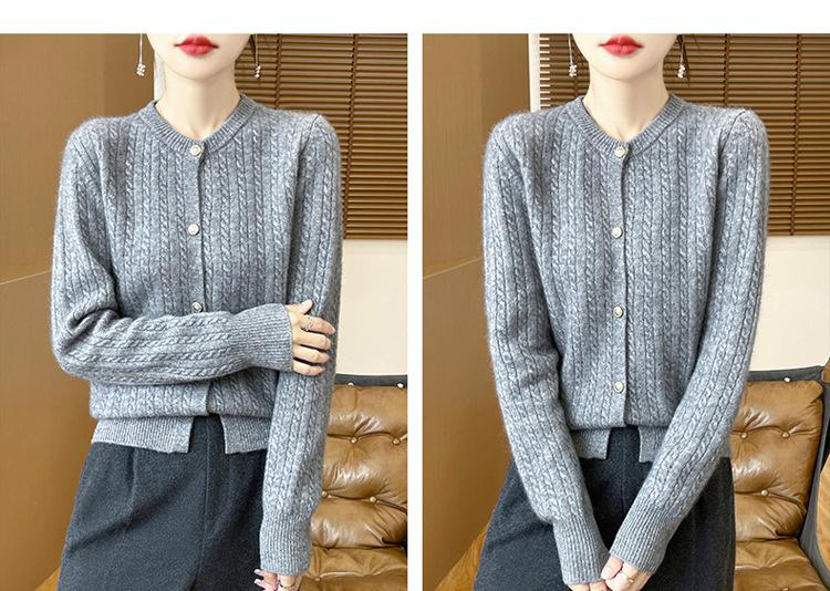 Cárdigan de Lana Pura 100% para Mujer Otoño/Invierno, de Cuello Redondo, con Chaqueta de Flores Trenzadas, Suéter Holgado Grueso de Color Sólido, Chaqueta Exterior