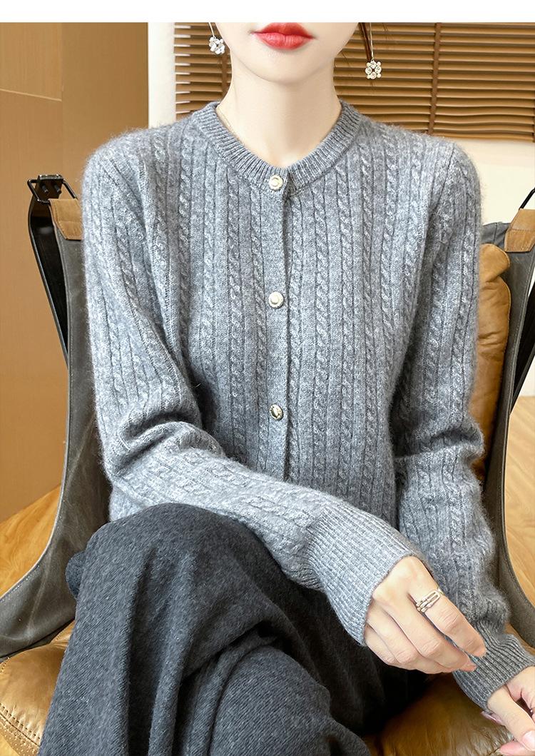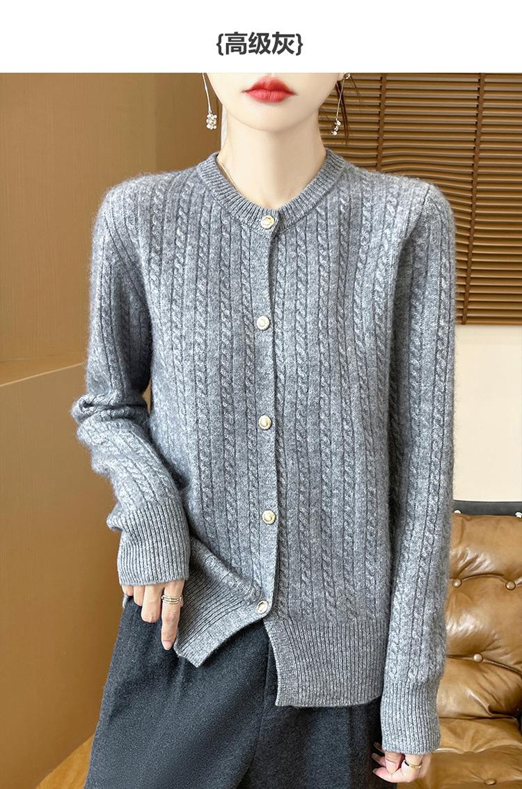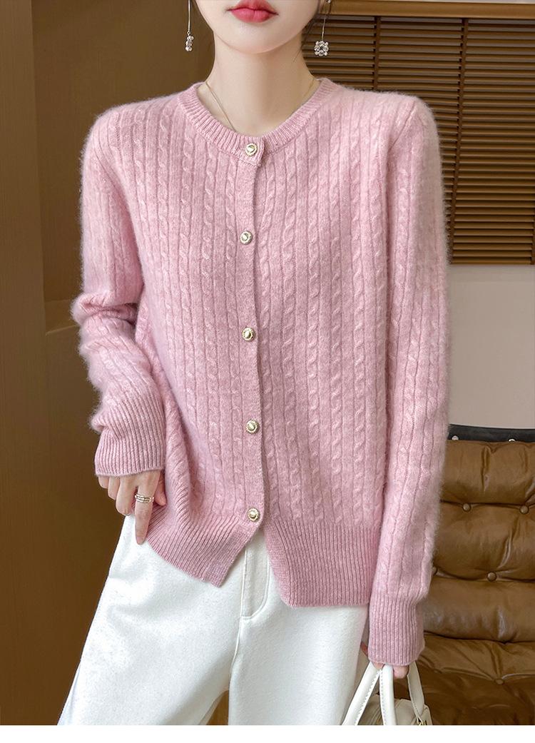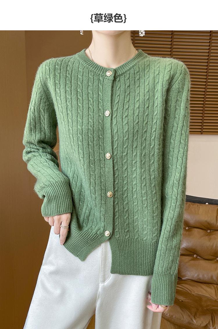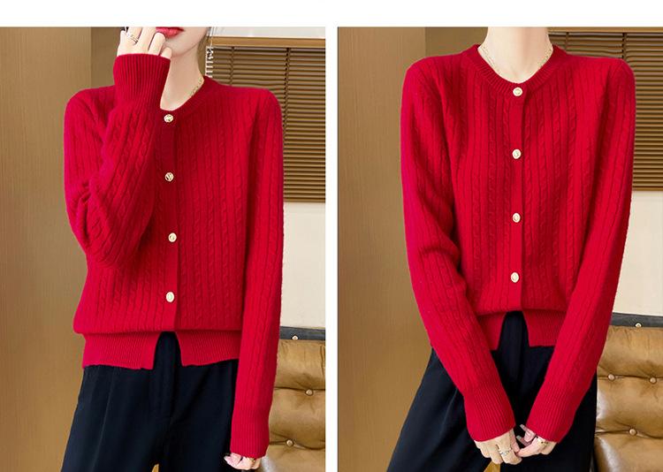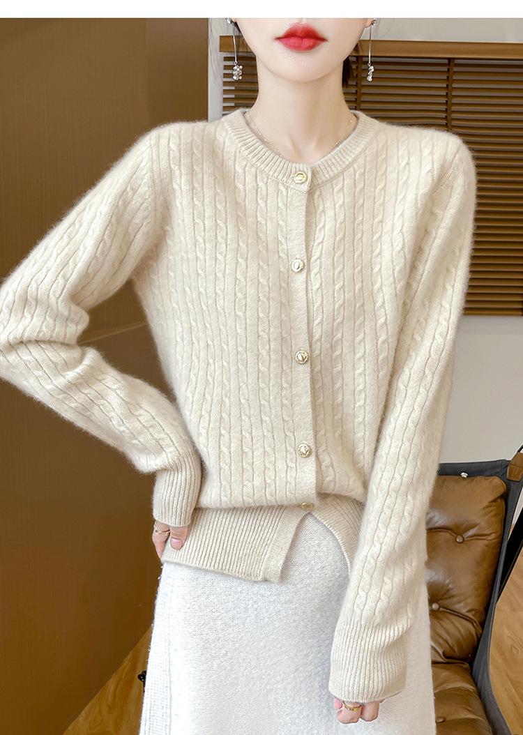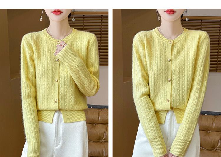 Cárdigan de Lana Pura 100% para Mujer Otoño/Invierno, de Cuello Redondo, con Chaqueta de Flores Trenzadas, Suéter Holgado Grueso de Color Sólido, Chaqueta Exterior