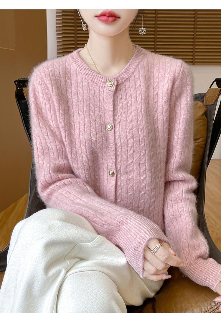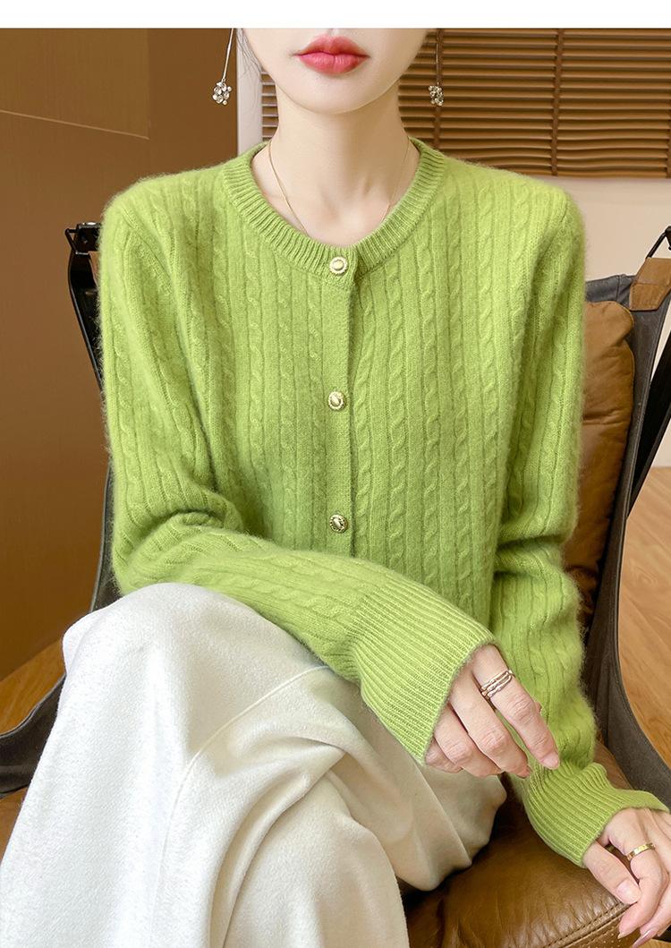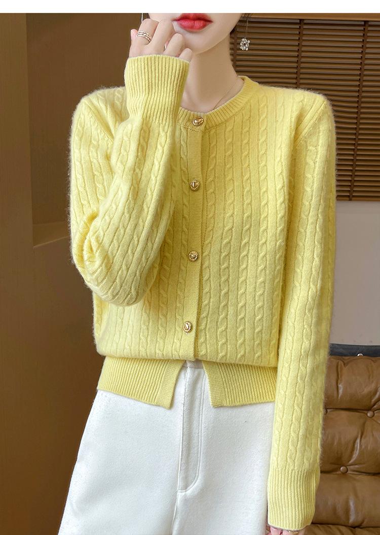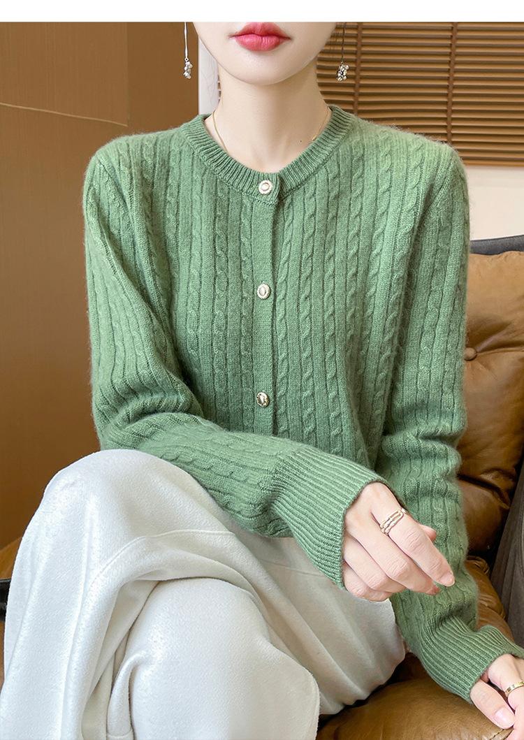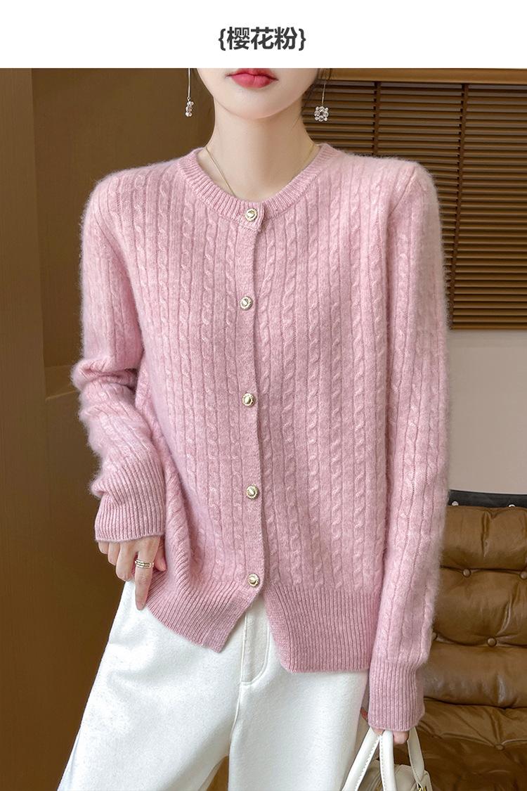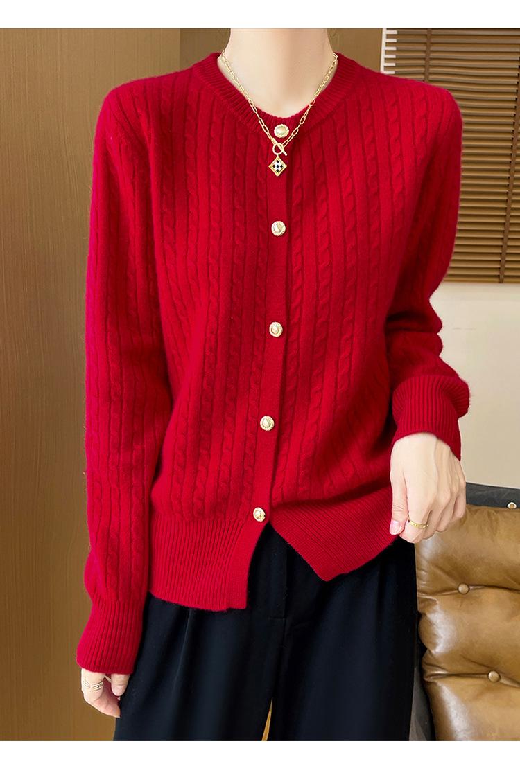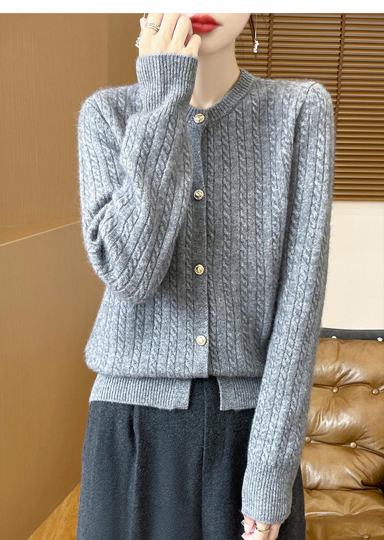 Cárdigan de Lana Pura 100% para Mujer Otoño/Invierno, de Cuello Redondo, con Chaqueta de Flores Trenzadas, Suéter Holgado Grueso de Color Sólido, Chaqueta Exterior