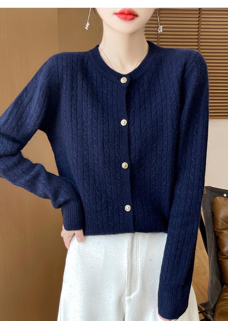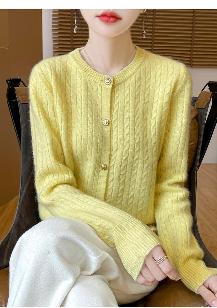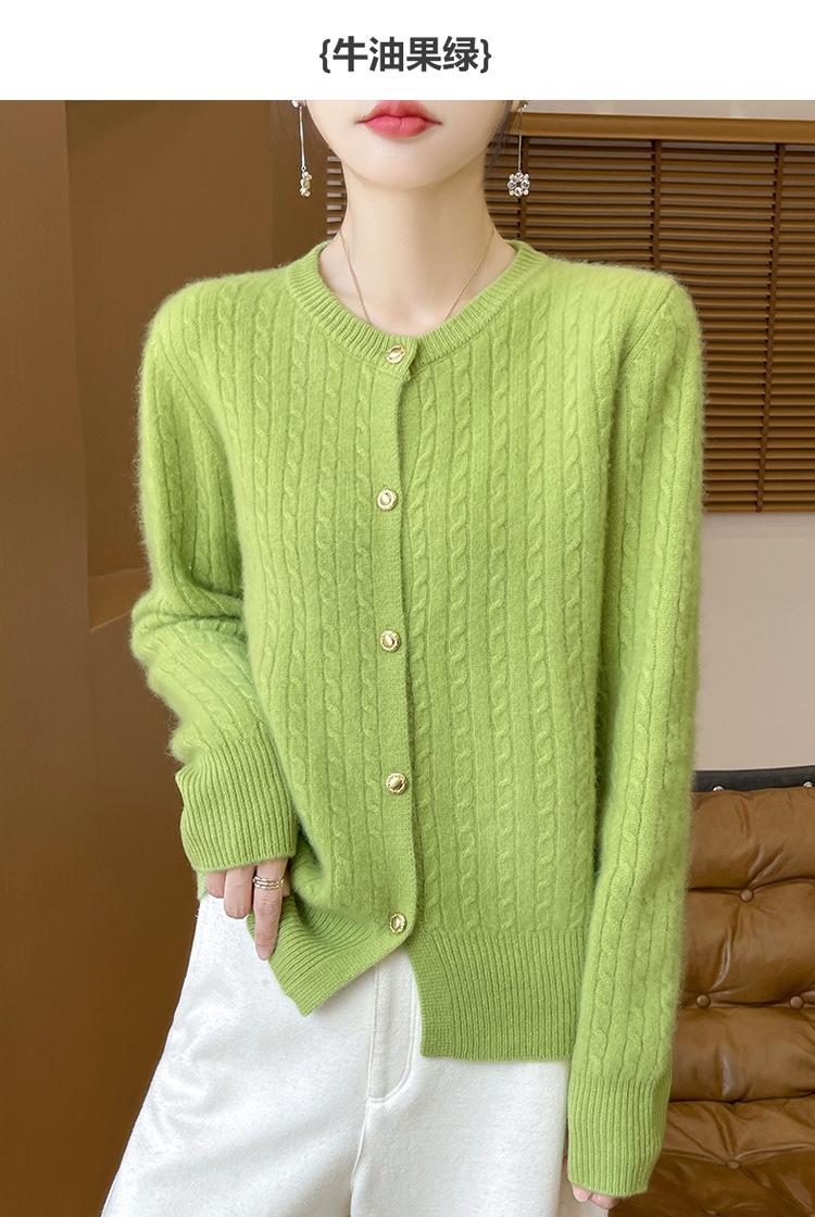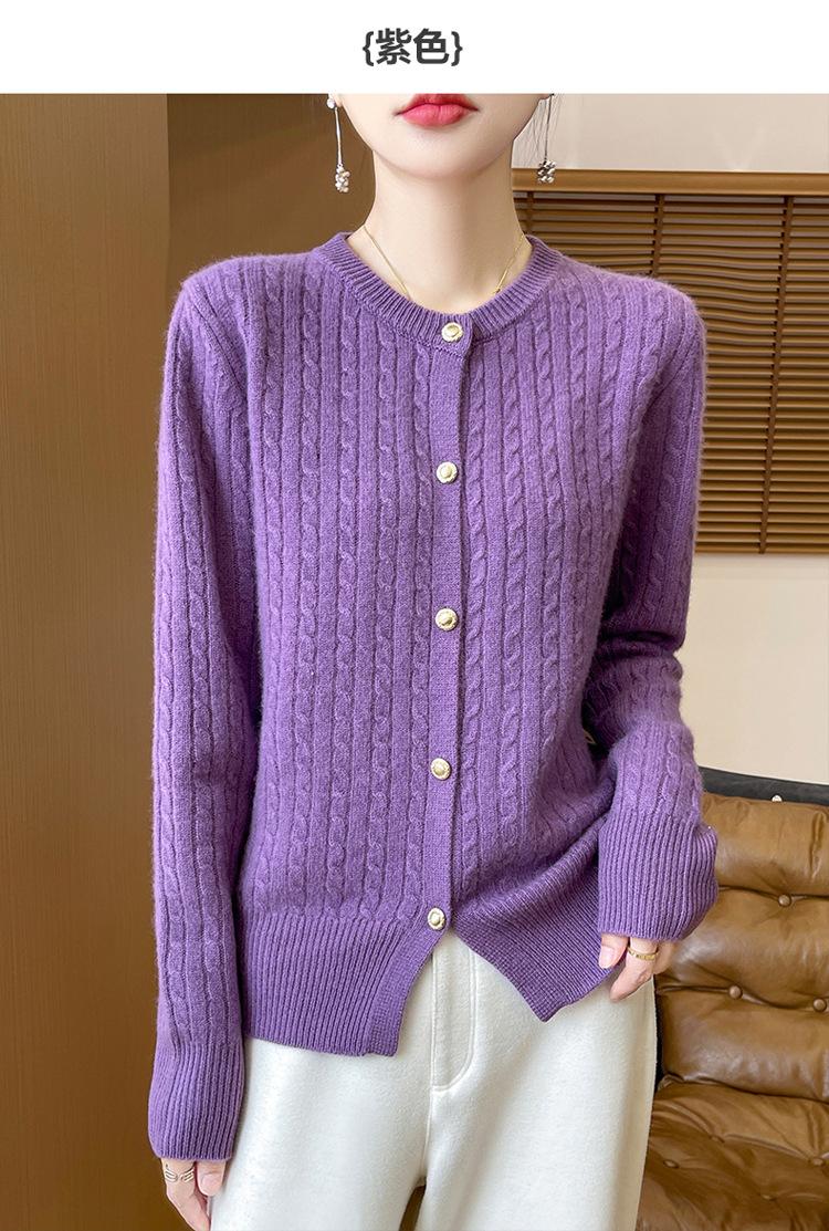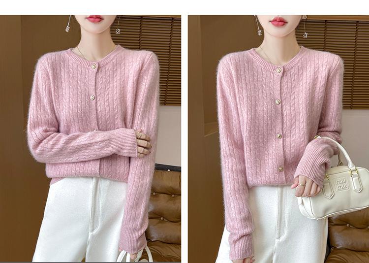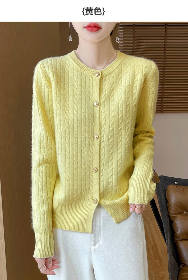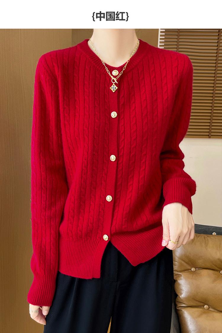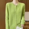 Cárdigan de Lana Pura 100% para Mujer Otoño/Invierno, de Cuello Redondo, con Chaqueta de Flores Trenzadas, Suéter Holgado Grueso de Color Sólido, Chaqueta Exterior