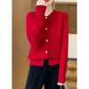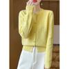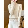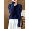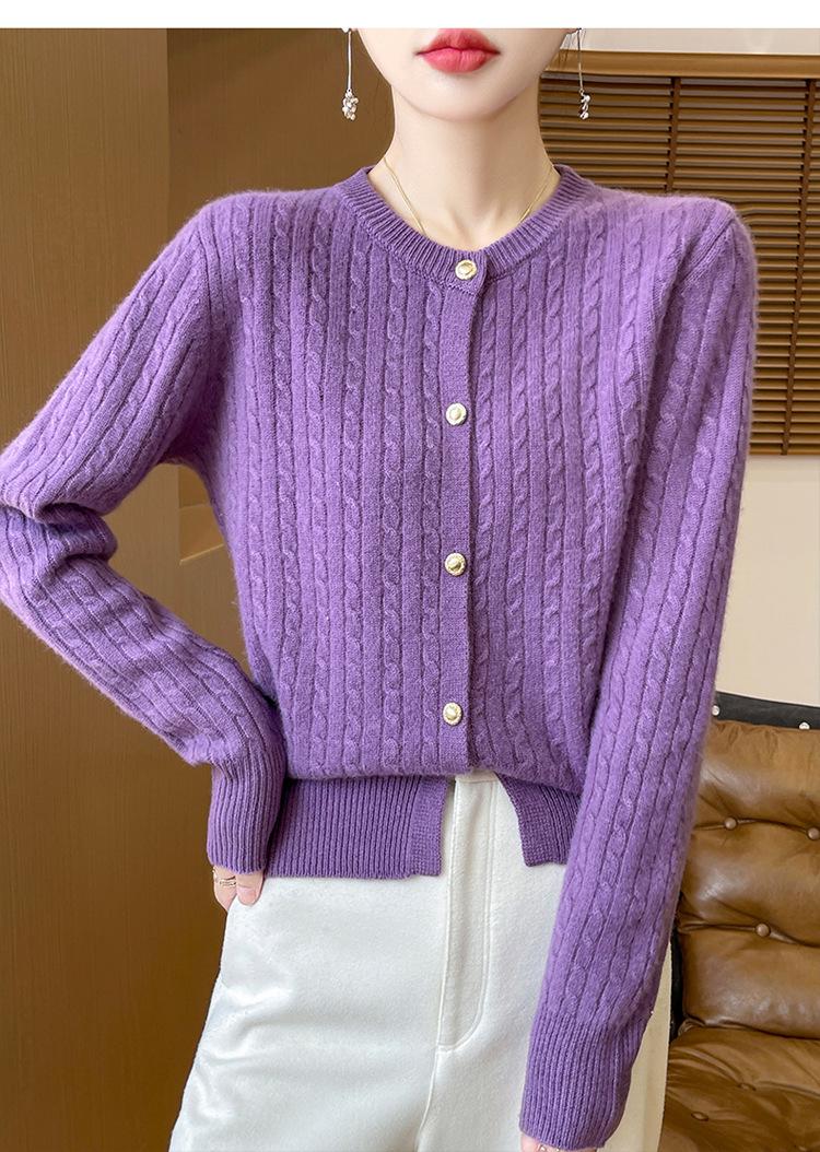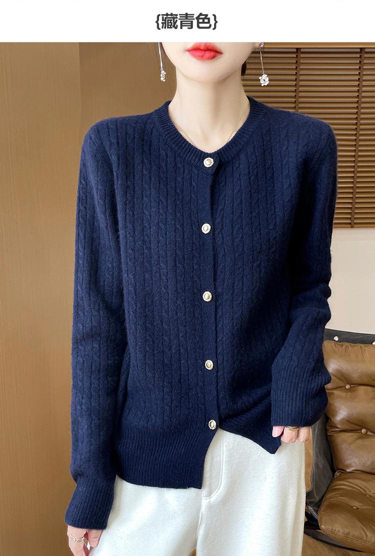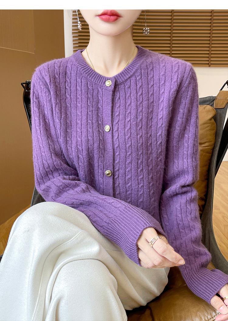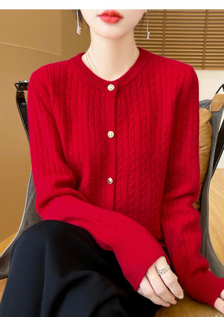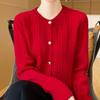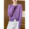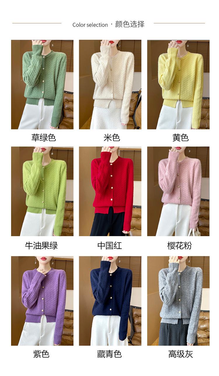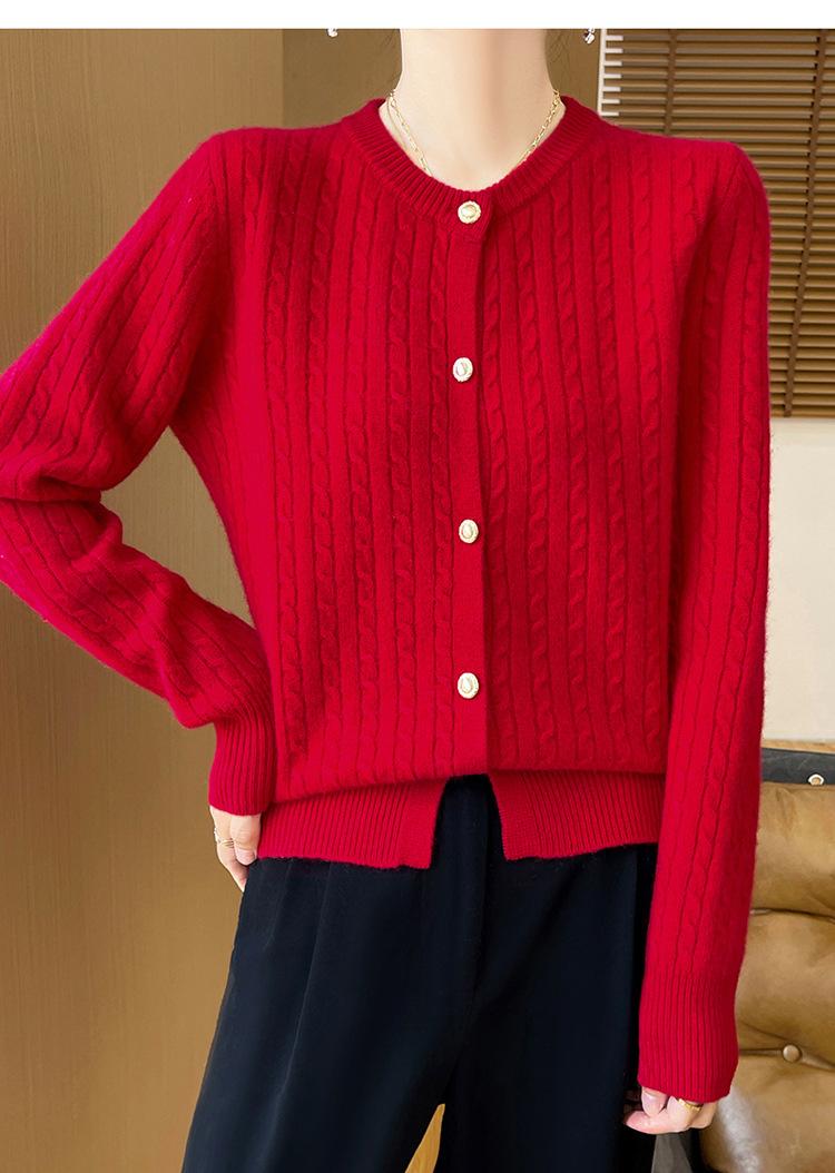 Cárdigan de Lana Pura 100% para Mujer Otoño/Invierno, de Cuello Redondo, con Chaqueta de Flores Trenzadas, Suéter Holgado Grueso de Color Sólido, Chaqueta Exterior