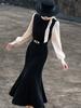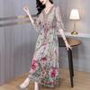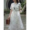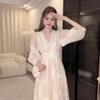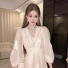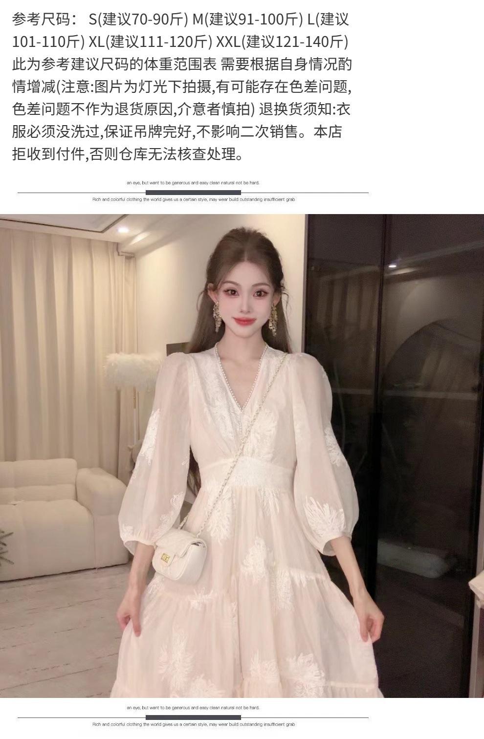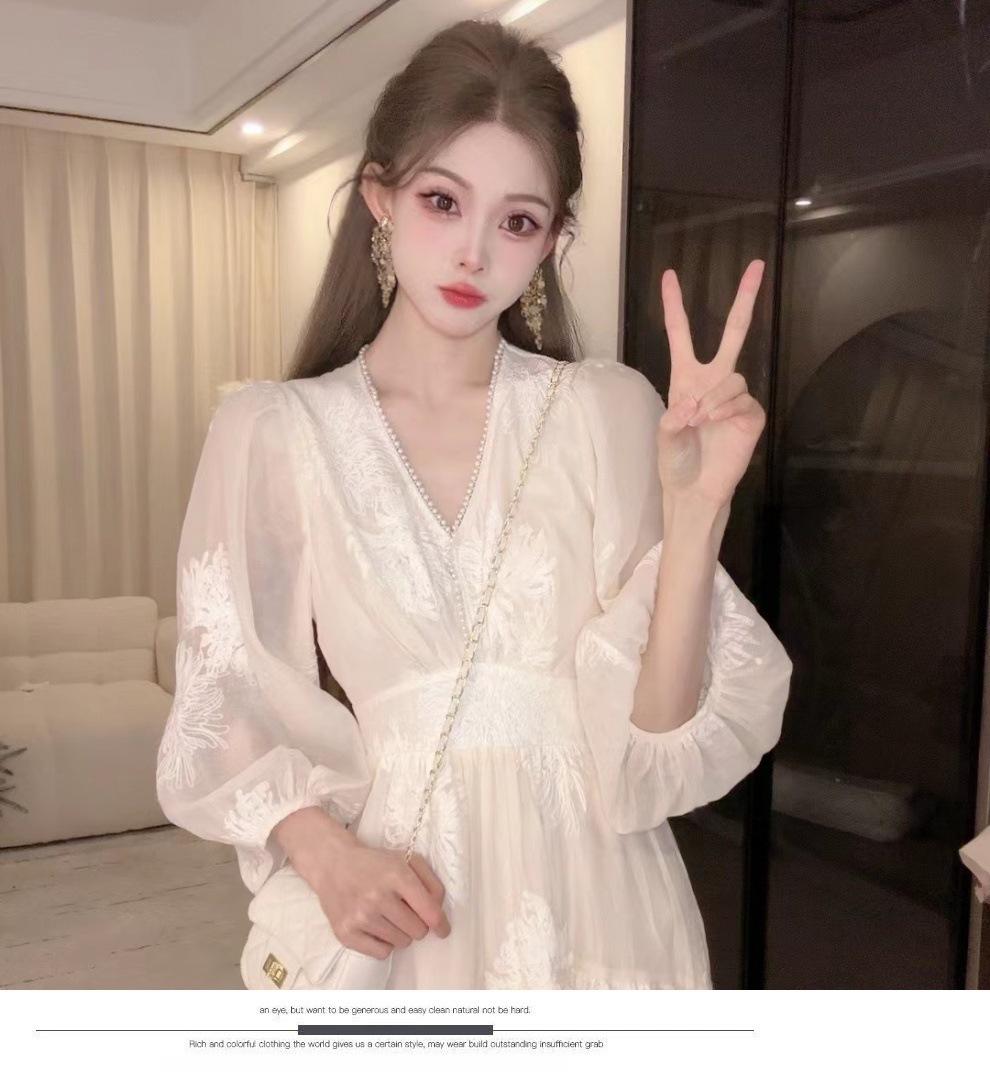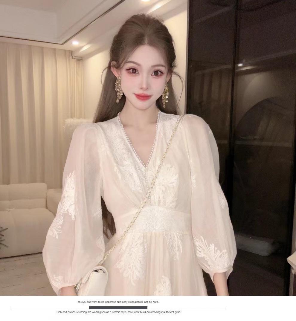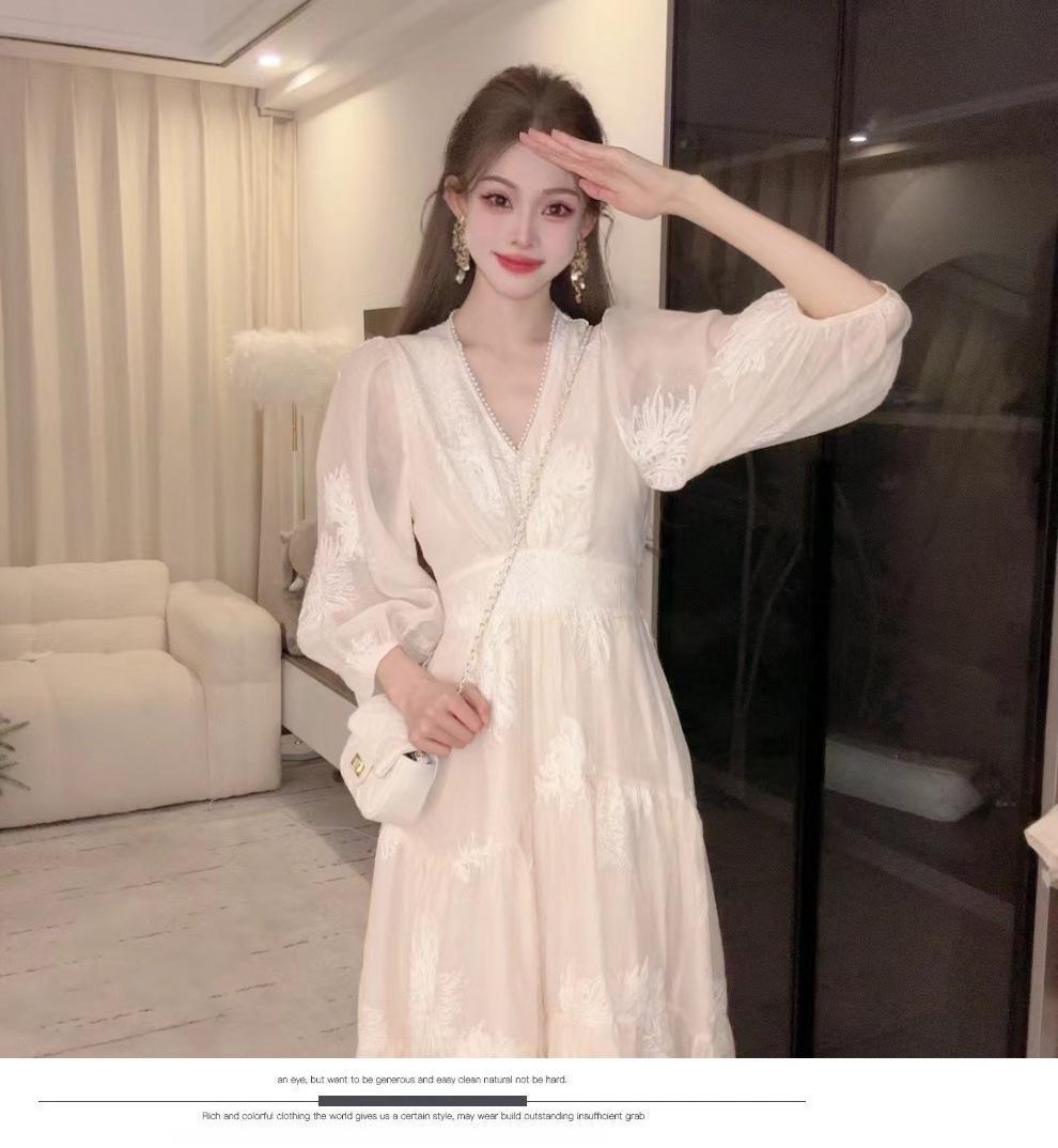 Vestido de manga larga con cuello en V bordado estilo socialité francés para mujer, nuevo estilo de verano 2024, falda elegante y suave con aspecto adelgazante.
