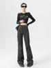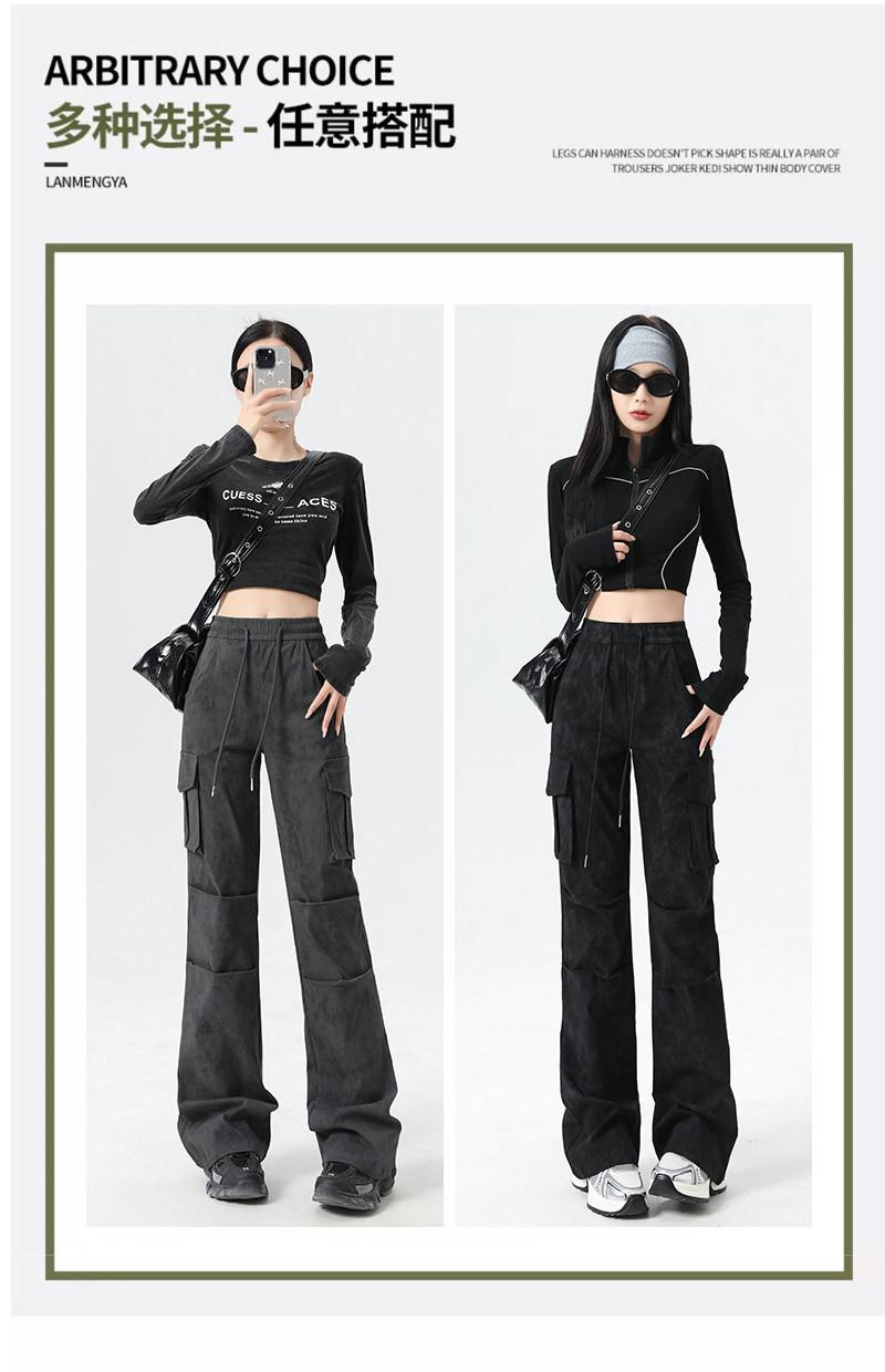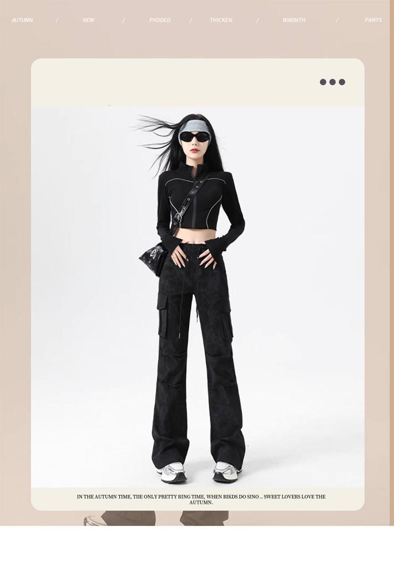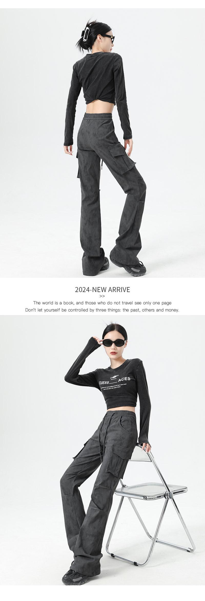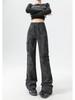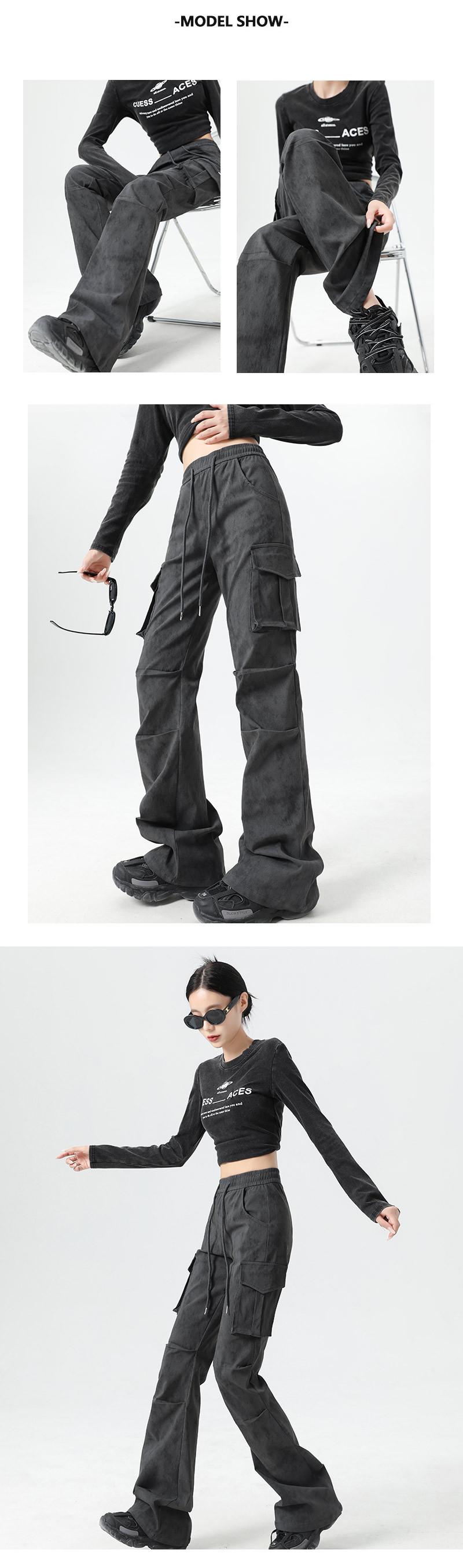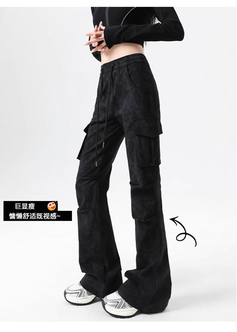 Pantalones Cargo Acampanados Negros para Mujer 2025 Nuevo Primavera y Verano Tiro Alto Retro Adelgazantes Rectos Tie-Dye Estilo Americano Micro Acampanados Pantalones Largos