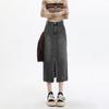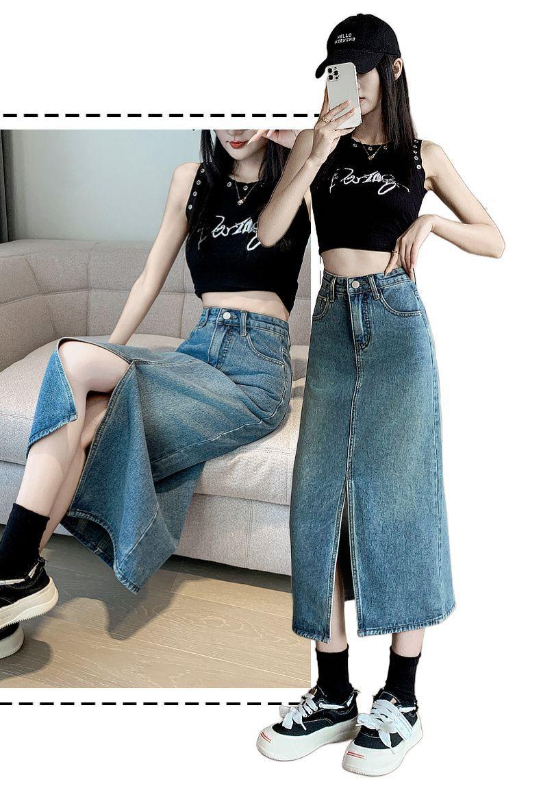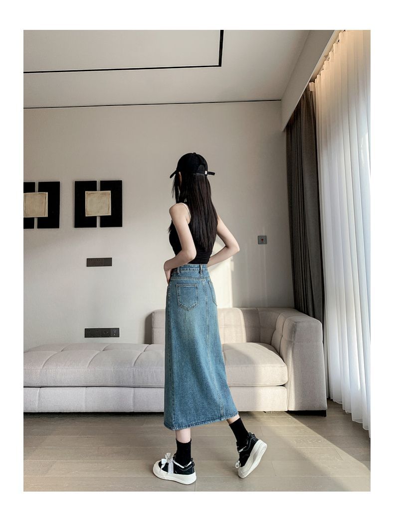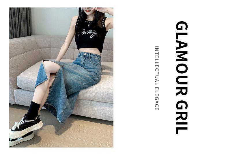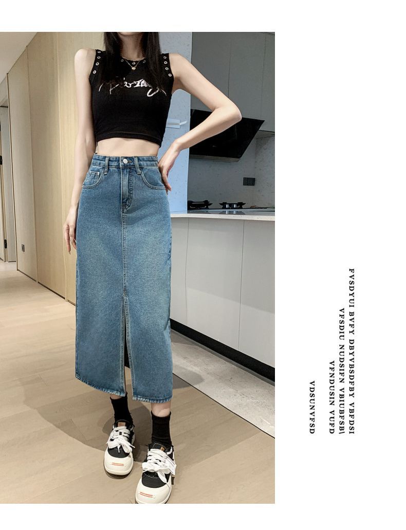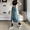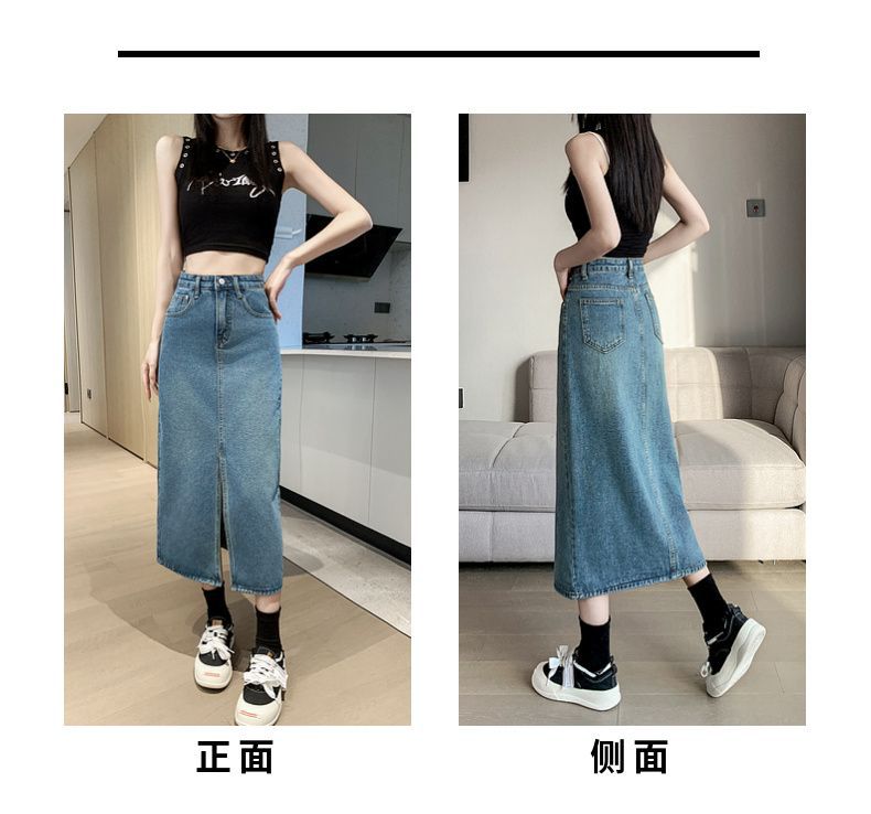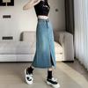 Falda vaquera vintage con abertura para mujer, estilo nuevo que combina con todo, verano 2024, cintura alta, adelgazante, línea A, falda de longitud media, fina