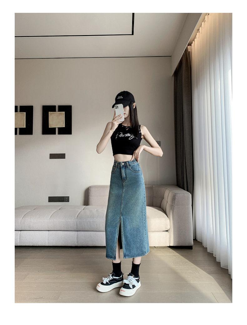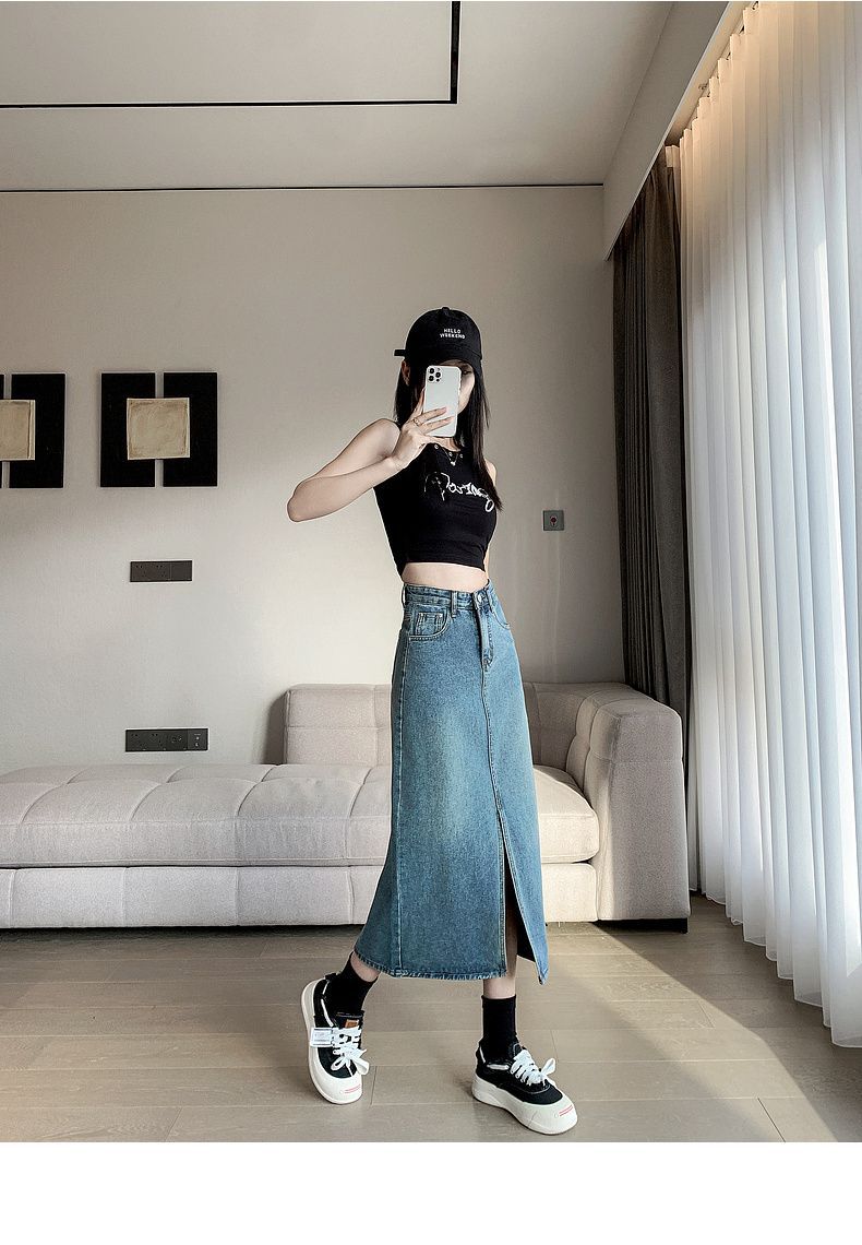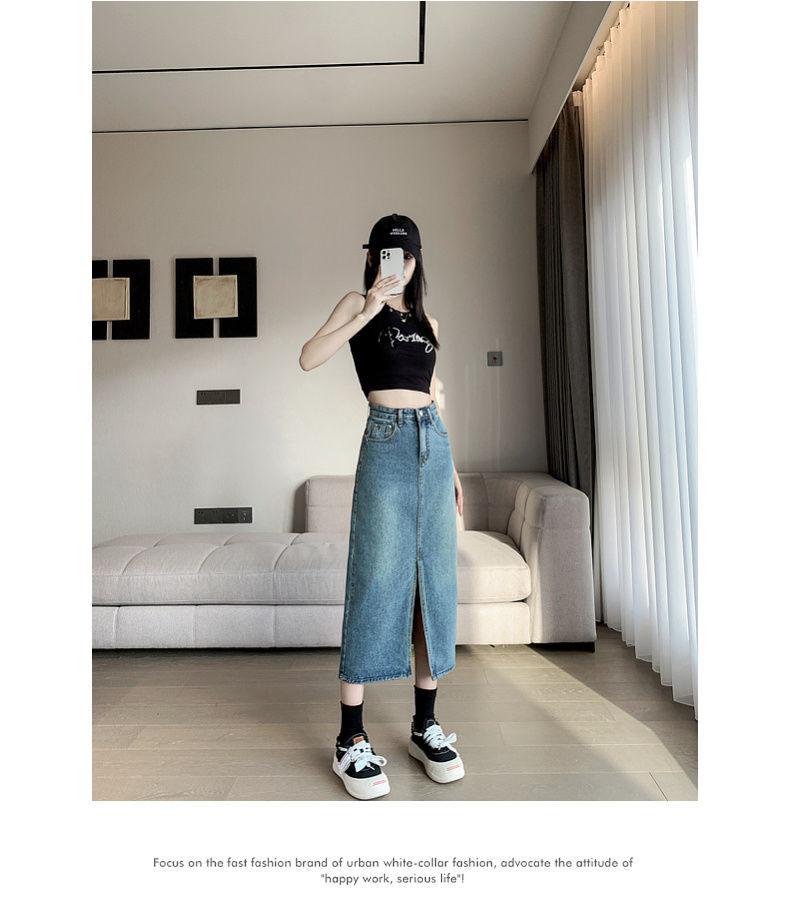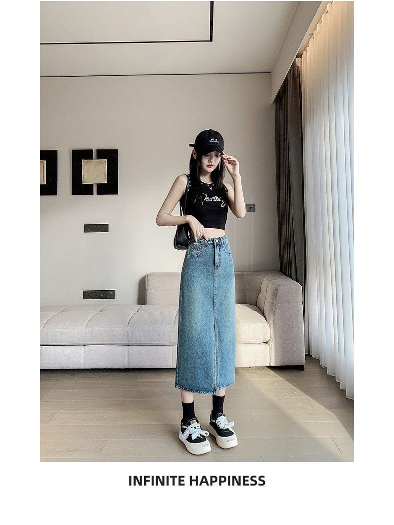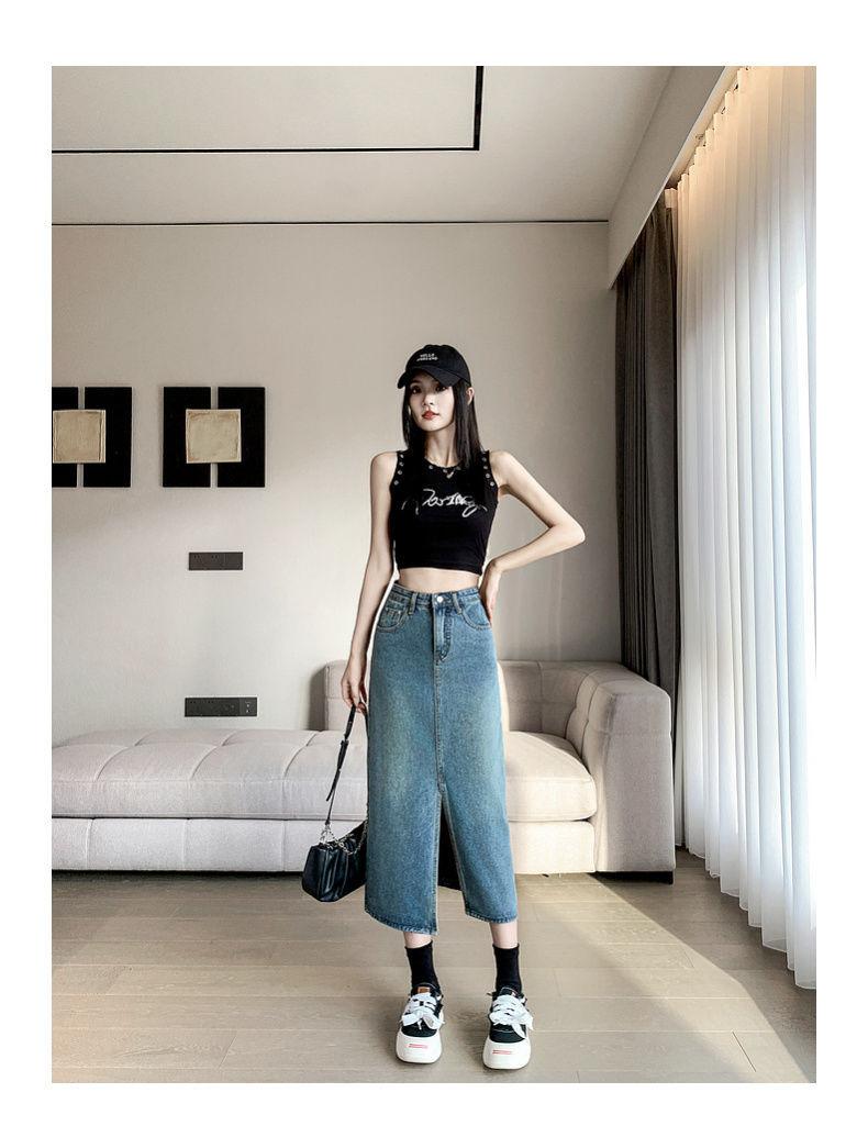 Falda vaquera vintage con abertura para mujer, estilo nuevo que combina con todo, verano 2024, cintura alta, adelgazante, línea A, falda de longitud media, fina