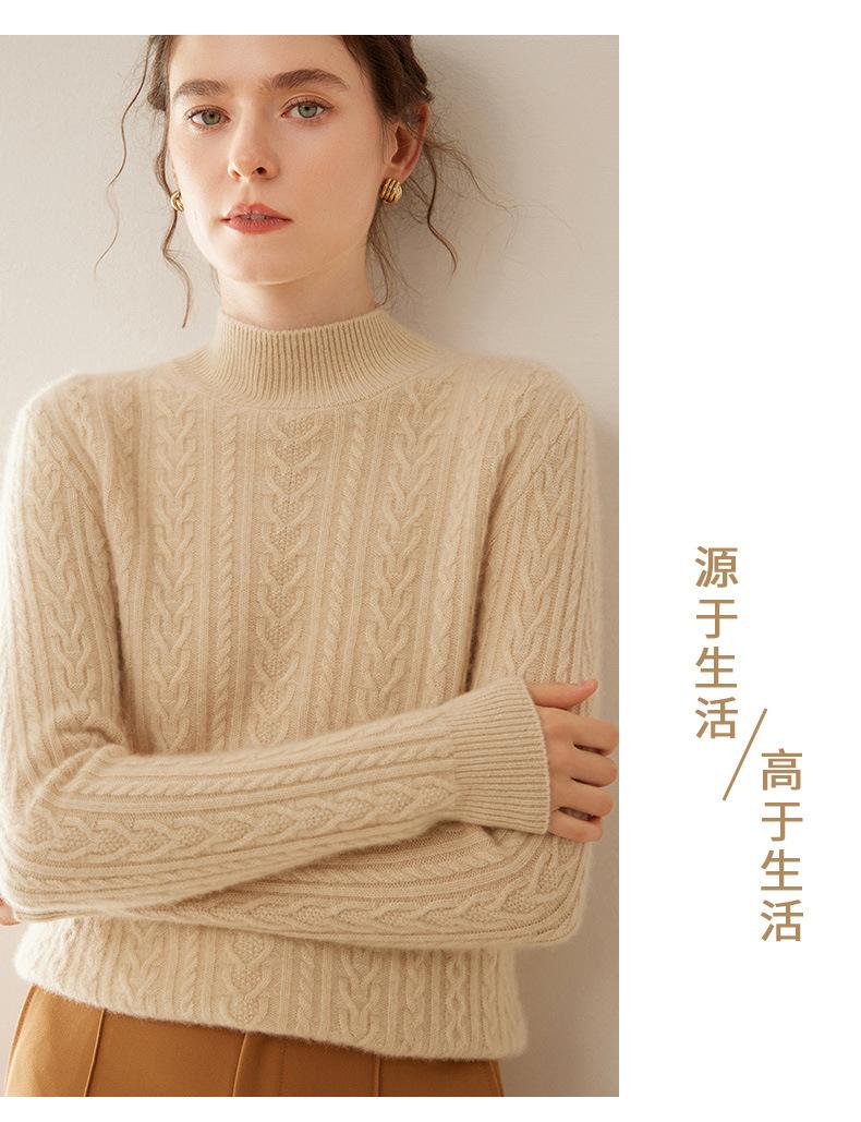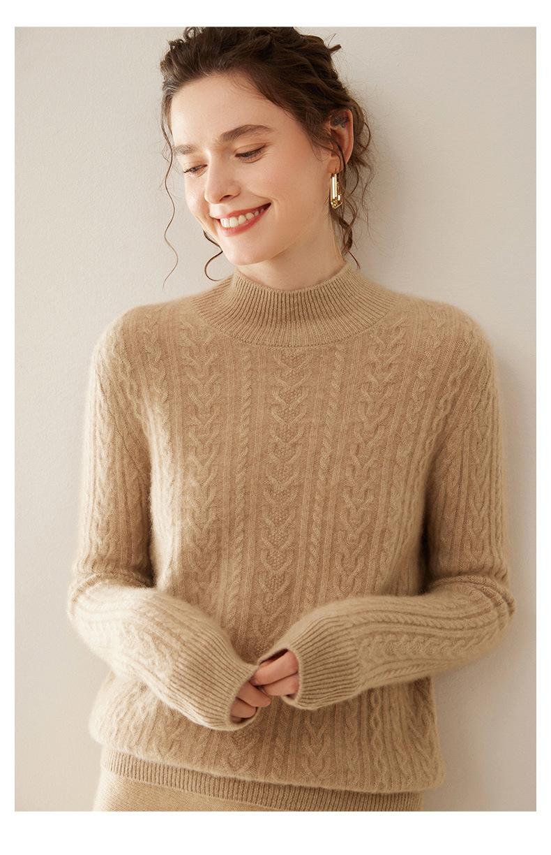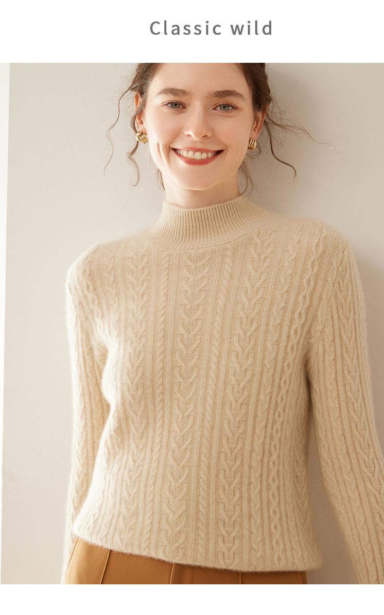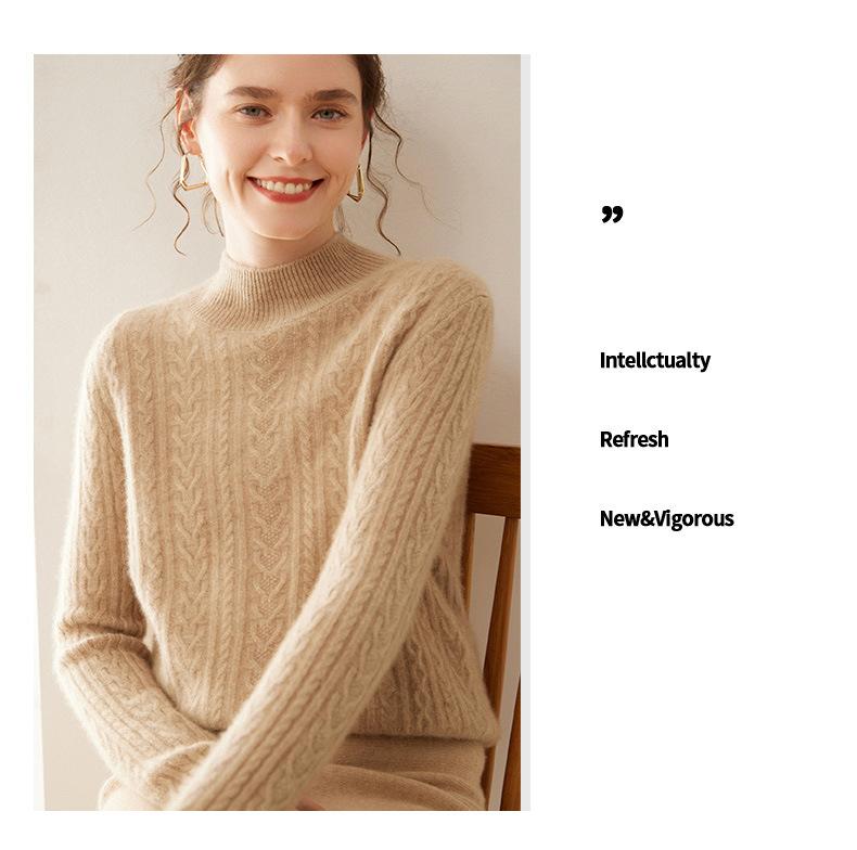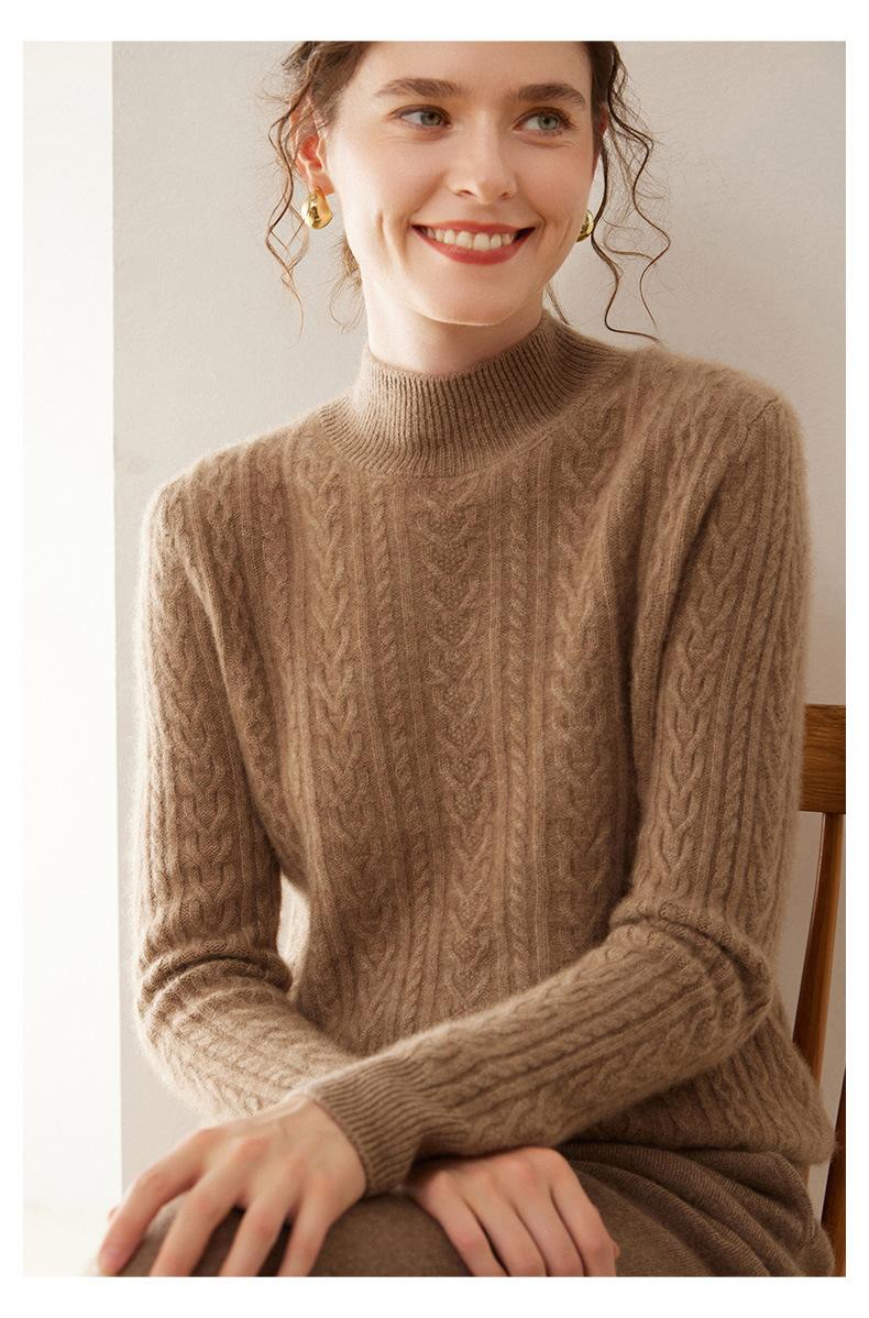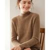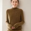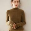 Suéter de cachemira de montaña para mujer, jersey de punto de color liso con cuello medio alto y grueso, hombros descubiertos, cuerpo entero, retorcido y combinable.