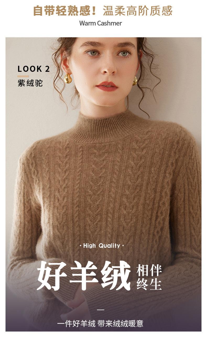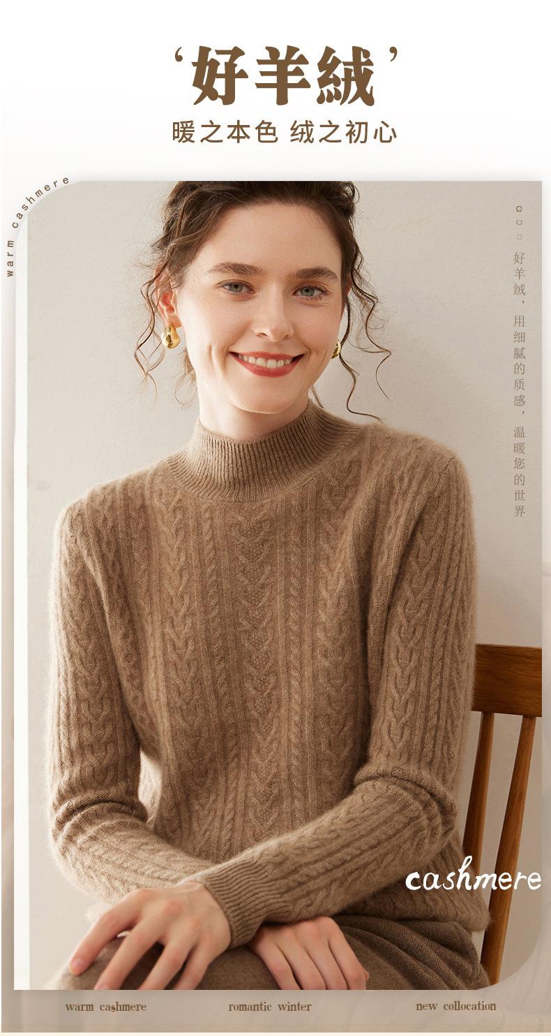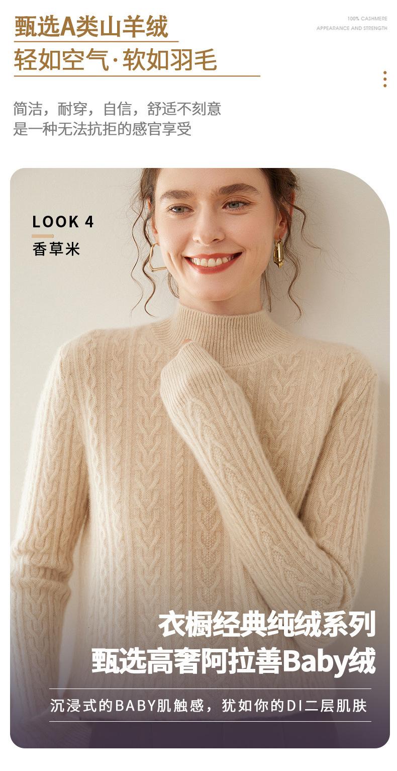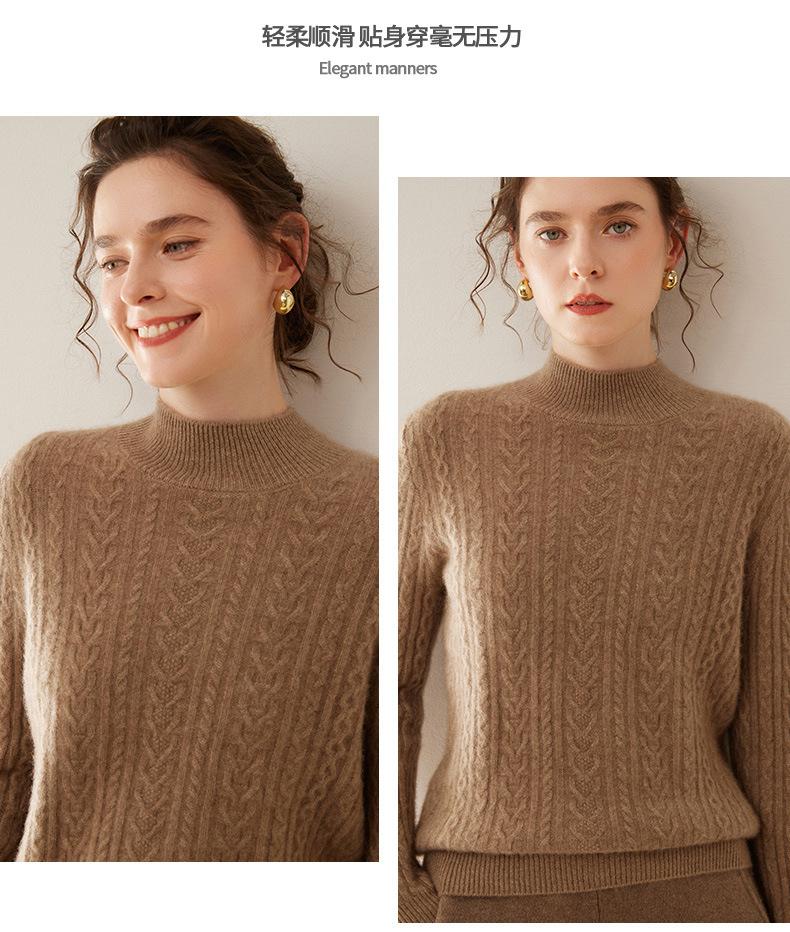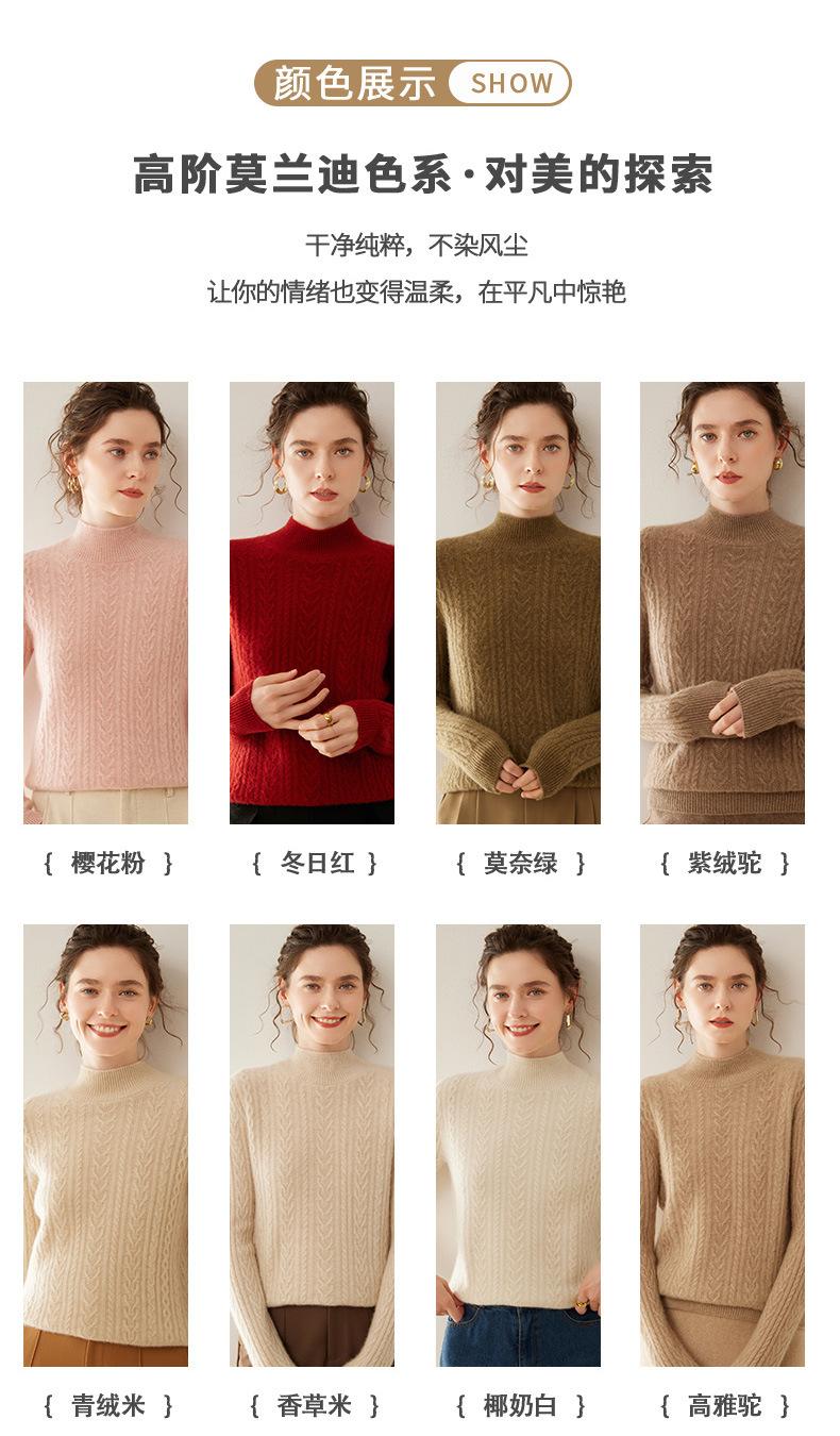 Suéter de cachemira de montaña para mujer, jersey de punto de color liso con cuello medio alto y grueso, hombros descubiertos, cuerpo entero, retorcido y combinable.