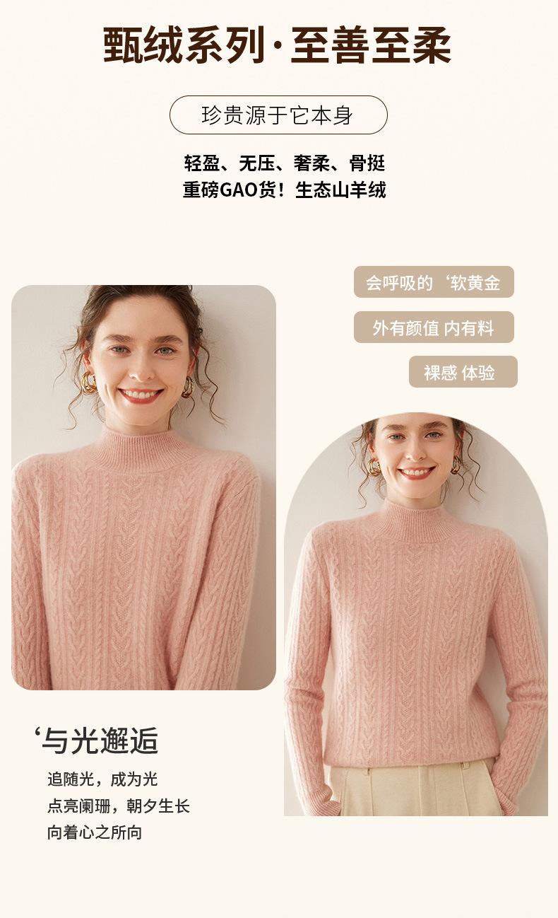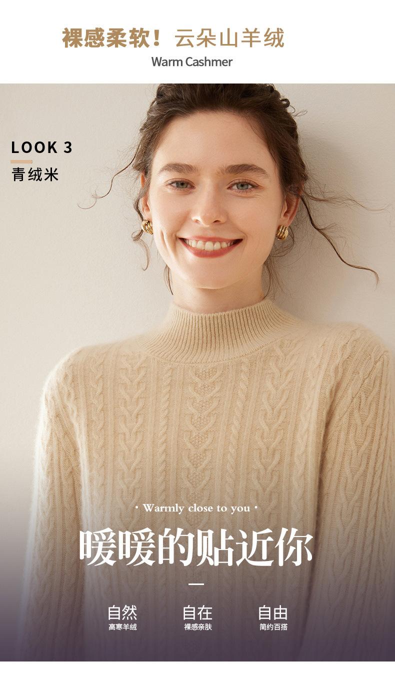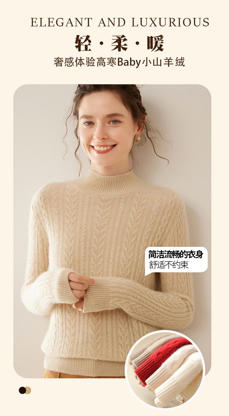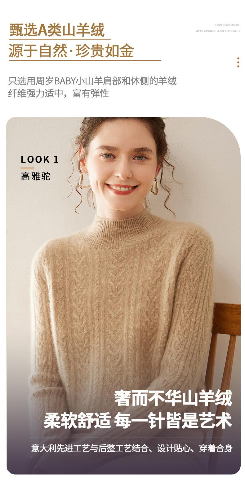 Suéter de cachemira de montaña para mujer, jersey de punto de color liso con cuello medio alto y grueso, hombros descubiertos, cuerpo entero, retorcido y combinable.